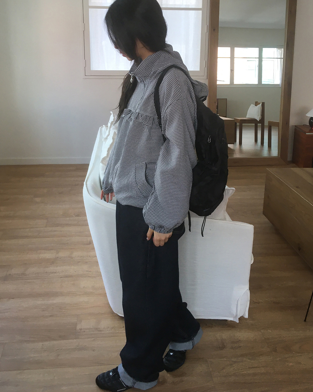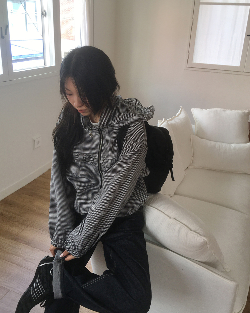 フリルチェックパーカー
