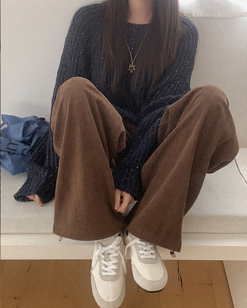 コーデュロイ ワイドパンツ (ウエストゴム)