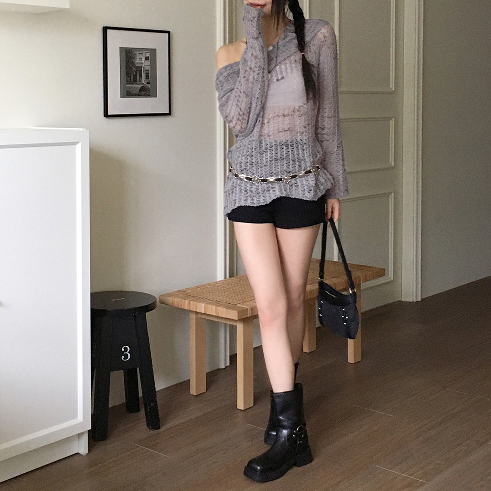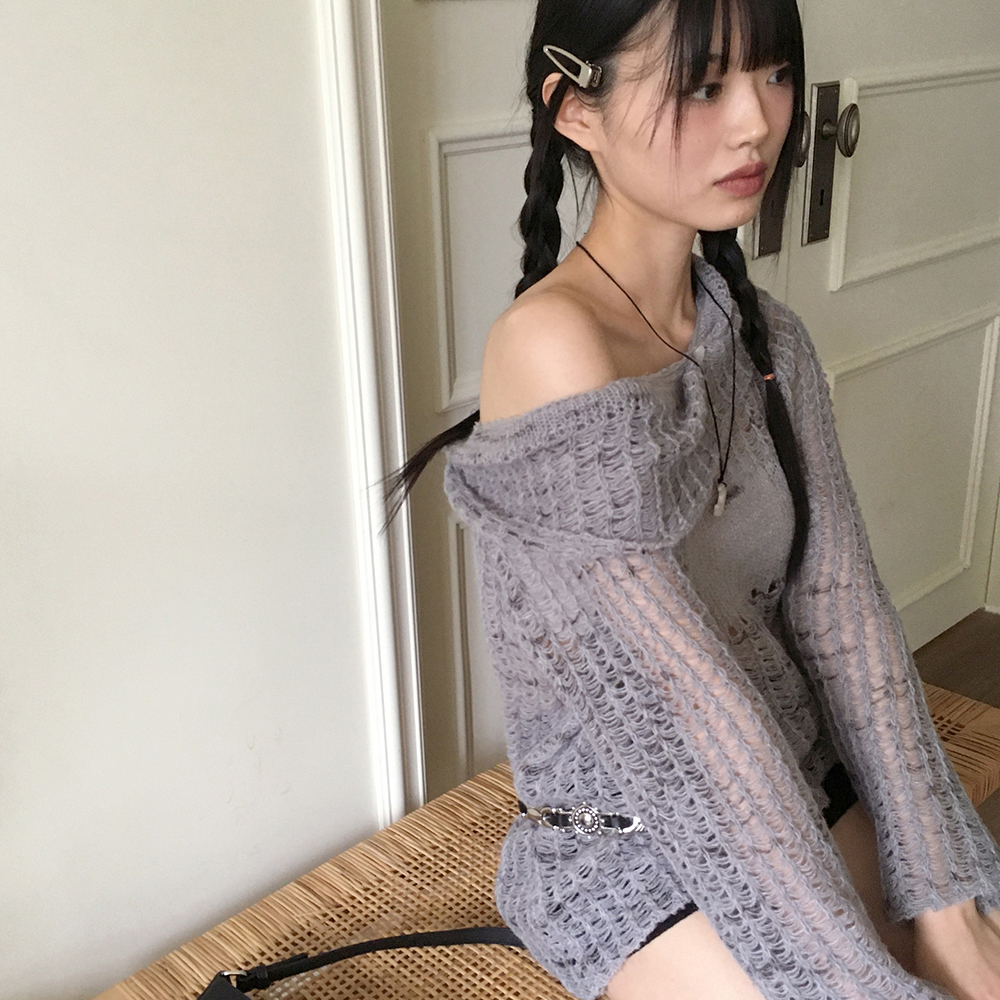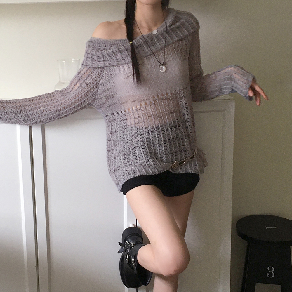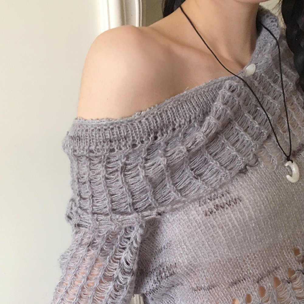 捺染ネットワンショルダー長袖ニット