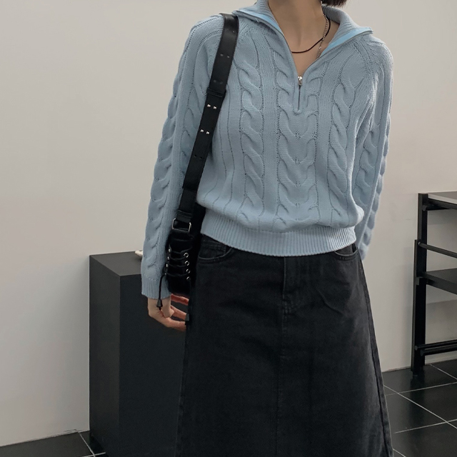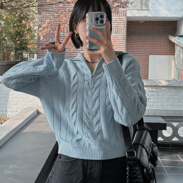 (WOMAN) ケーブルクロップドハーフジップニット