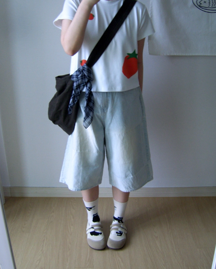 パッチライトデニムハーフパンツ