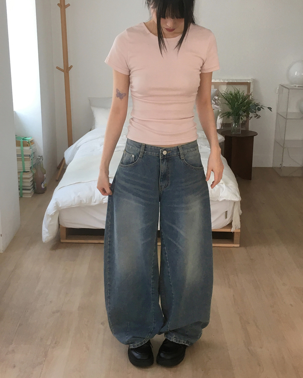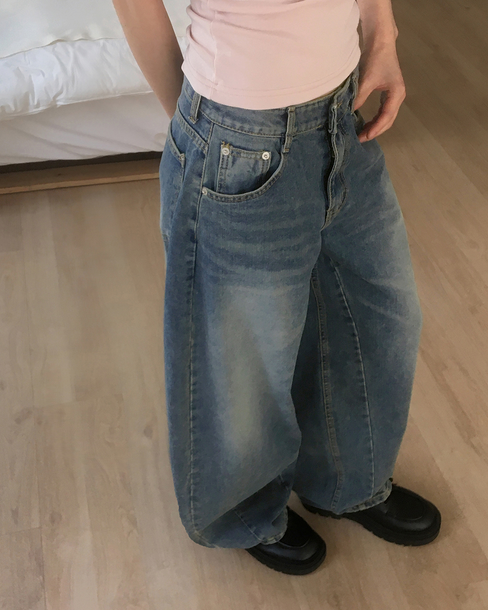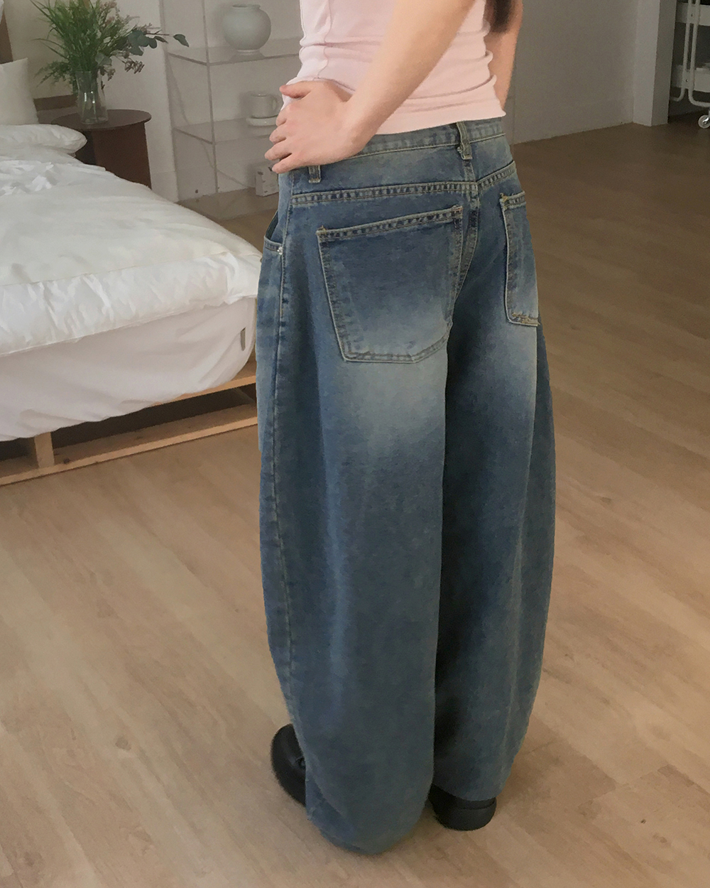 ウォッシュワイドバルーンデニムパンツ