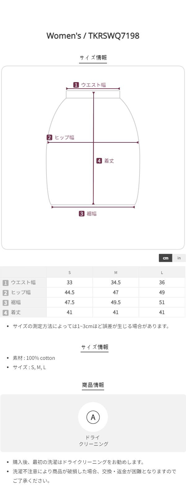 (色移り防止)ローデニムスカート-3size