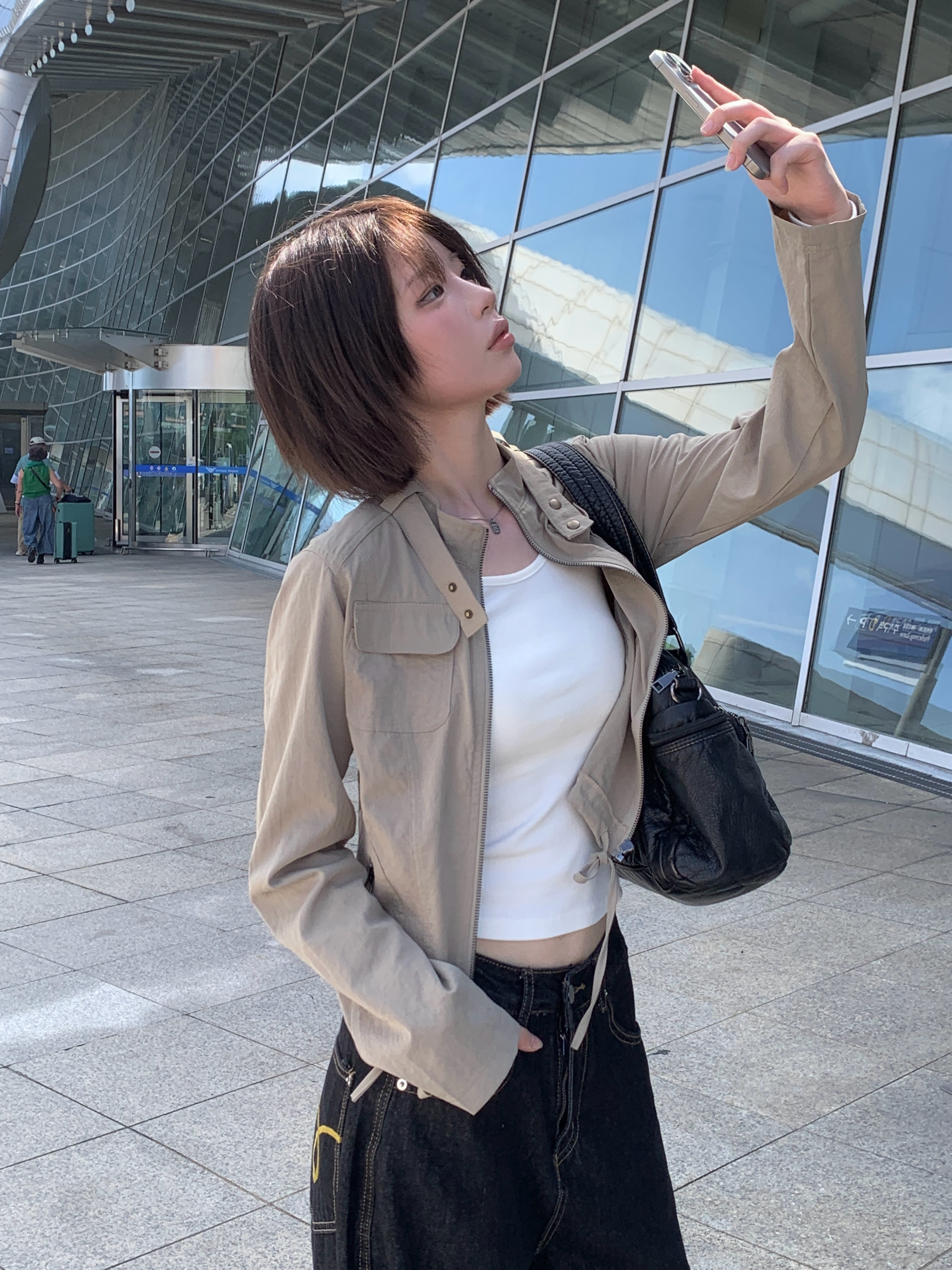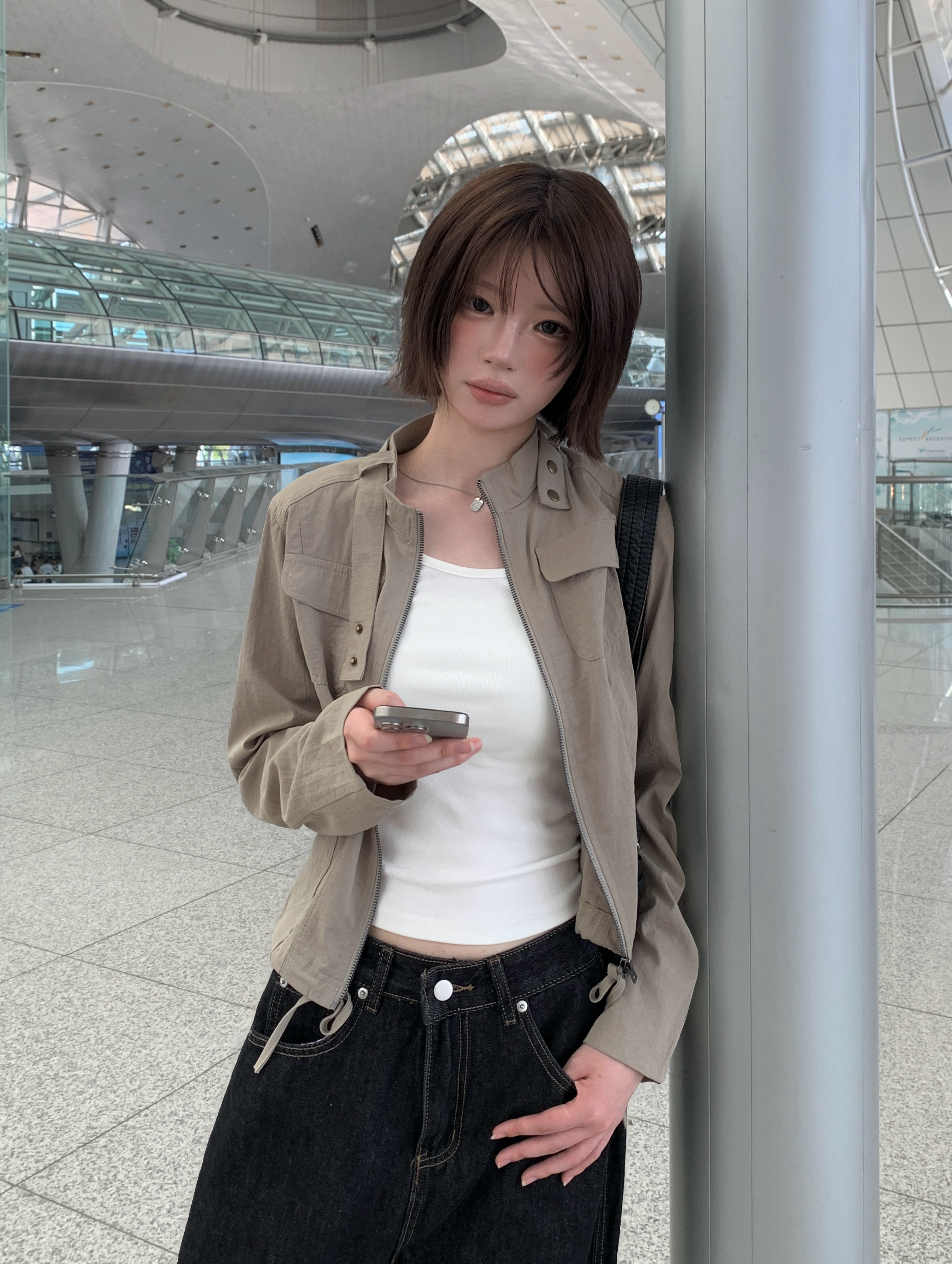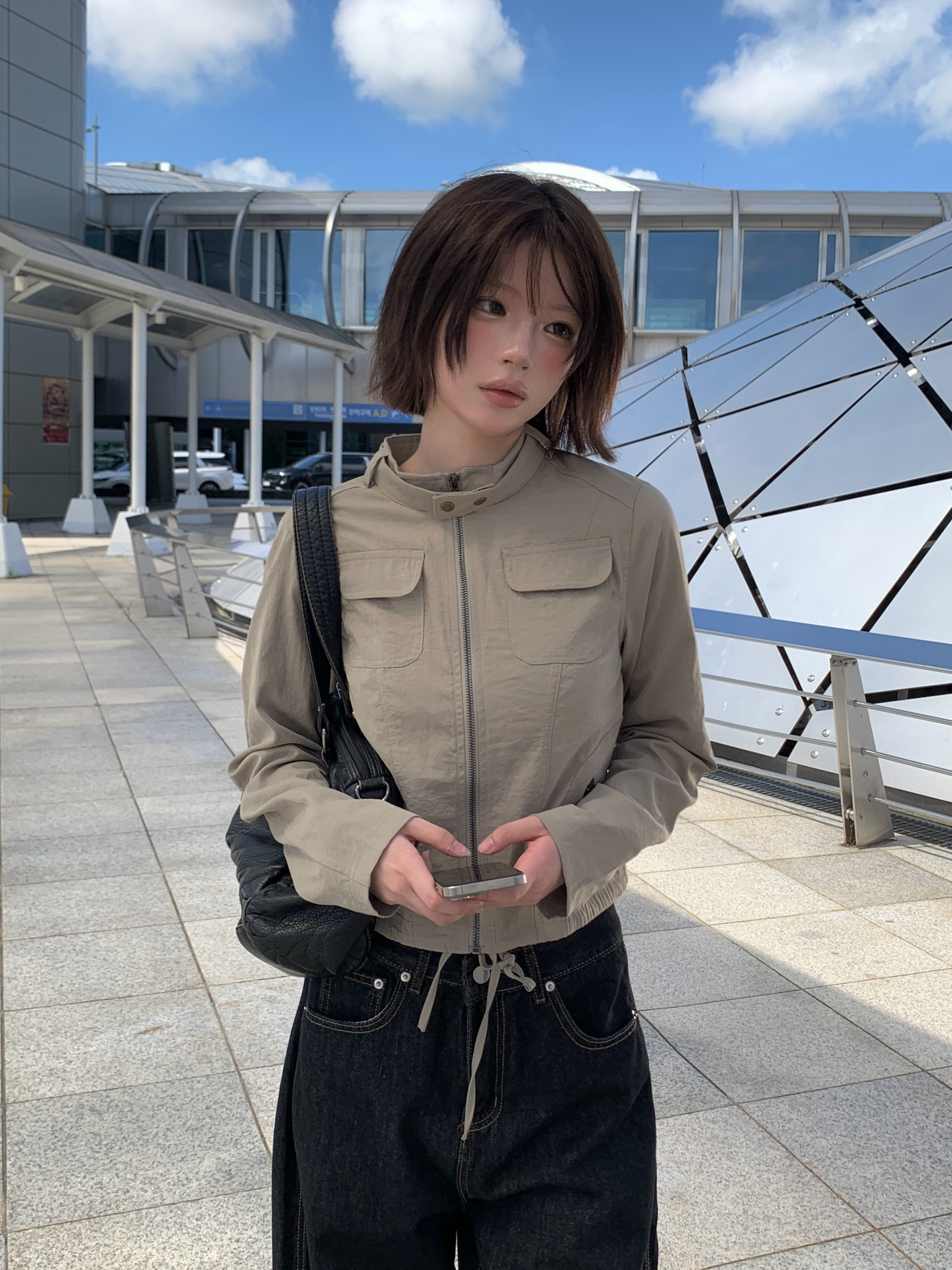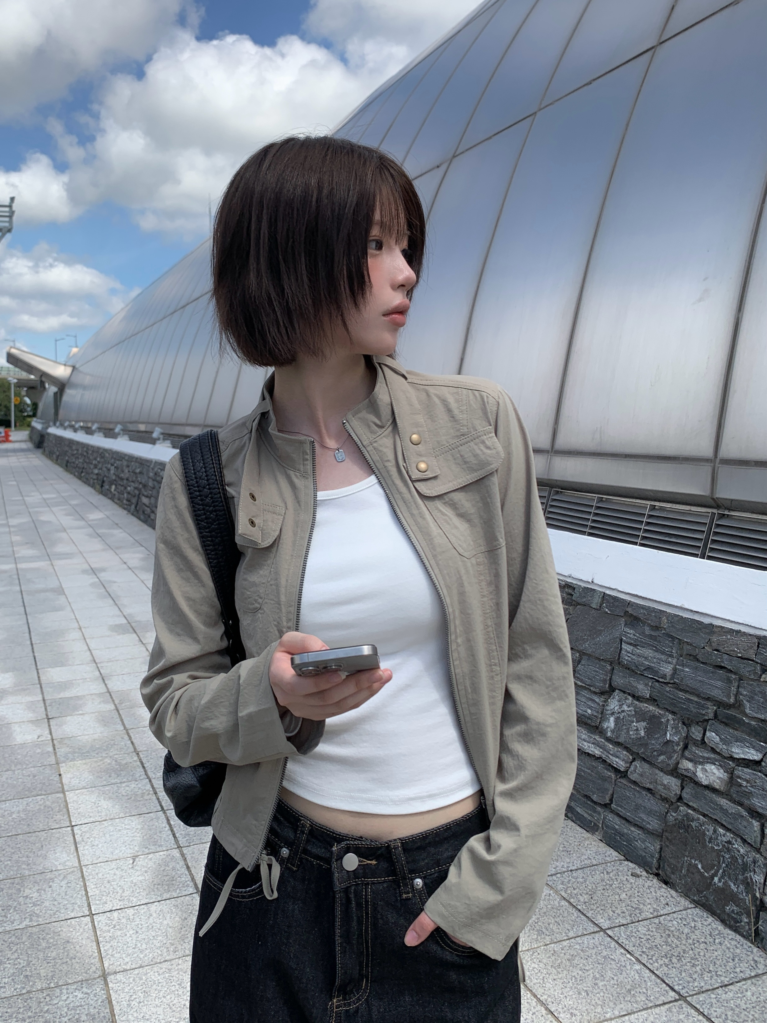 ポケットセミクロップドスリムミリタリージャケット