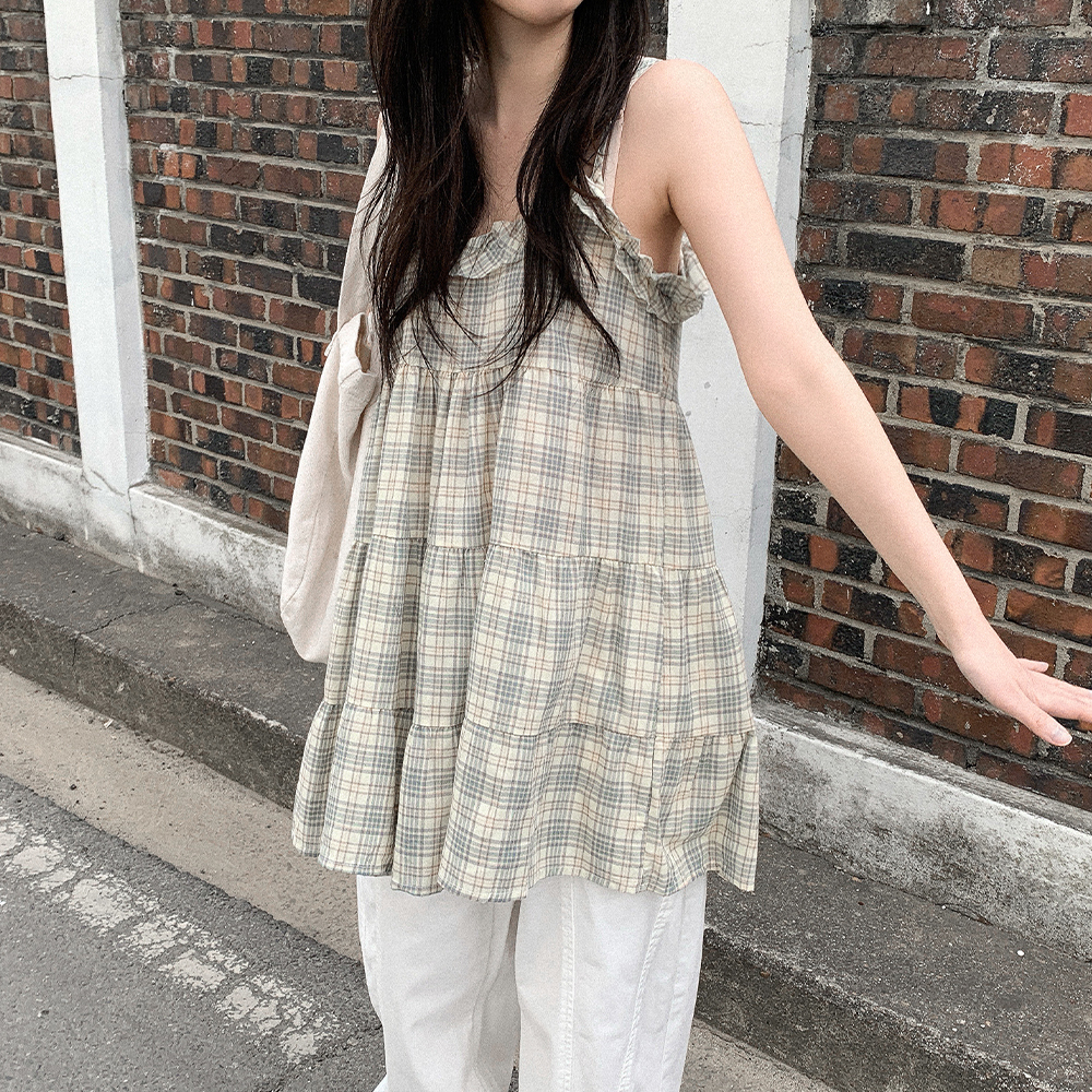 チェックレイヤードミニワンピース
