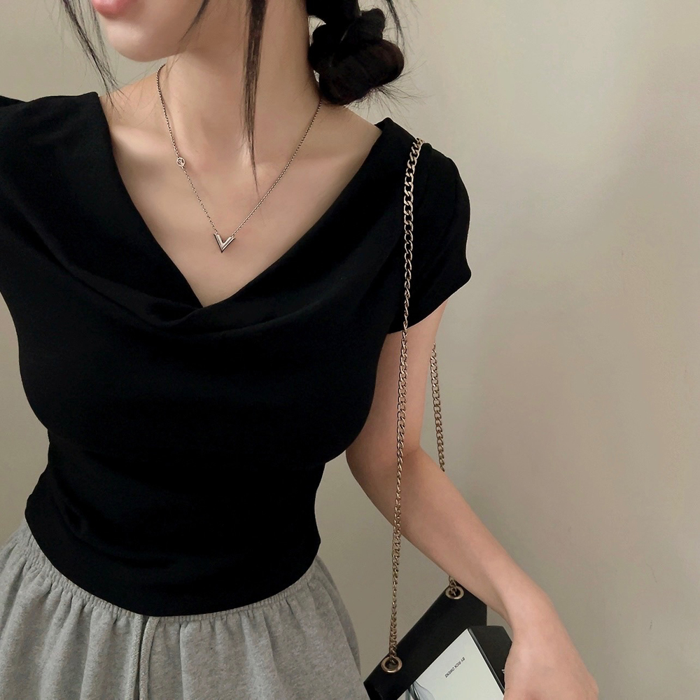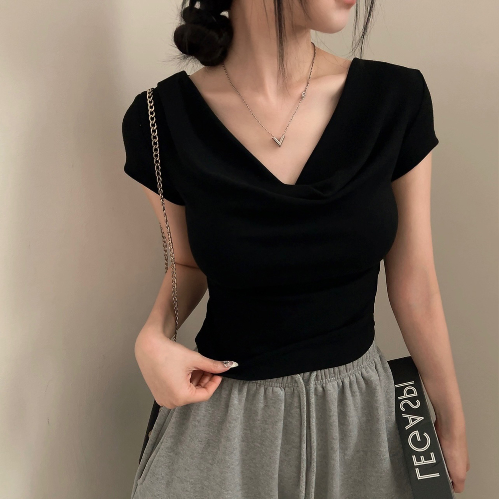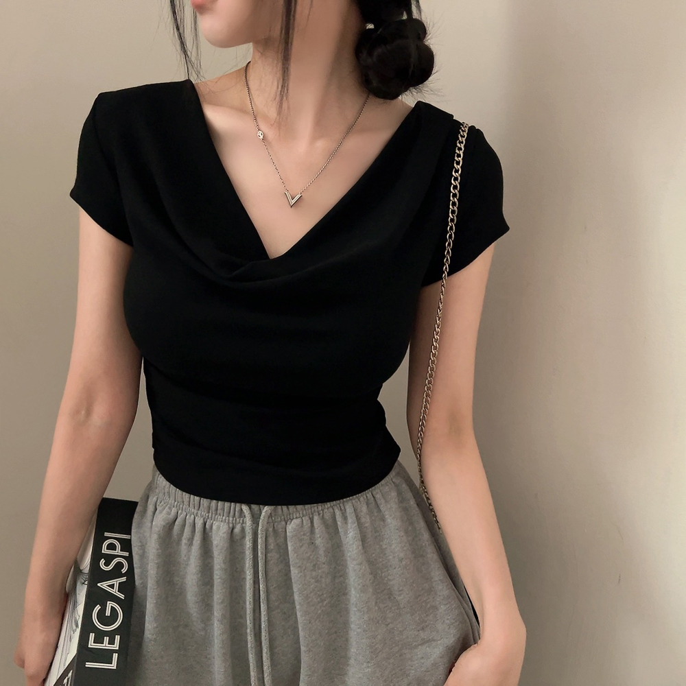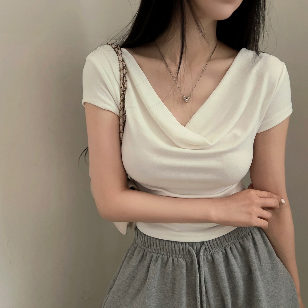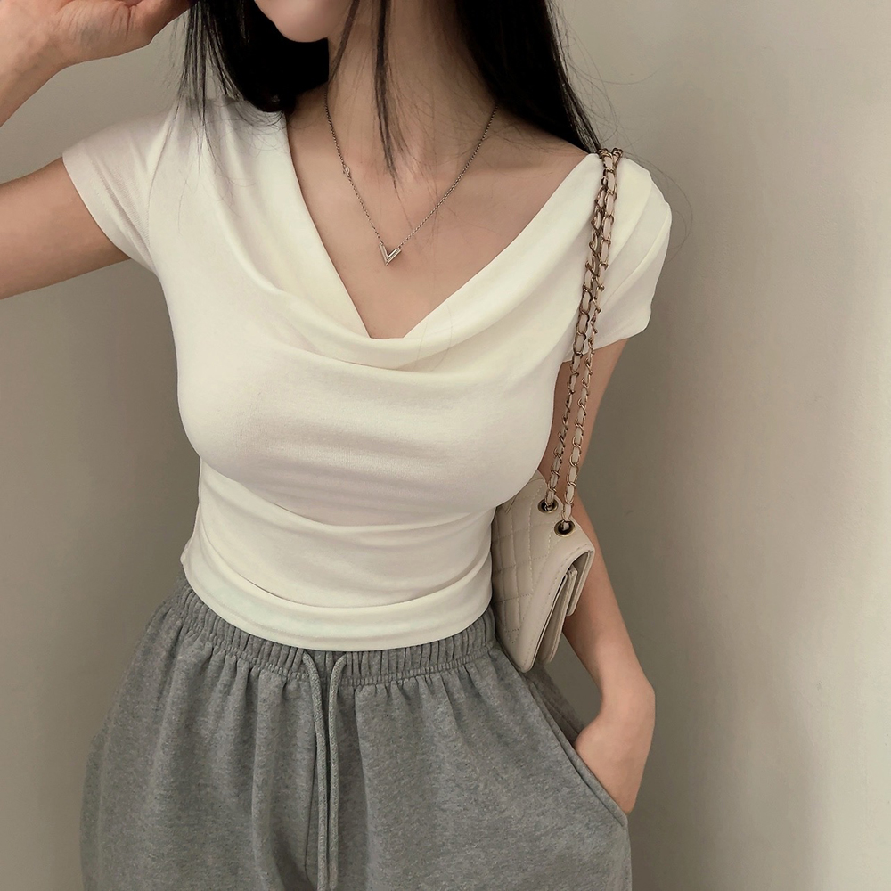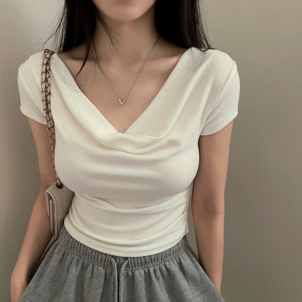 ドレープ半袖クロップドTシャツ