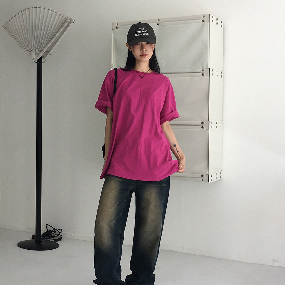 [ユニセックス] デイリー無地オーバーサイズ半袖Tシャツ