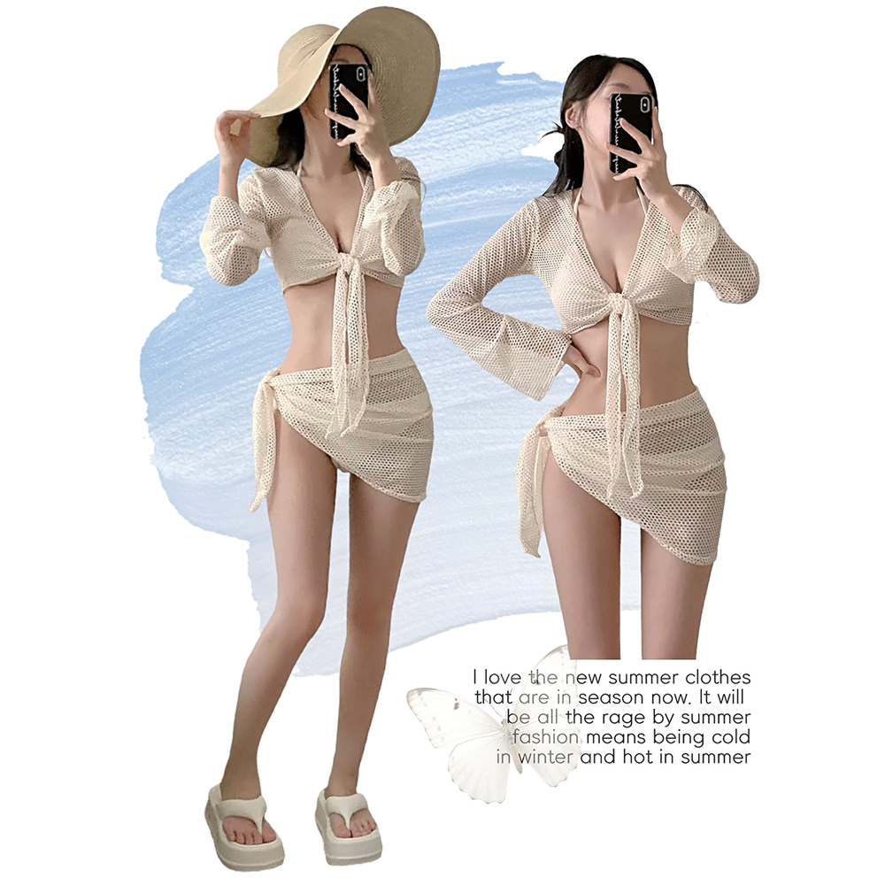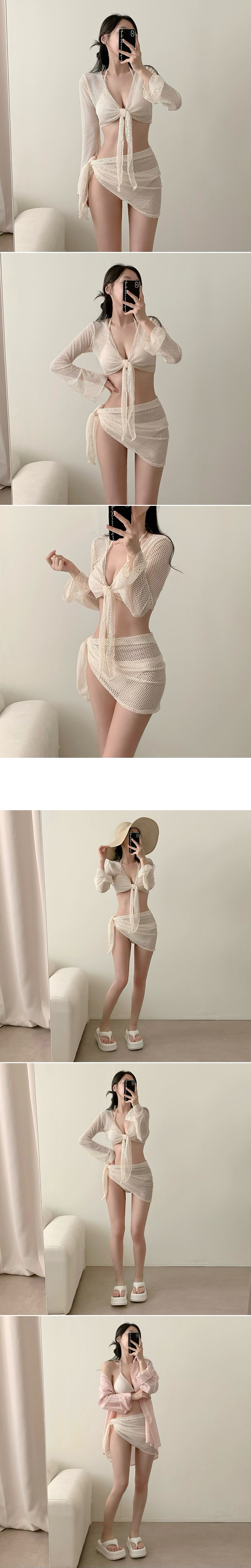 [4点セット] [パッド付き] メッシュビキニ水着ボレロカーディガンセット(1color)