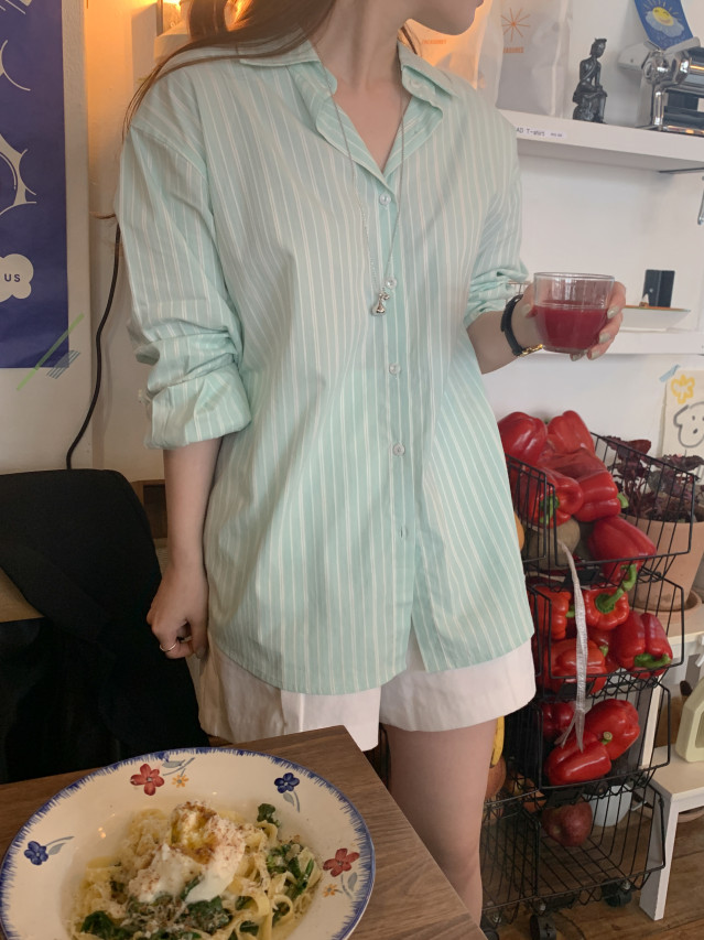 [original] ルーズフィットストライプシャツシャツ(2c)