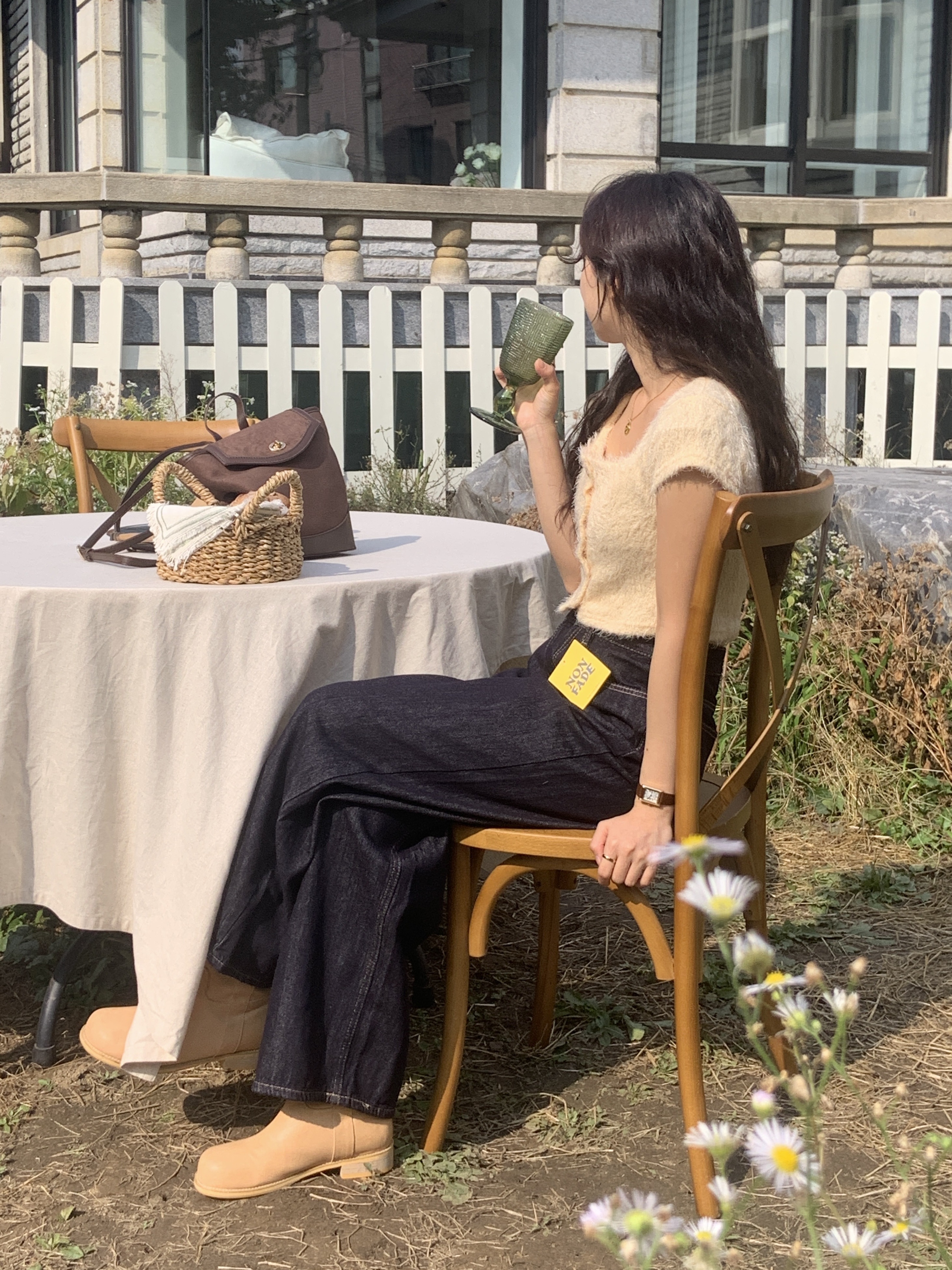 (裏起毛 / 色移り X )ローデニムハイウエストワイドパンツ冬デニムpt