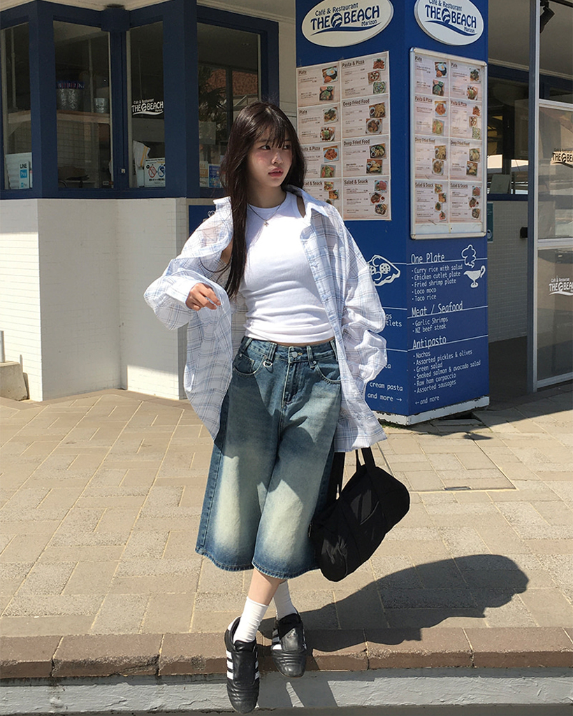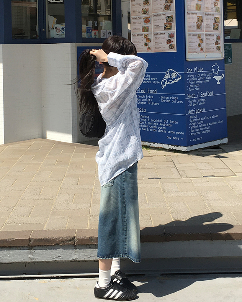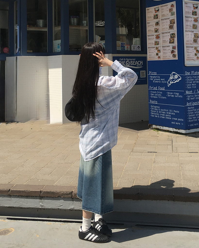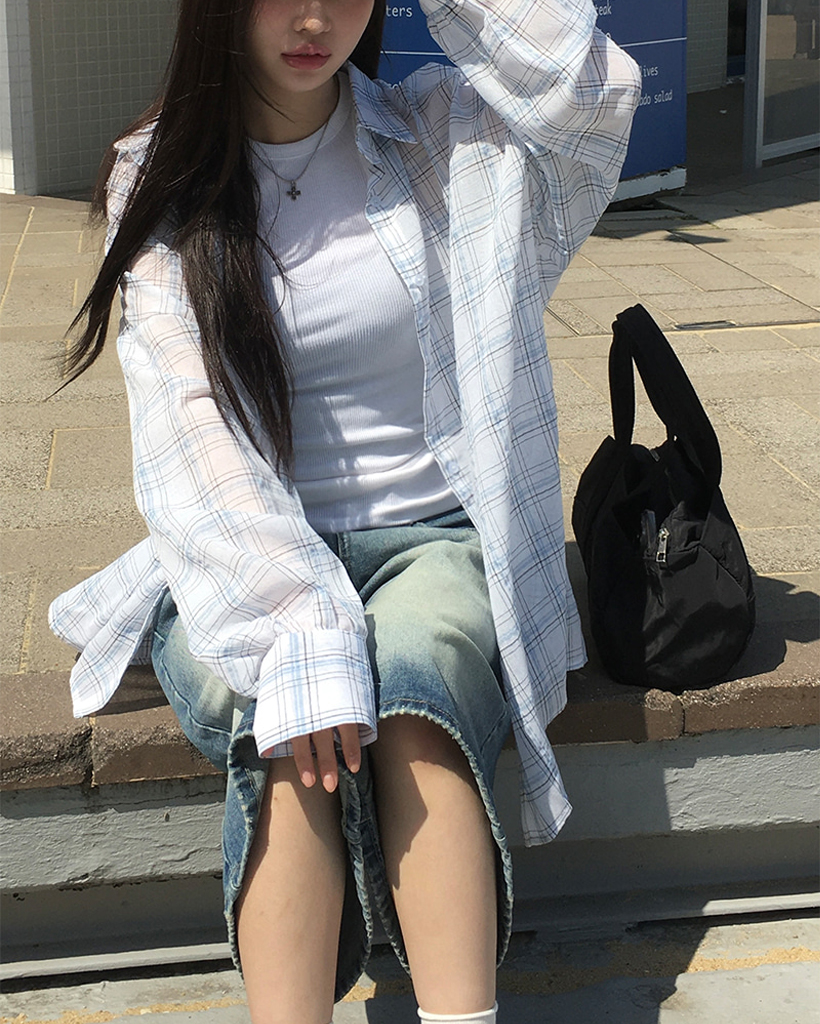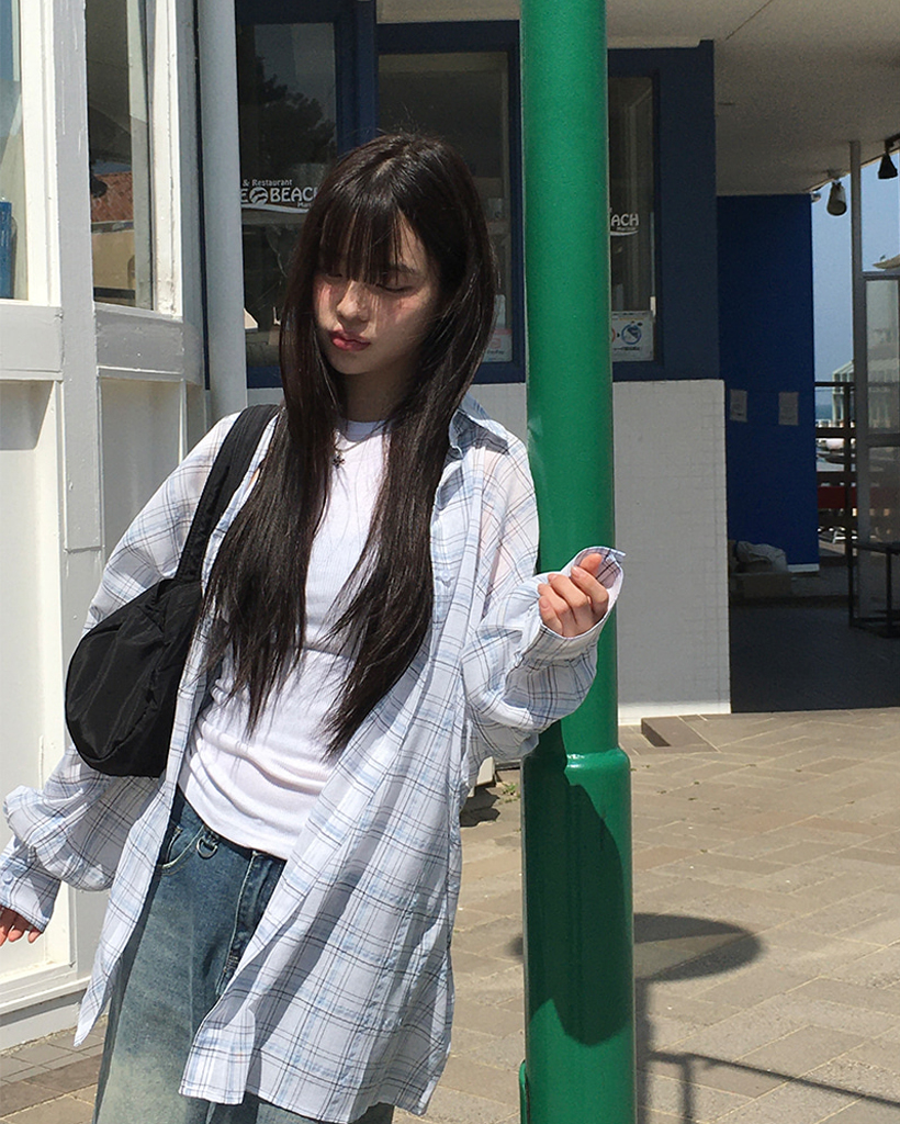 [サマーシャツ] リネン混チェック柄オーバーフィットシアーシャツ (2color)