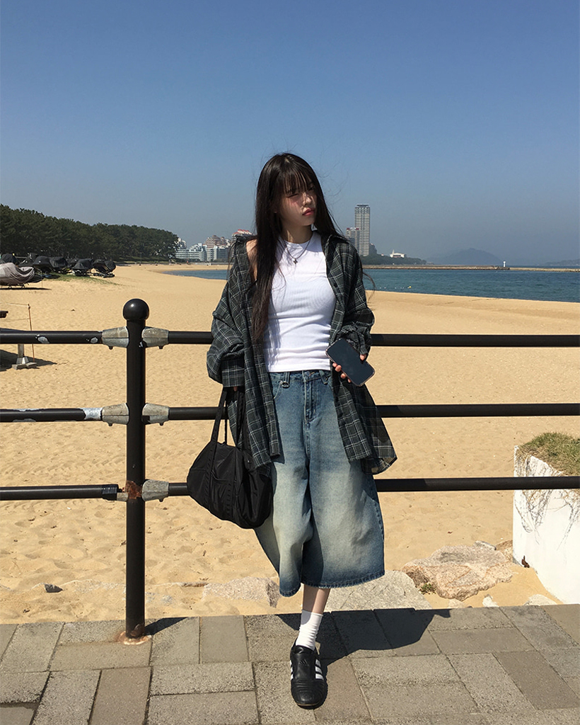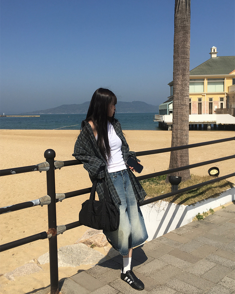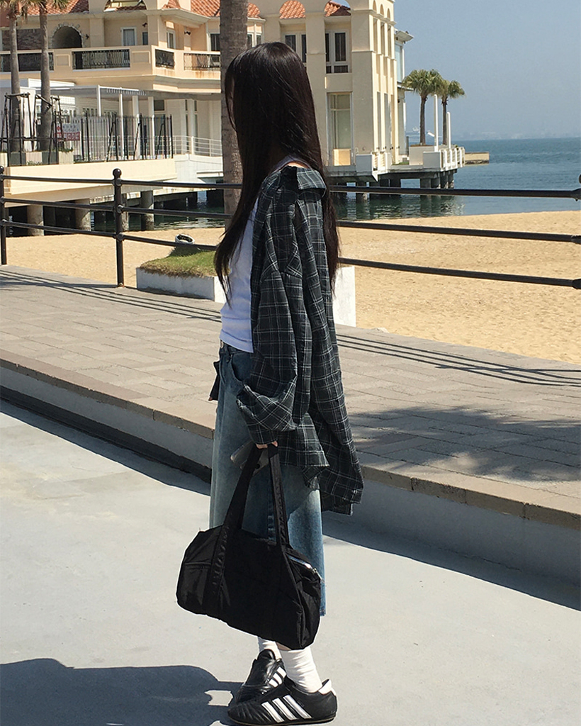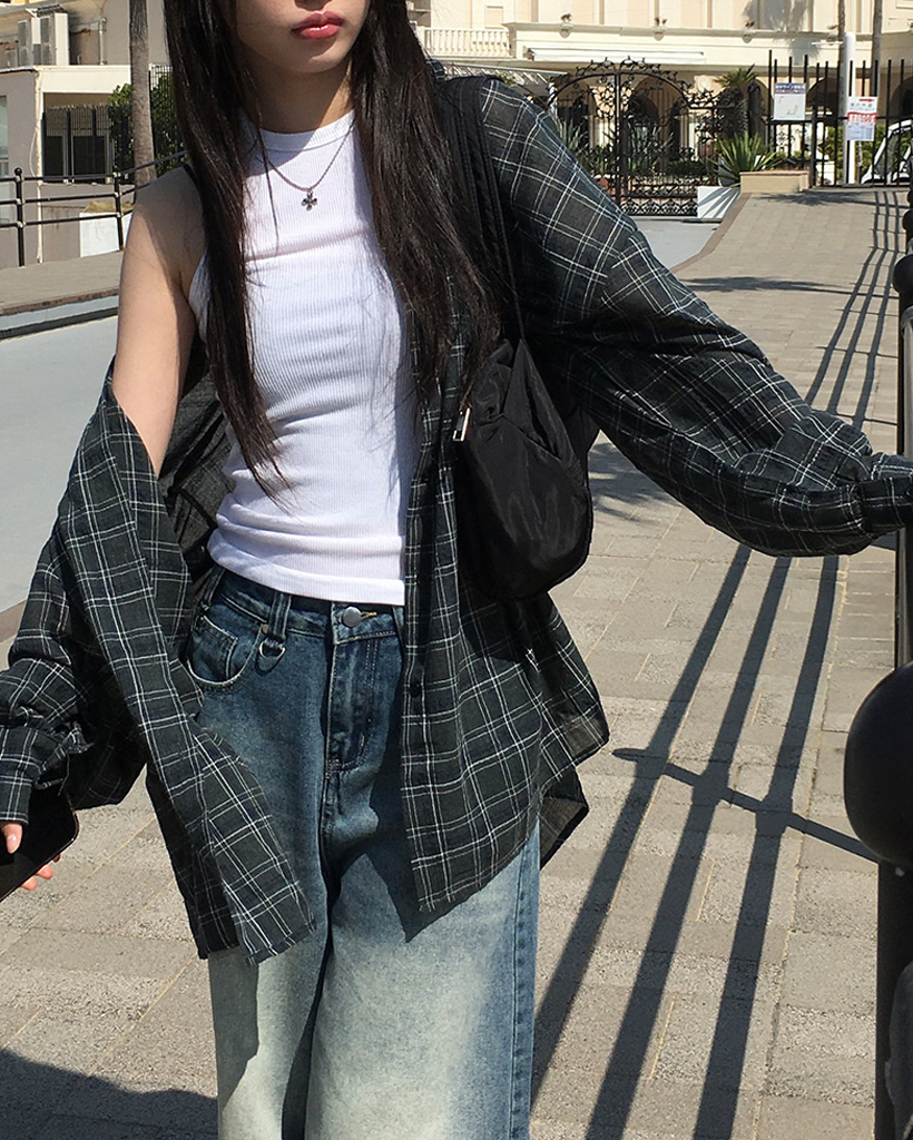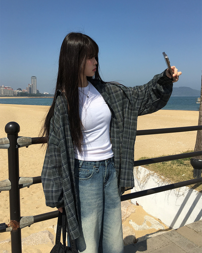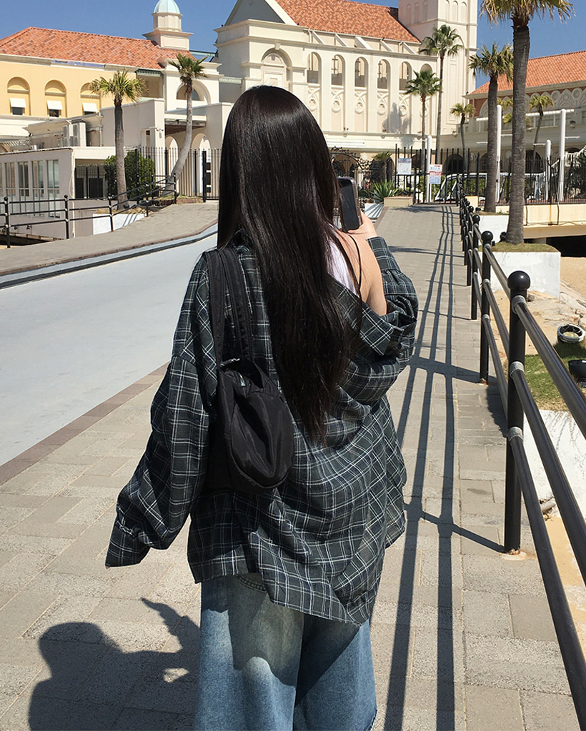 [サマーシャツ] リネン混チェック柄オーバーフィットシアーシャツ (2color)