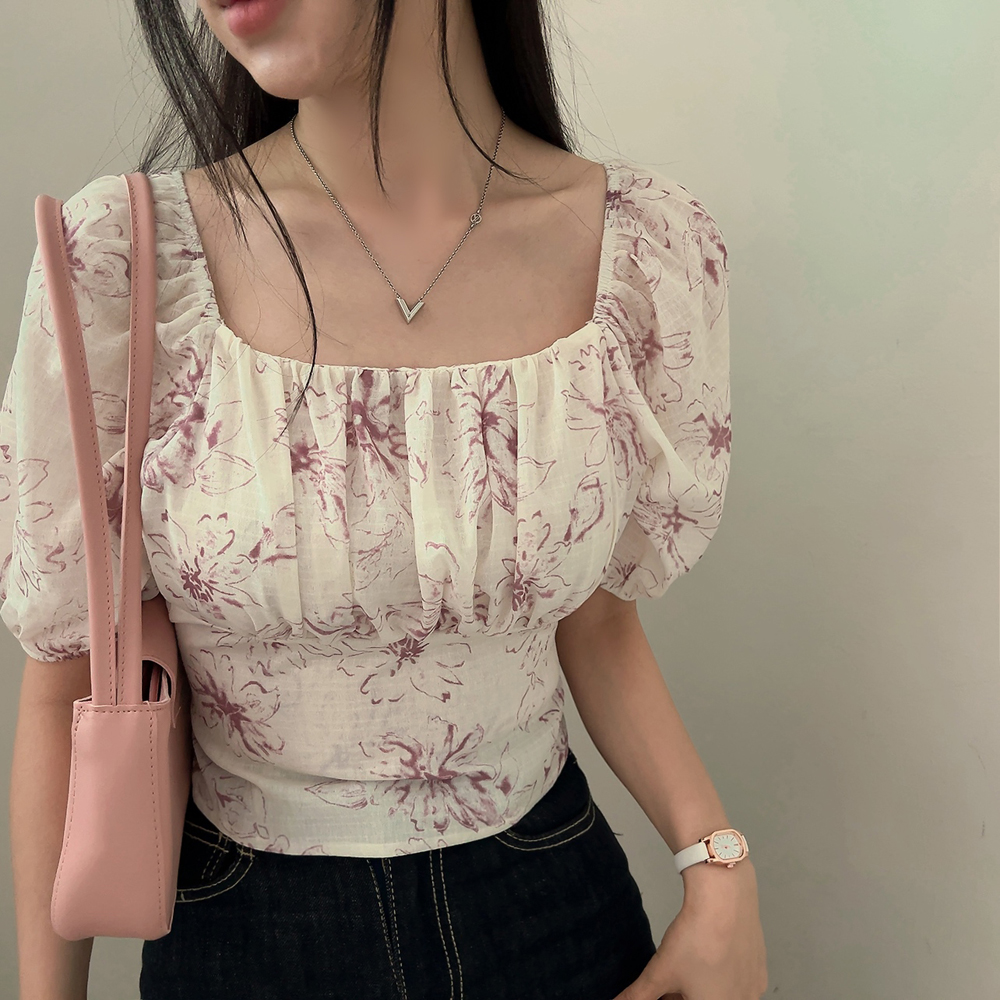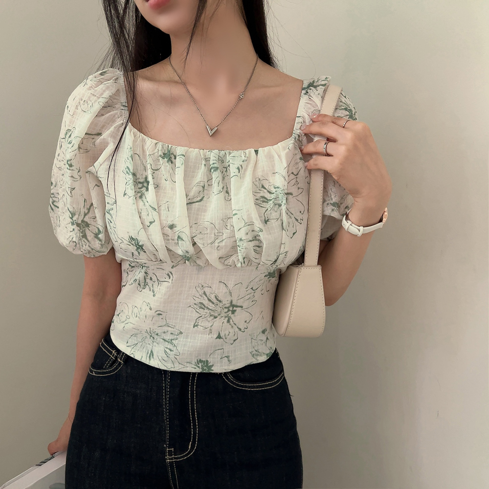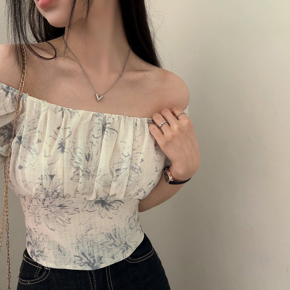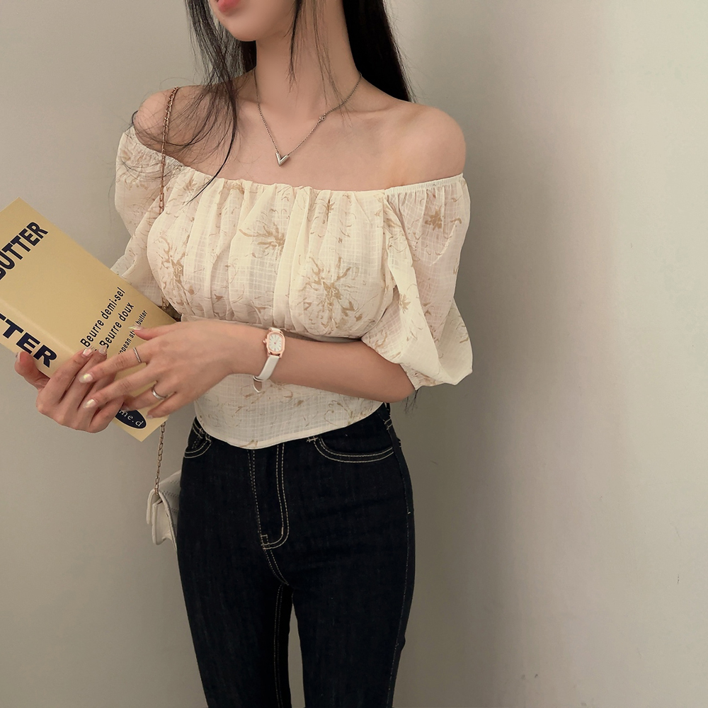 [2WAY]オフショルシフォンバックリボン半袖ブラウス