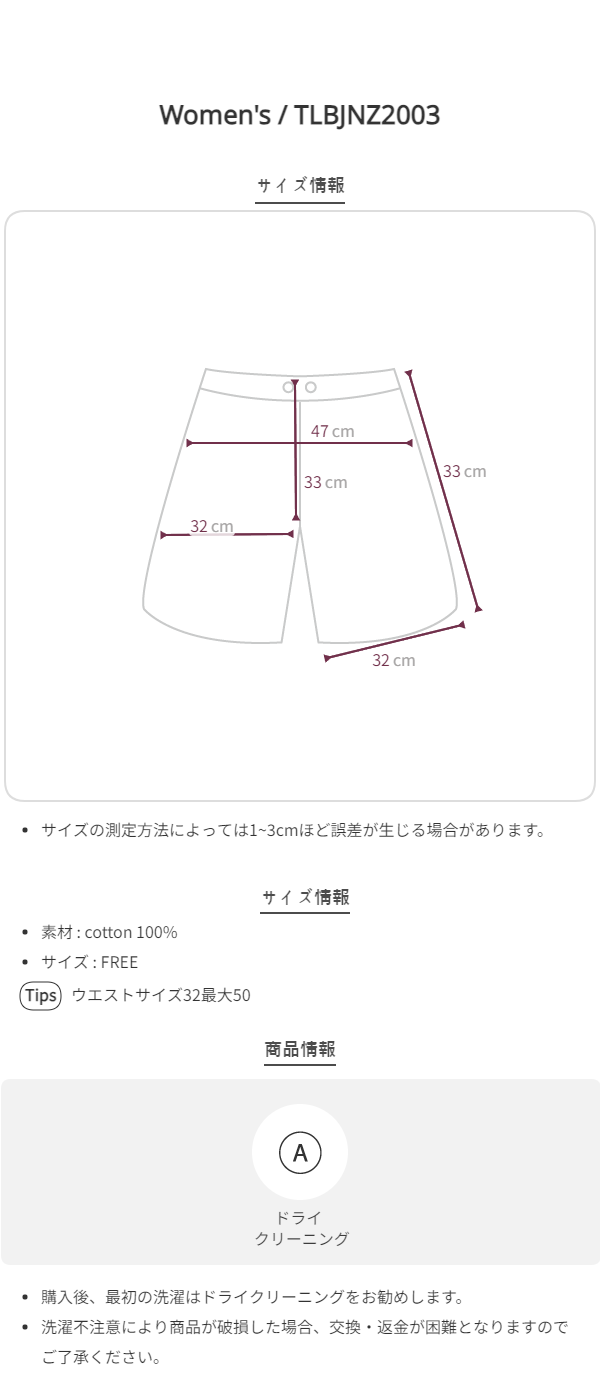 - ニットまたは伸縮性に優れている商品は最大±10cm程度のサイズ誤差がある可能性があります。