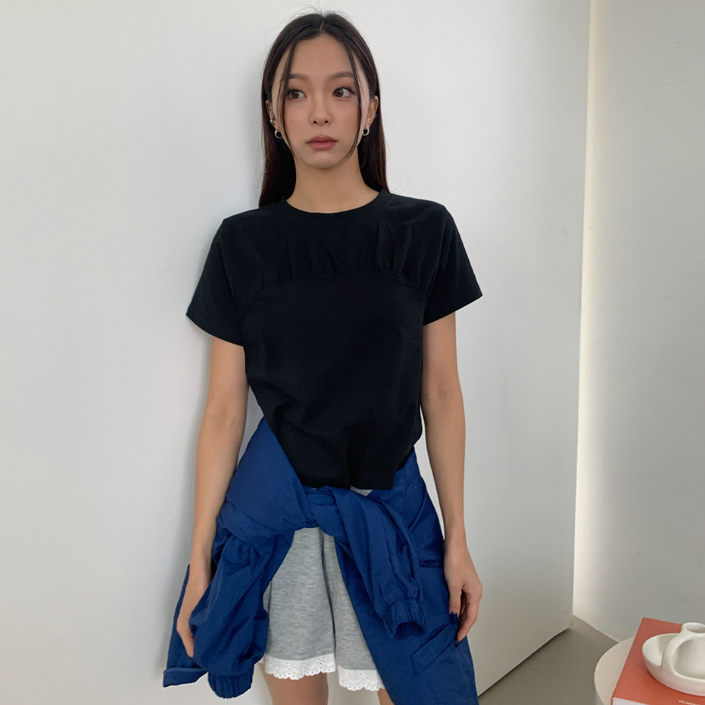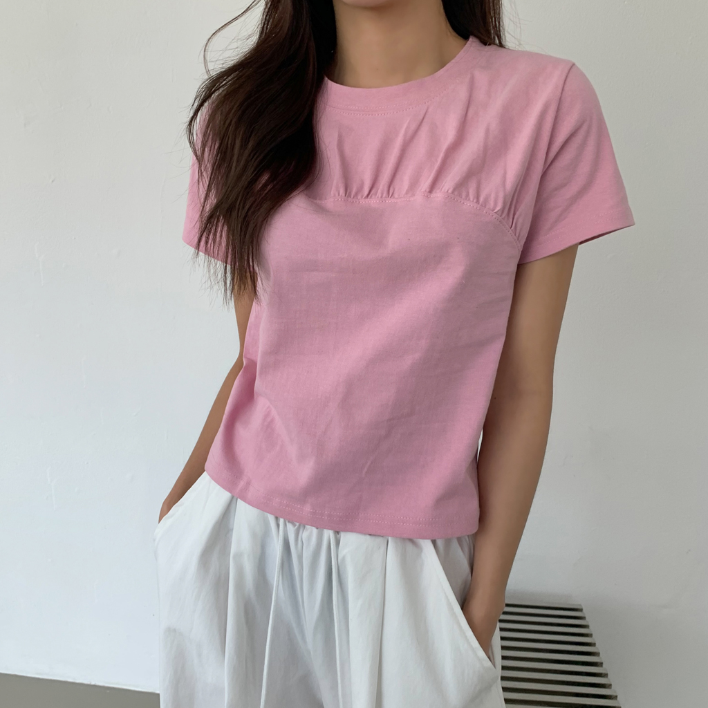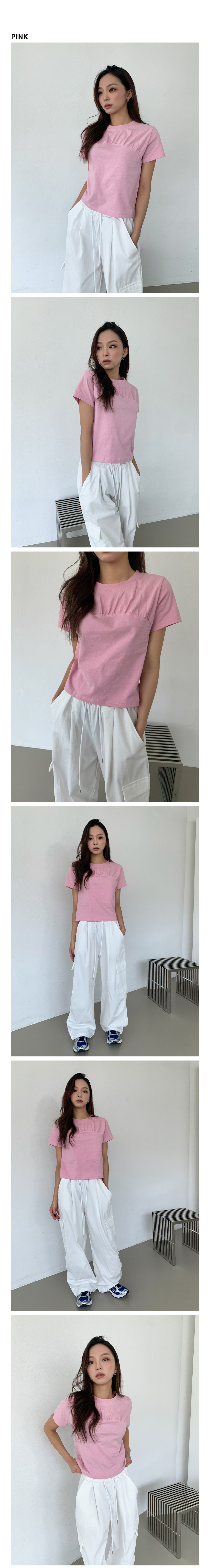 ネックラインシャーリングトップ半袖Tシャツ-3color
