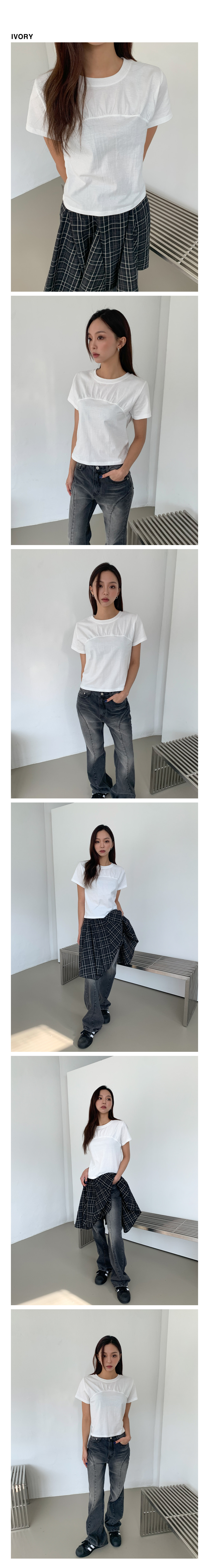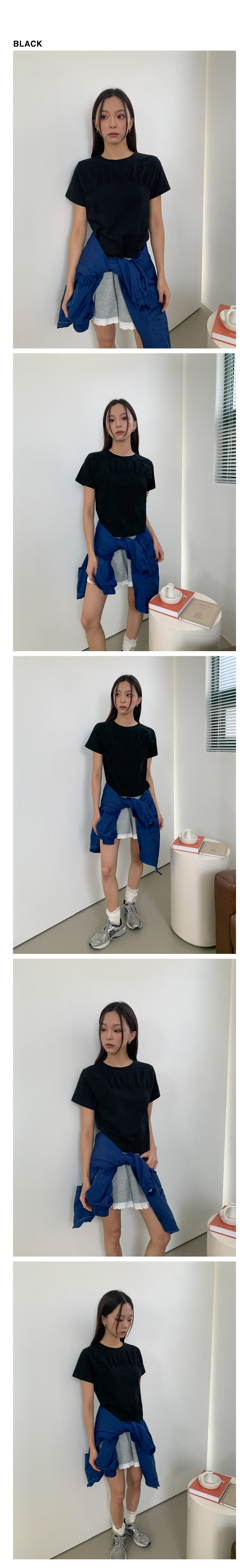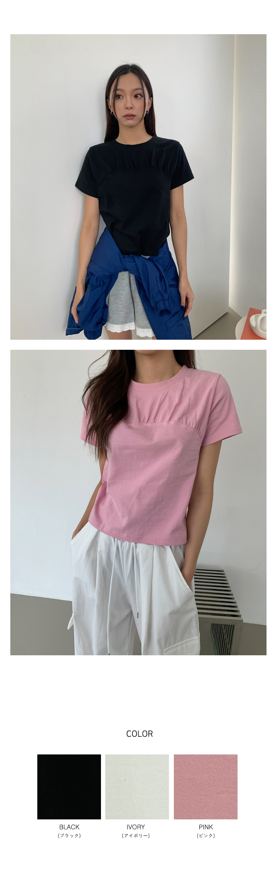 ネックラインシャーリングトップ半袖Tシャツ-3color