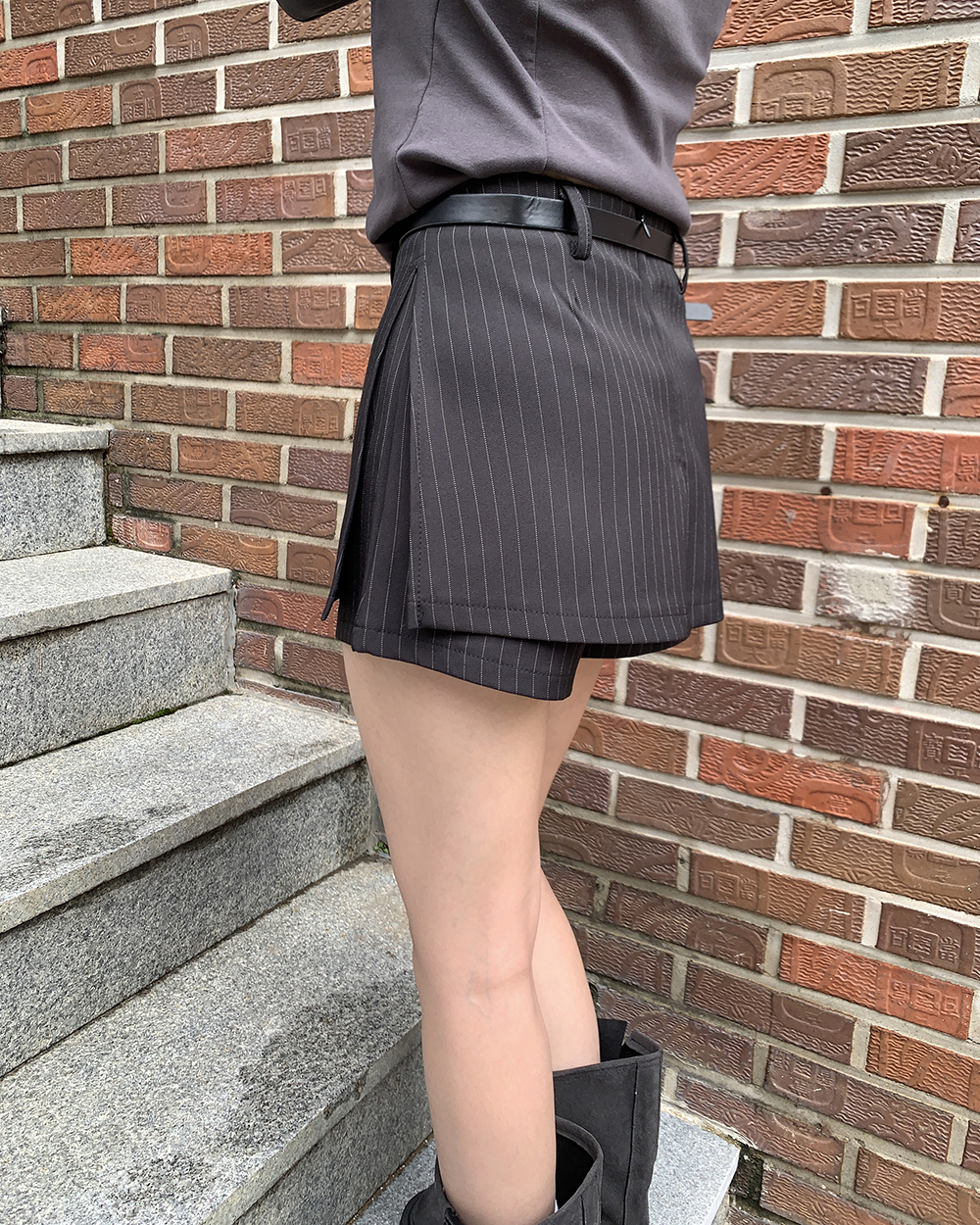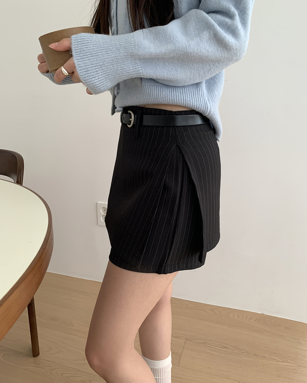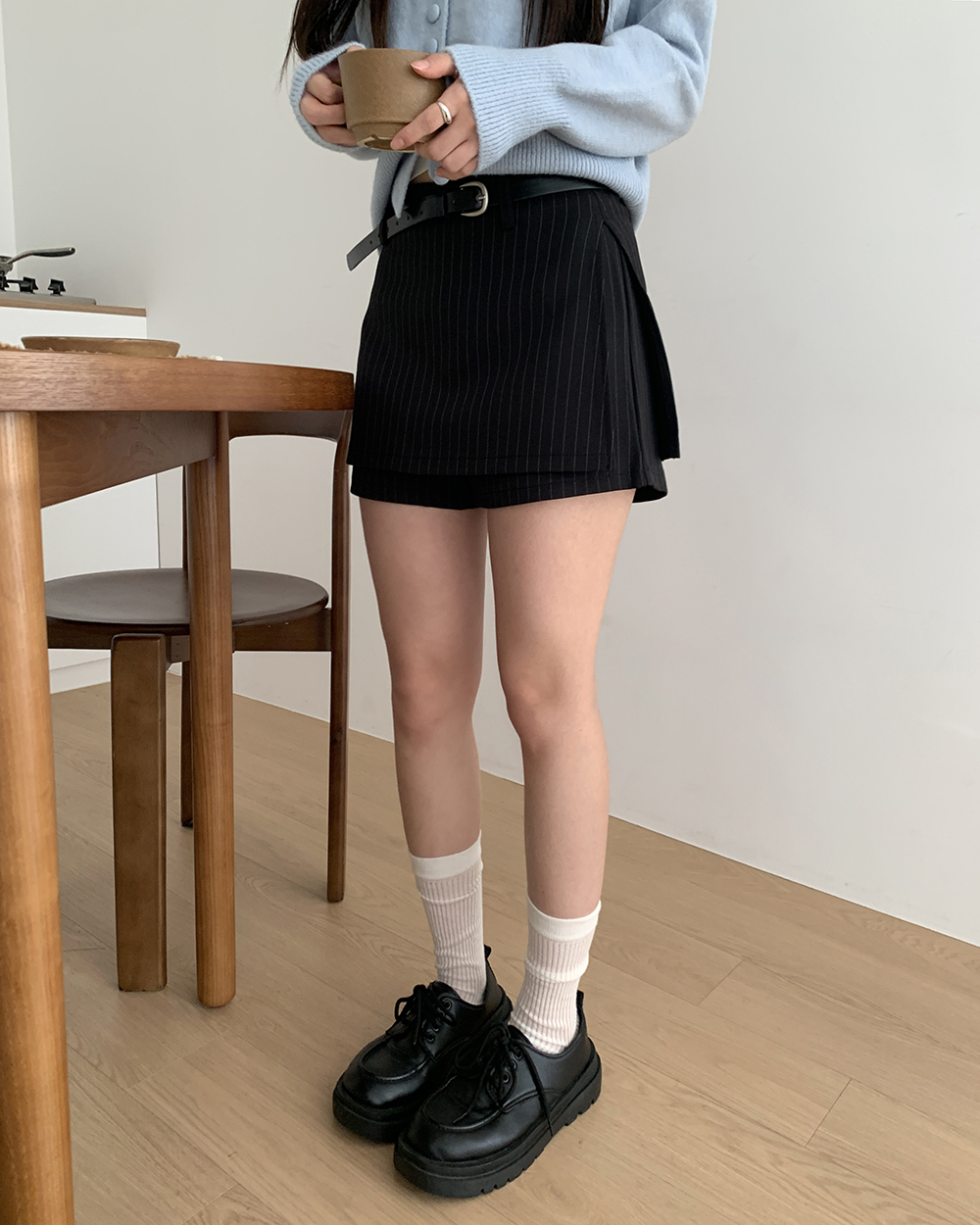 [ベルトSET]ストライプ柄ミニスカパン