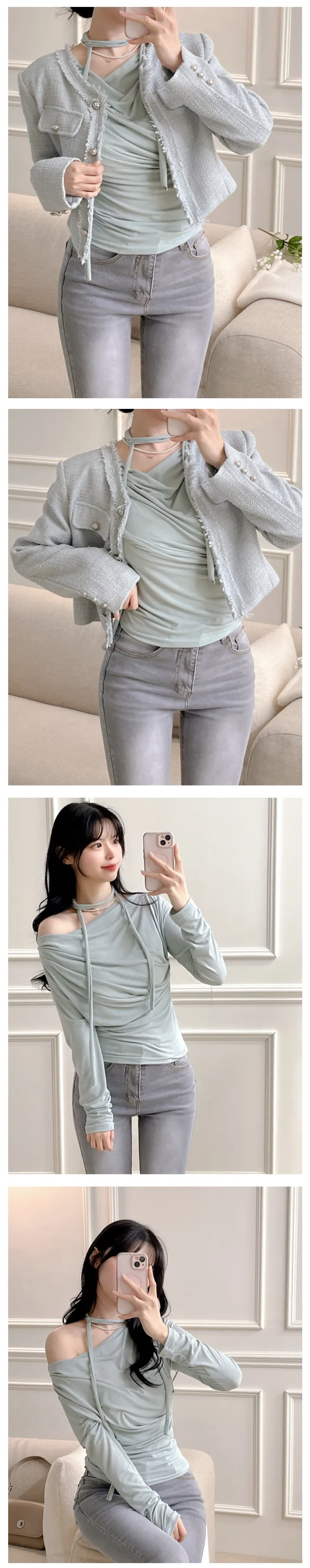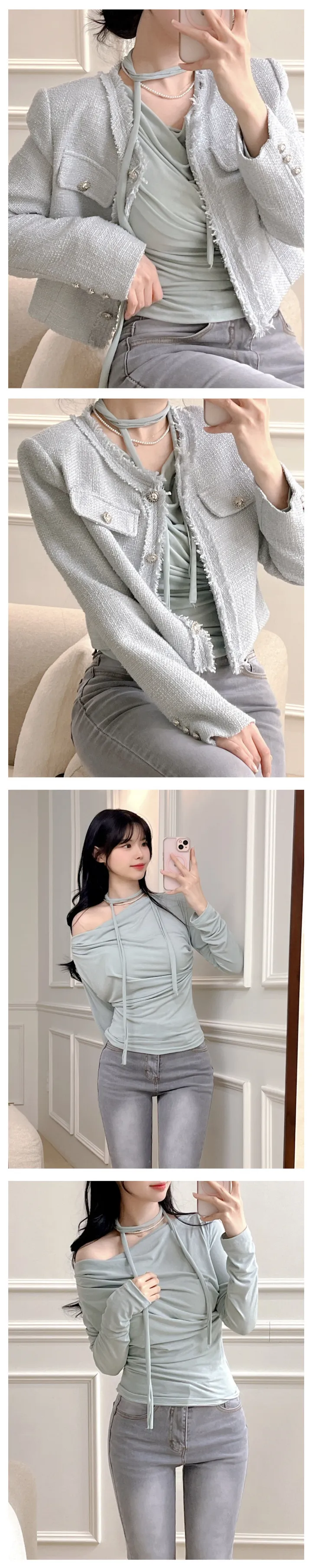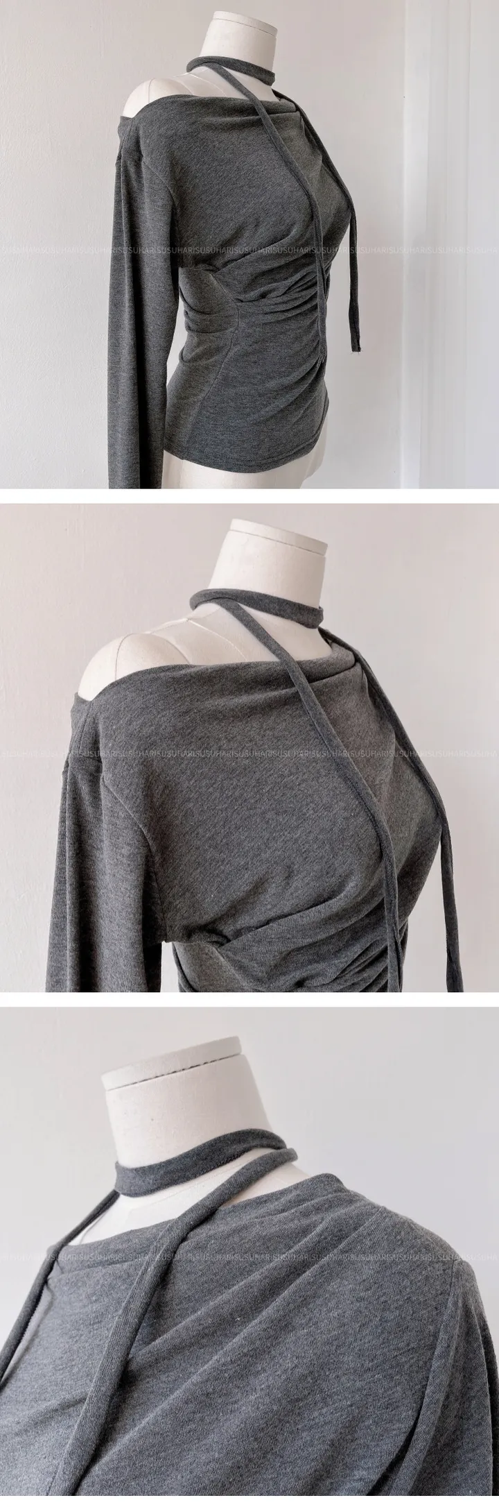 シャーリングリボンタイオフショルTシャツ
