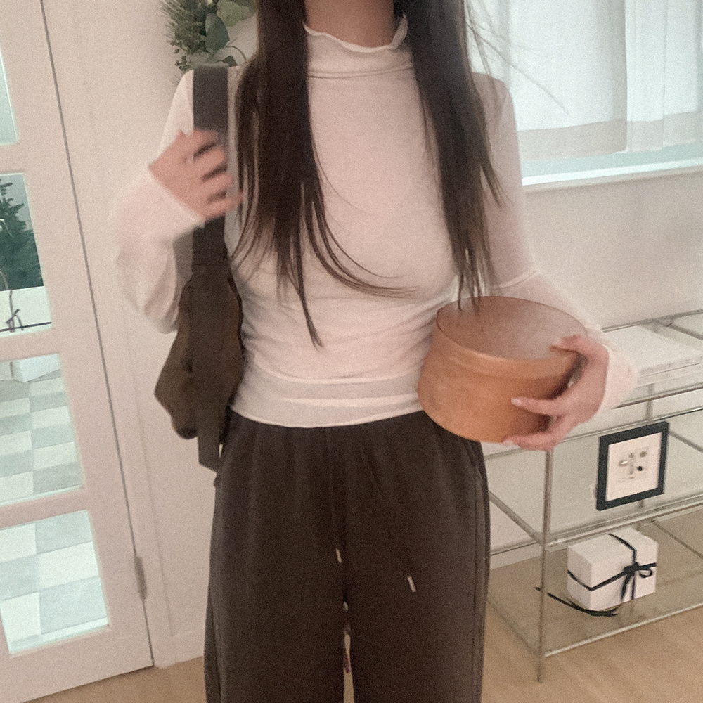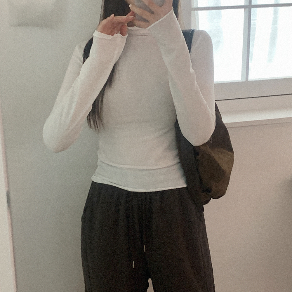 裏起毛 ウェーブ ハイネック Tシャツ