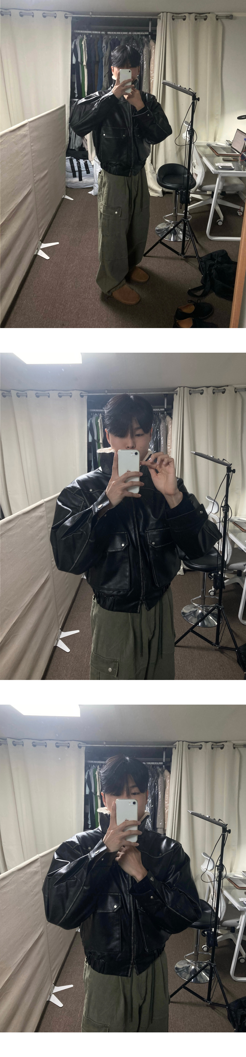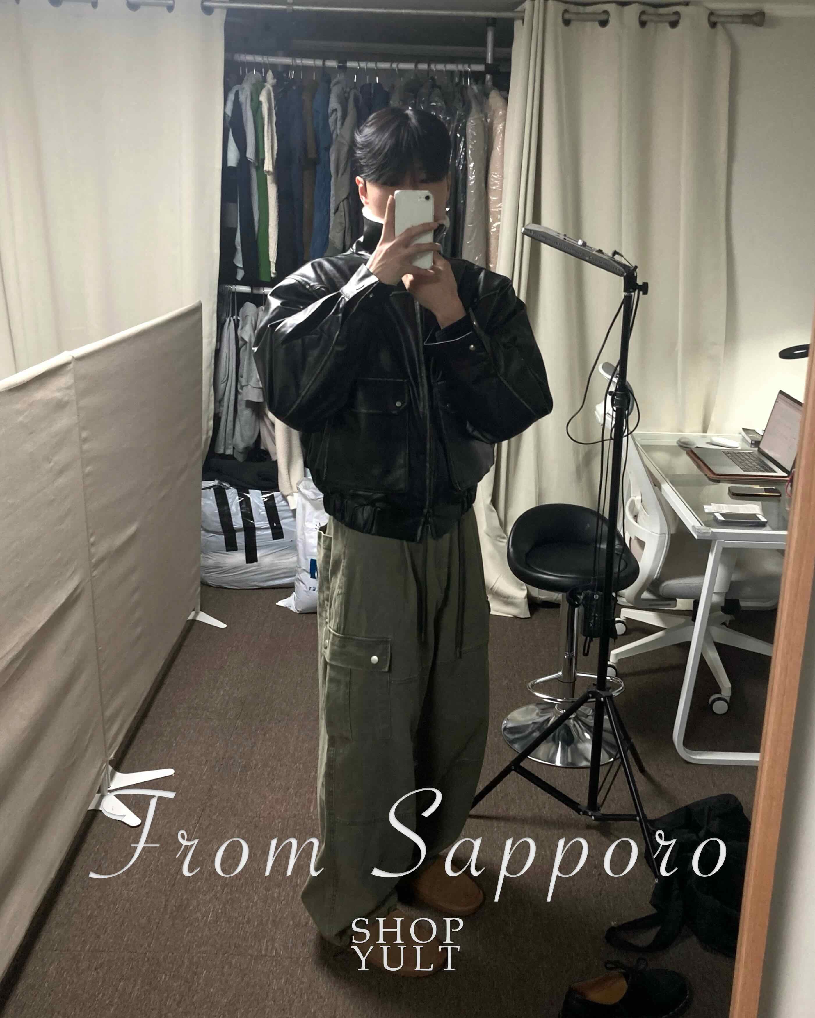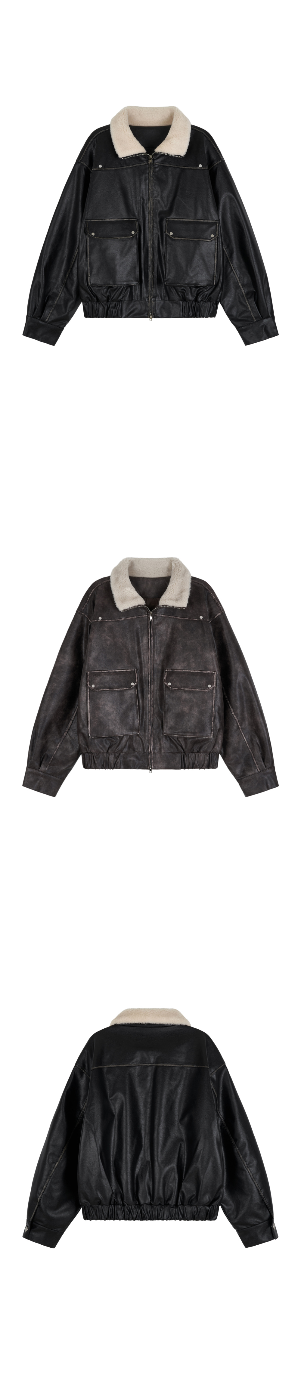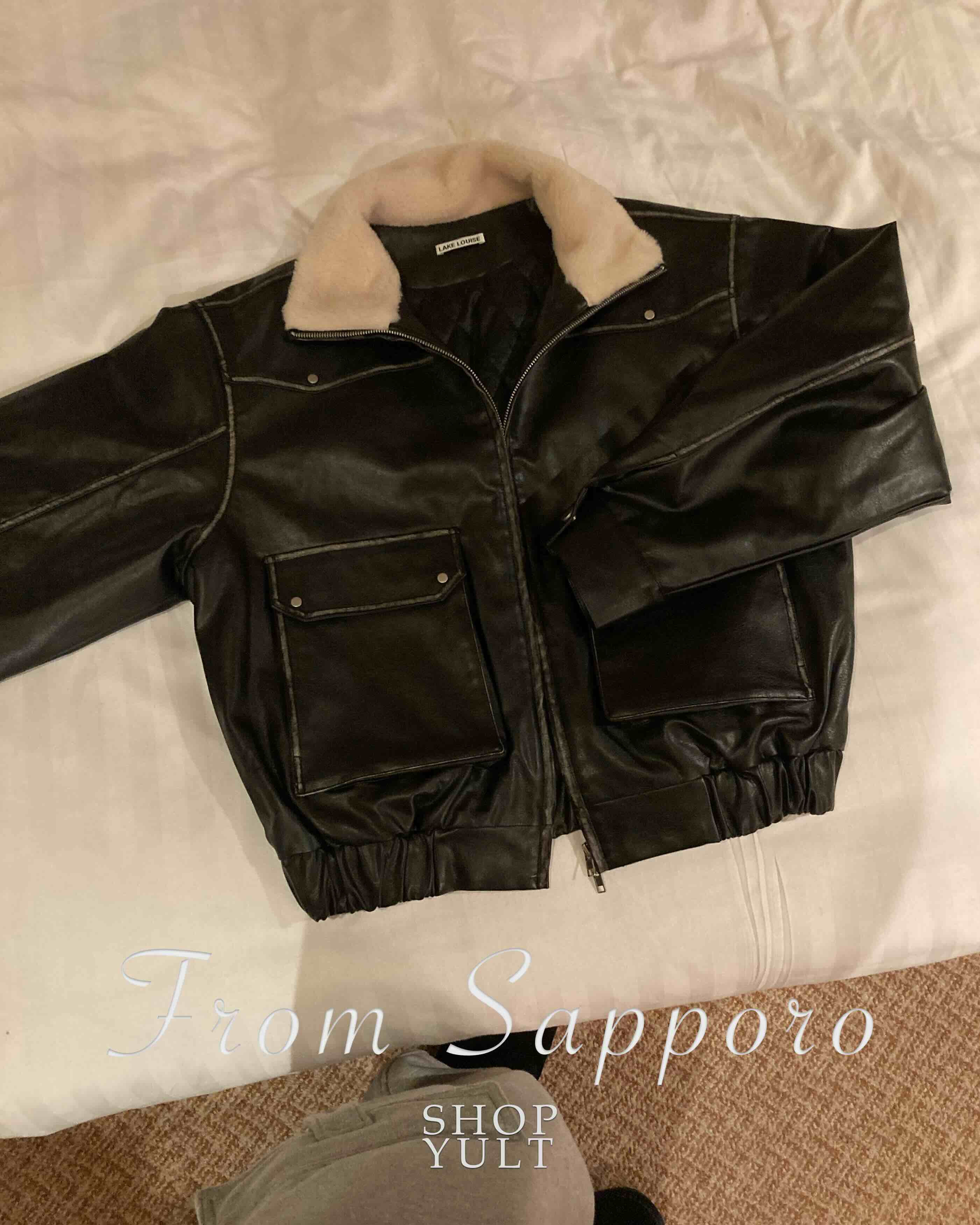 (2color) ヴィンテージ クロップド レザー ムートン コート