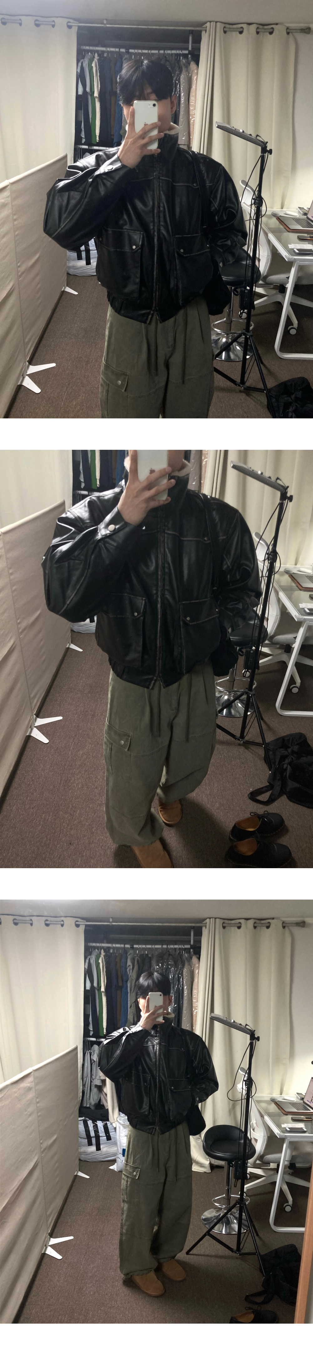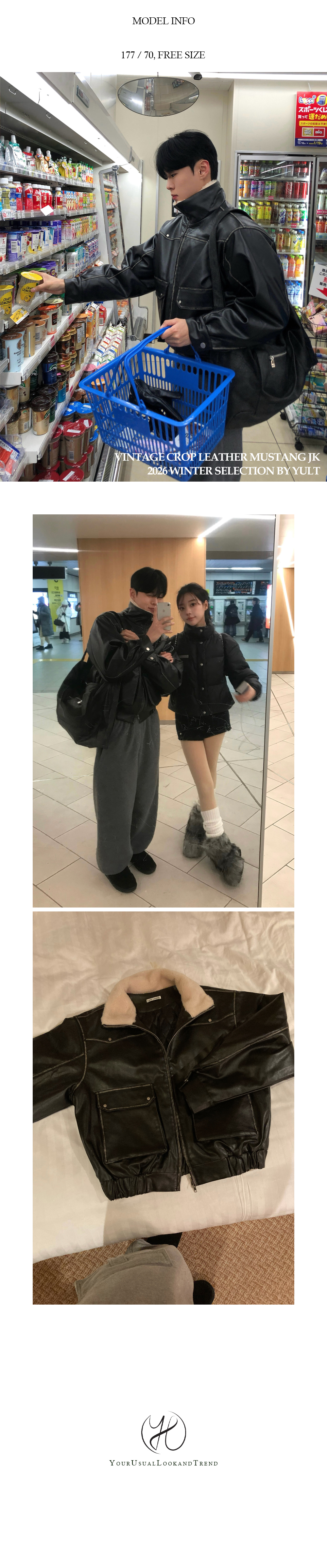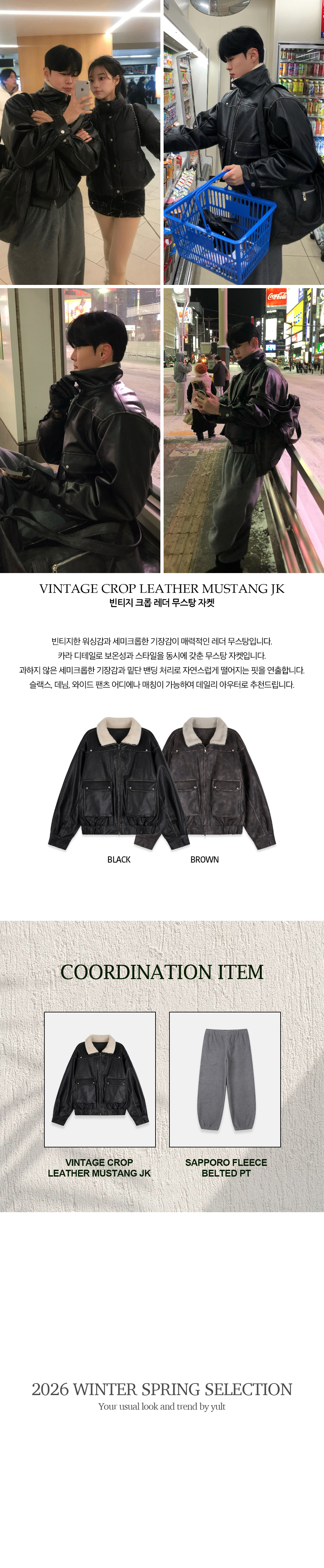 (2color) ヴィンテージ クロップド レザー ムートン コート