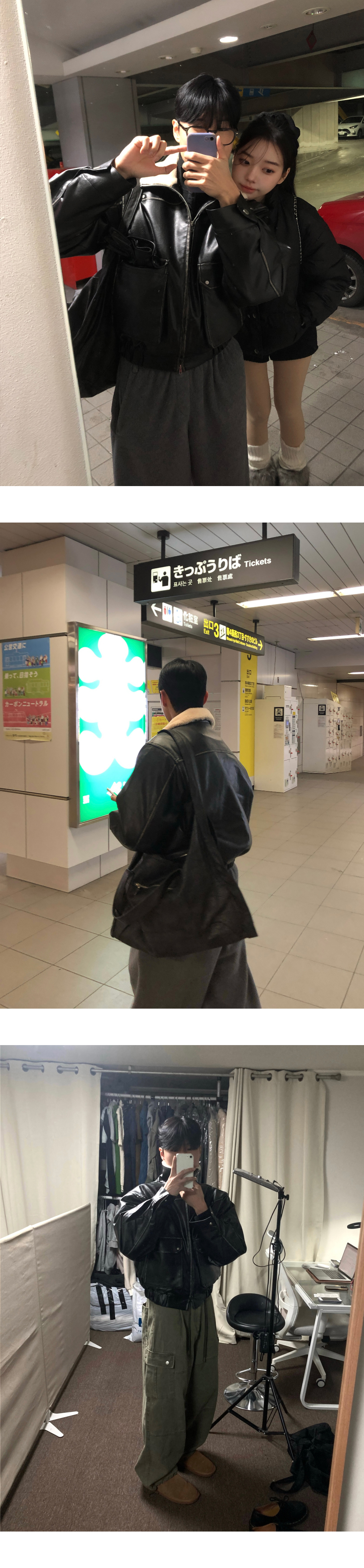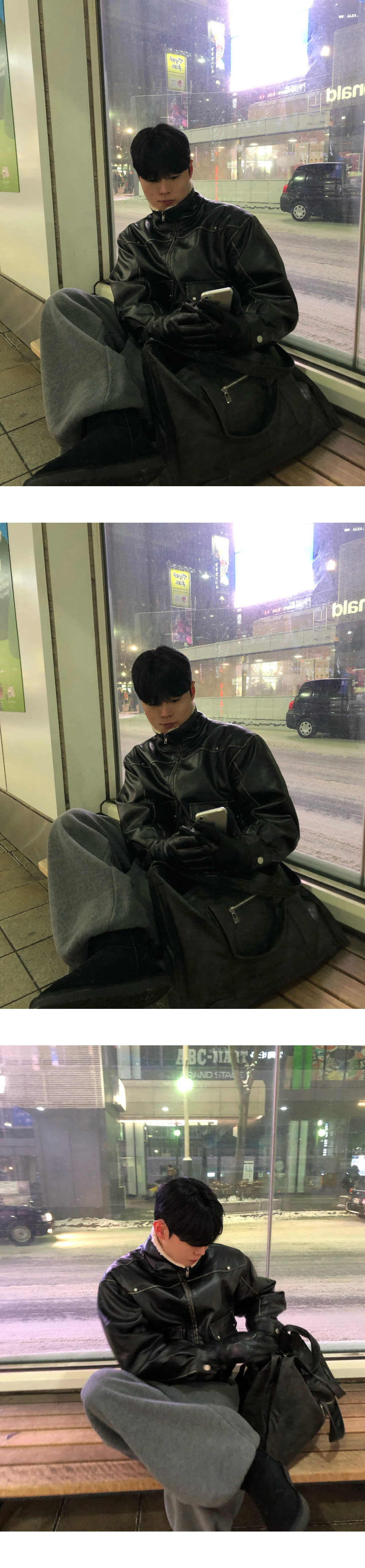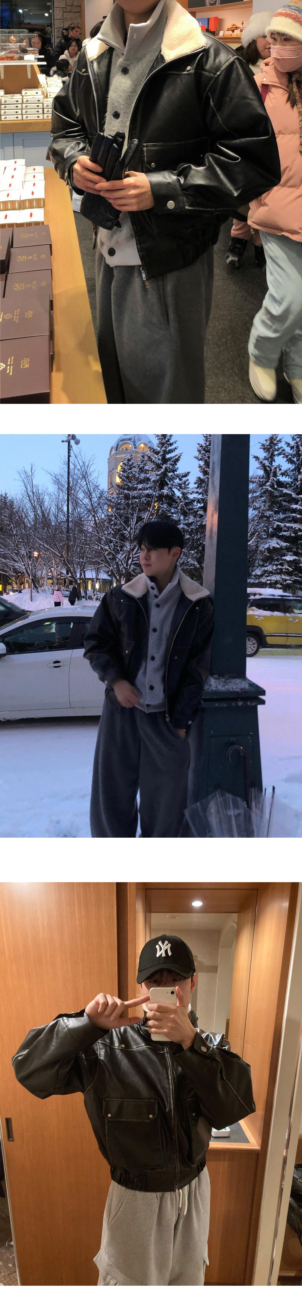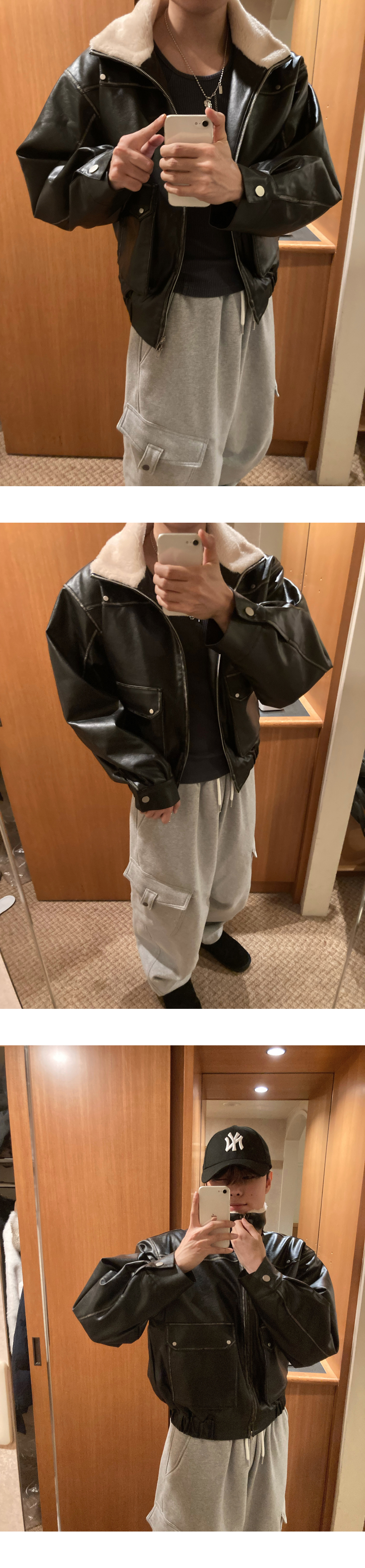 (2color) ヴィンテージ クロップド レザー ムートン コート