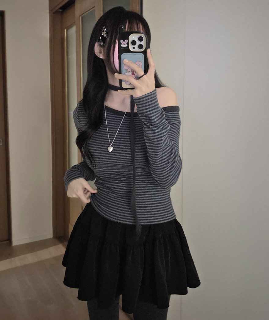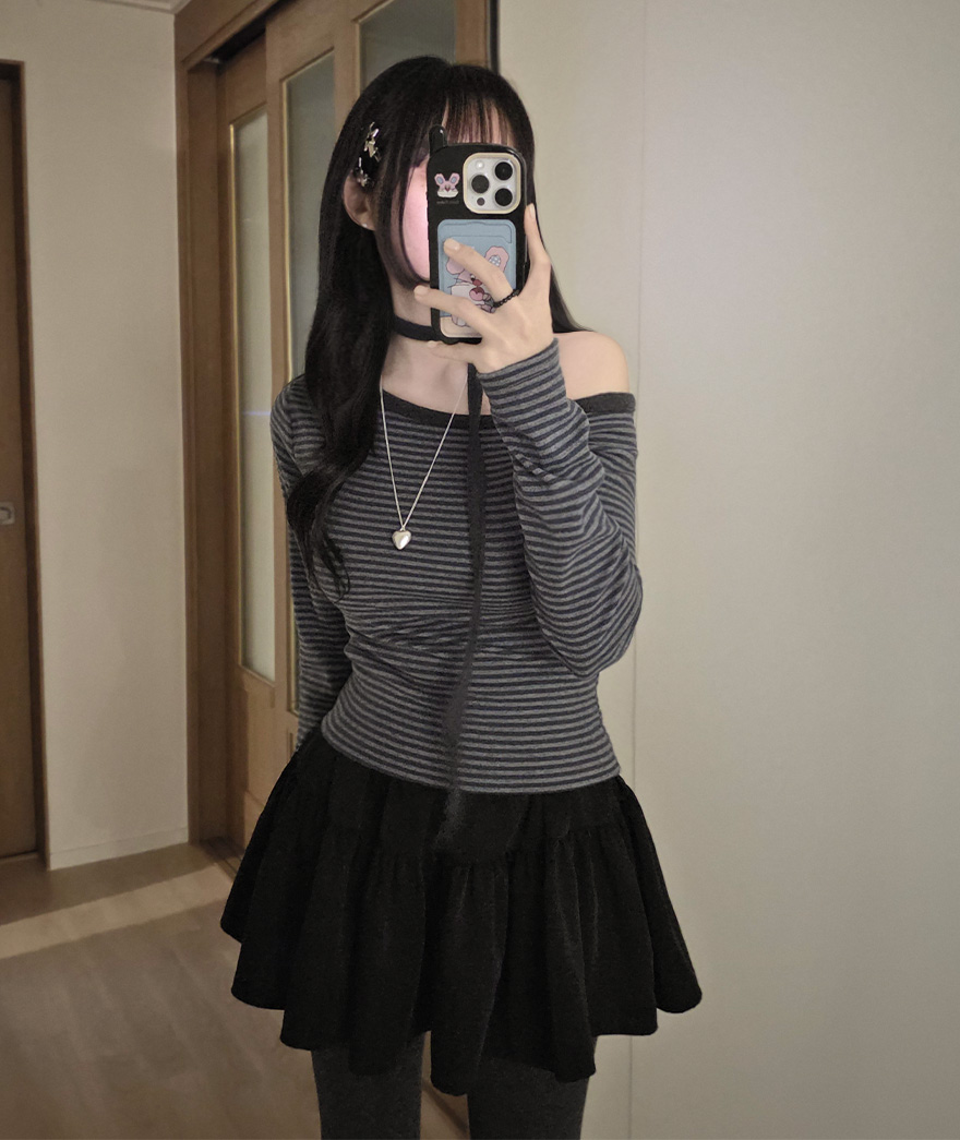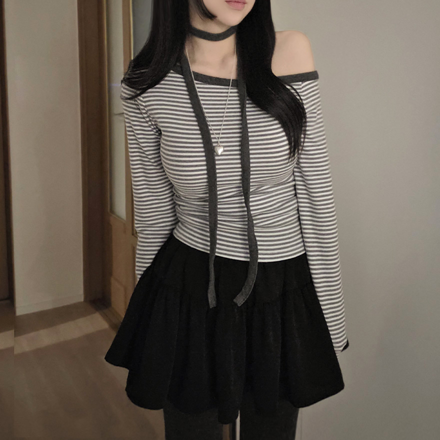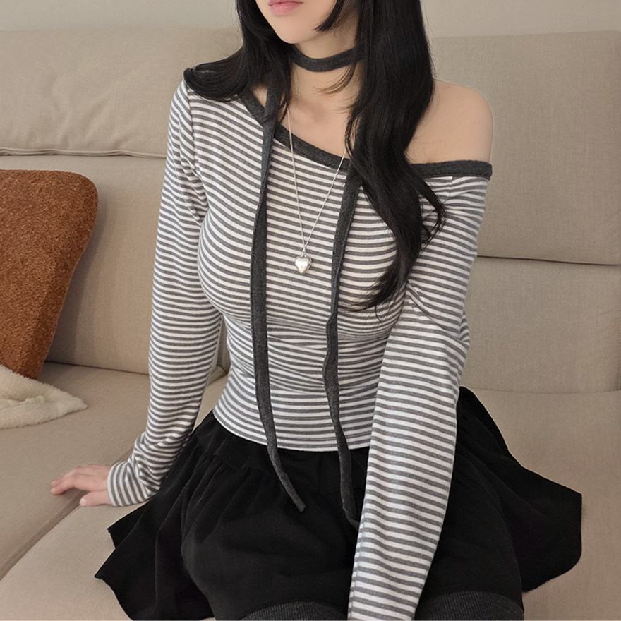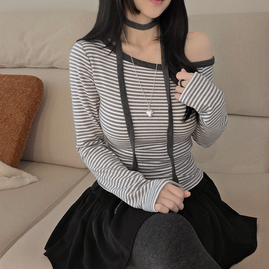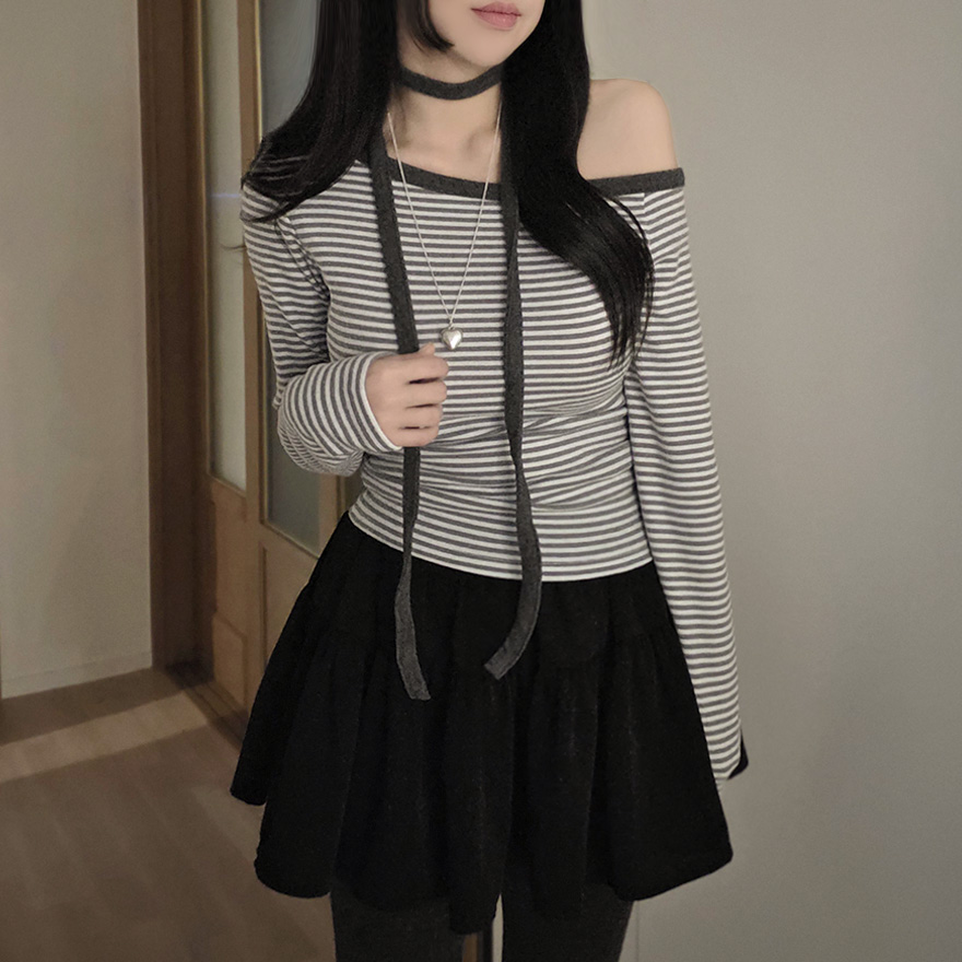 (set) 裏起毛 ボーダー オフショルダー Tシャツ