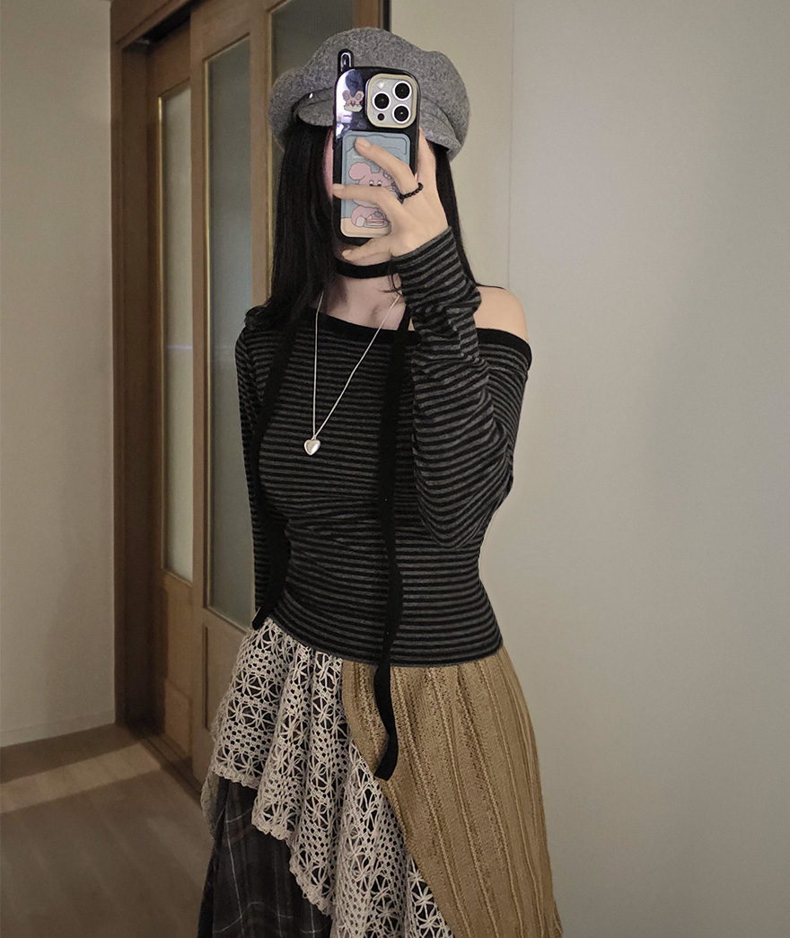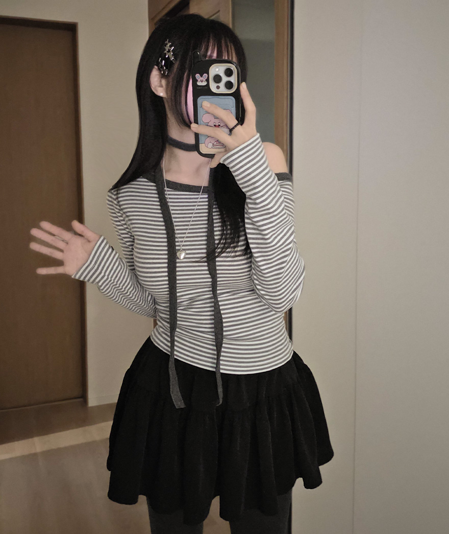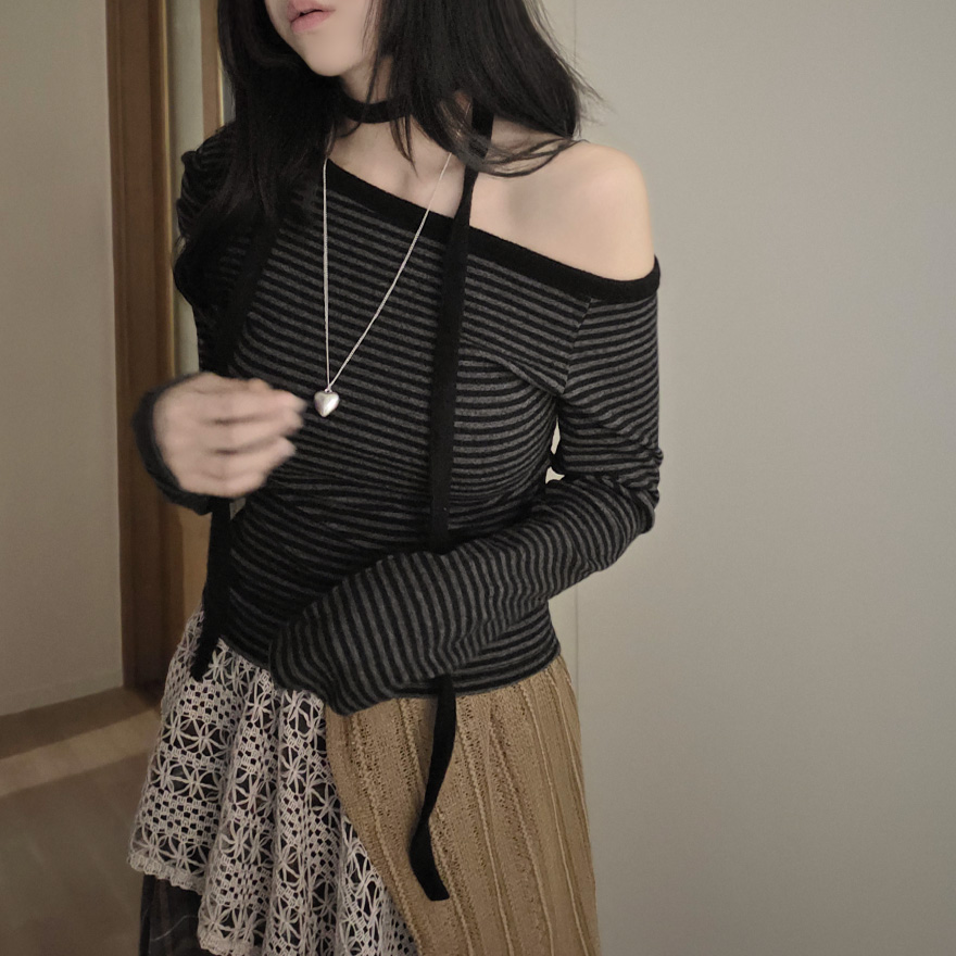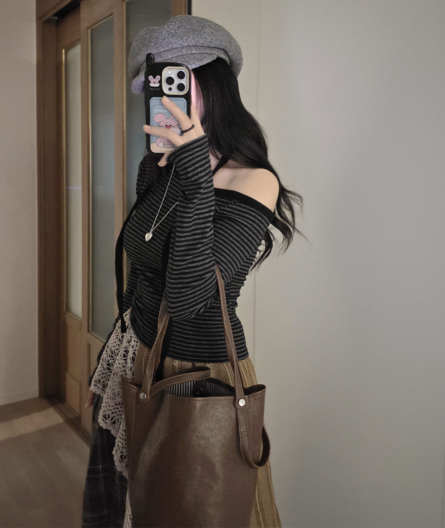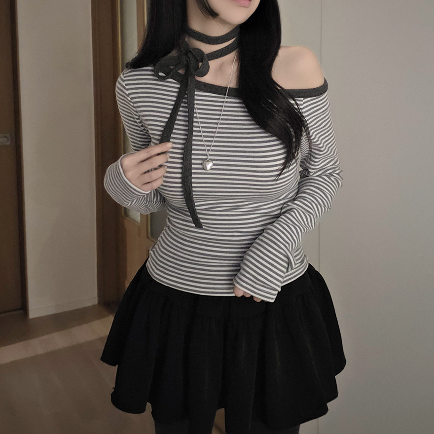 (set) 裏起毛 ボーダー オフショルダー Tシャツ