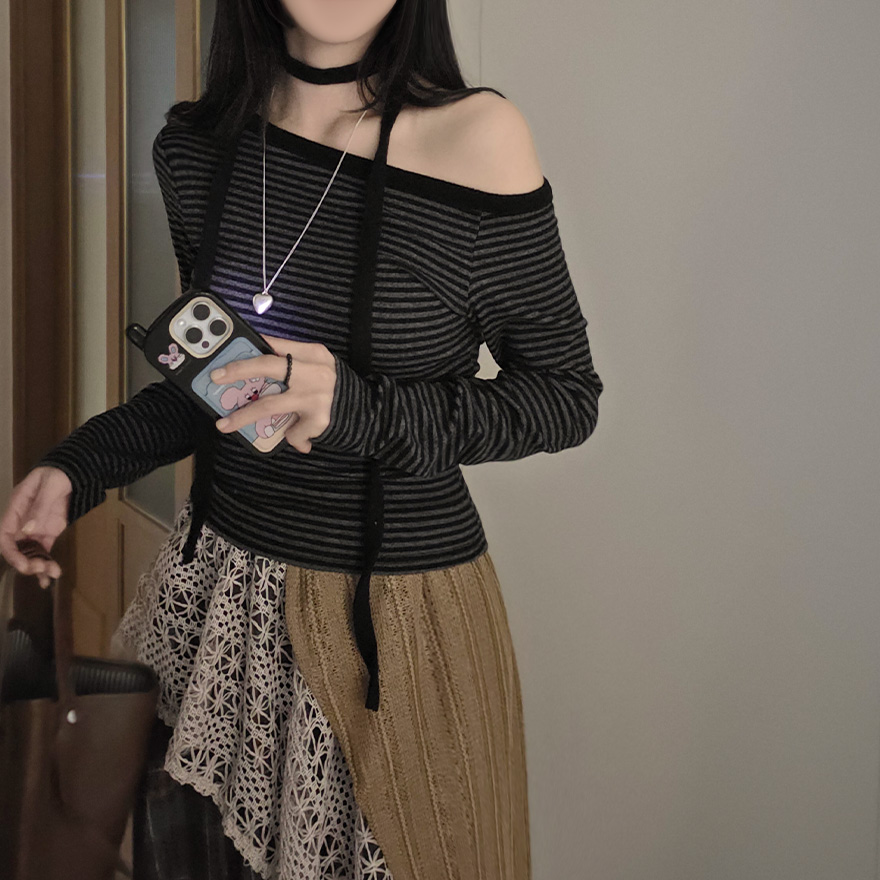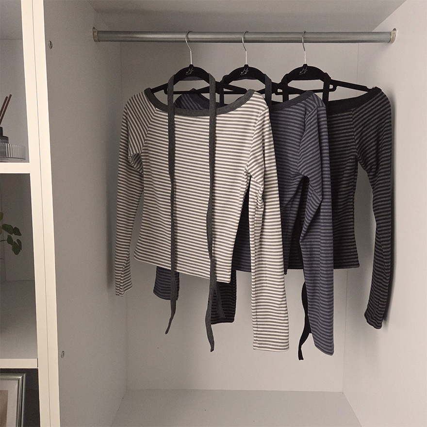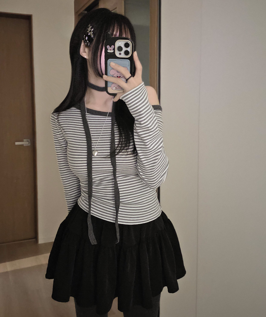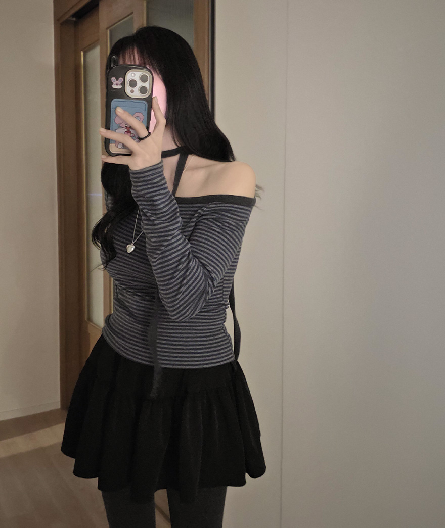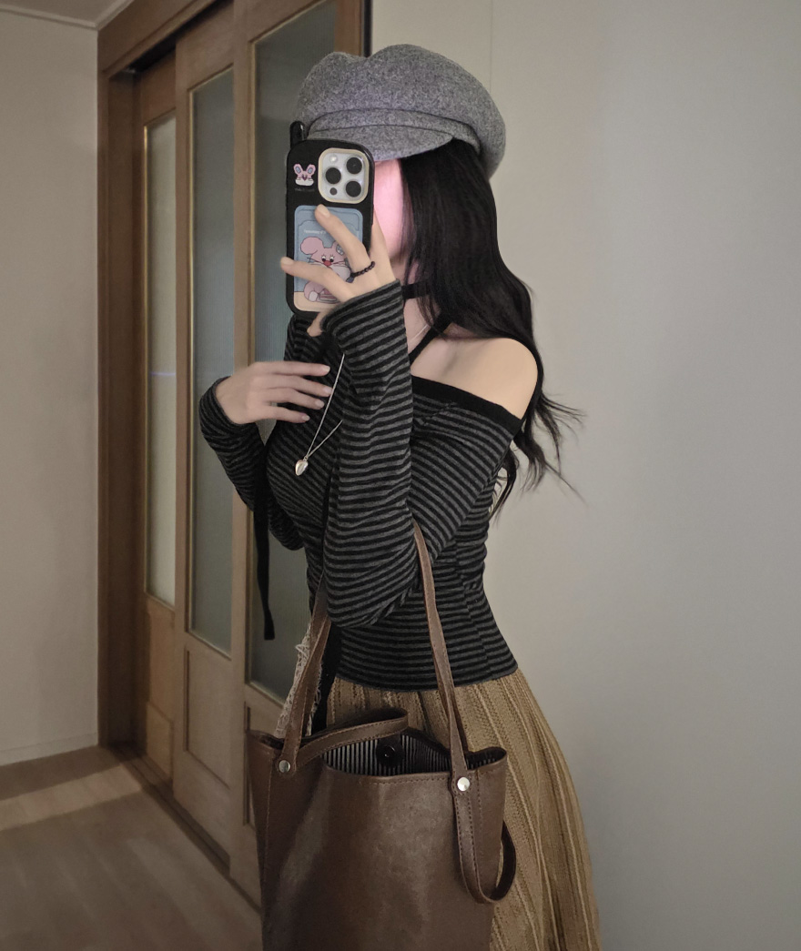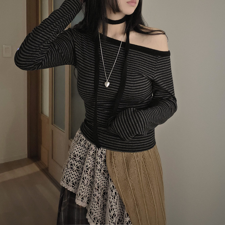 (set) 裏起毛 ボーダー オフショルダー Tシャツ