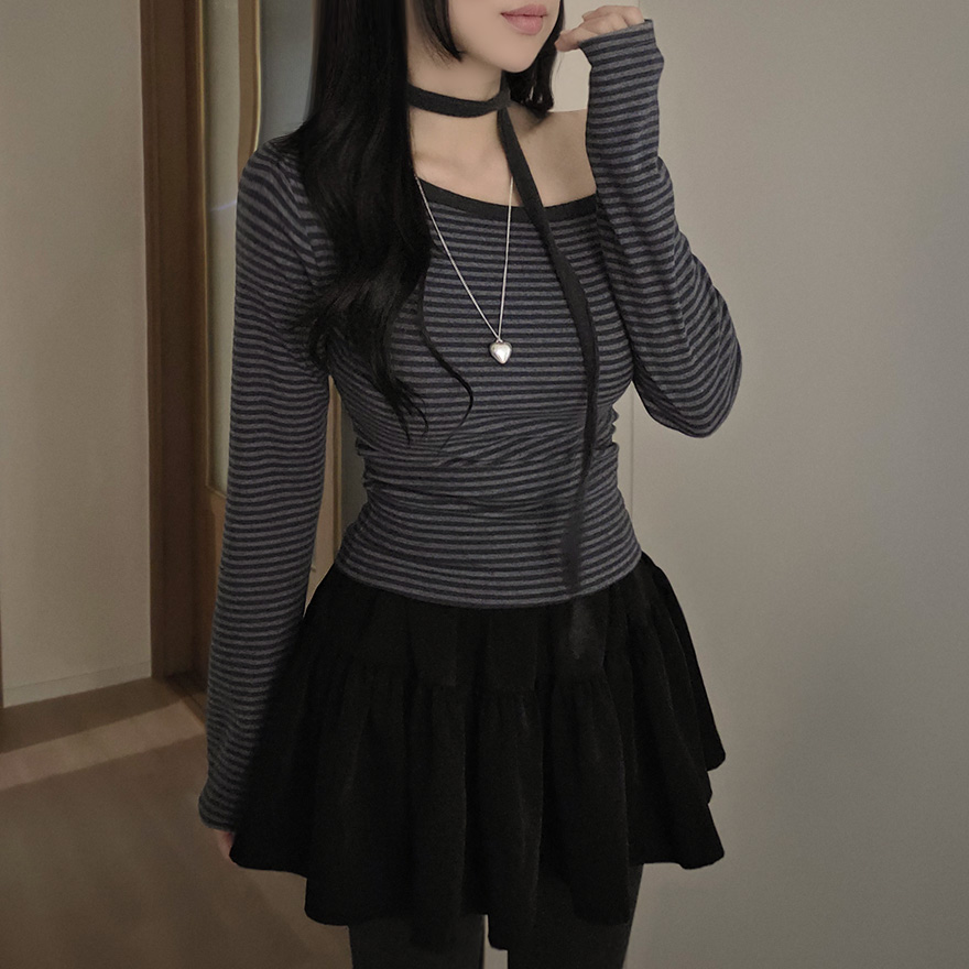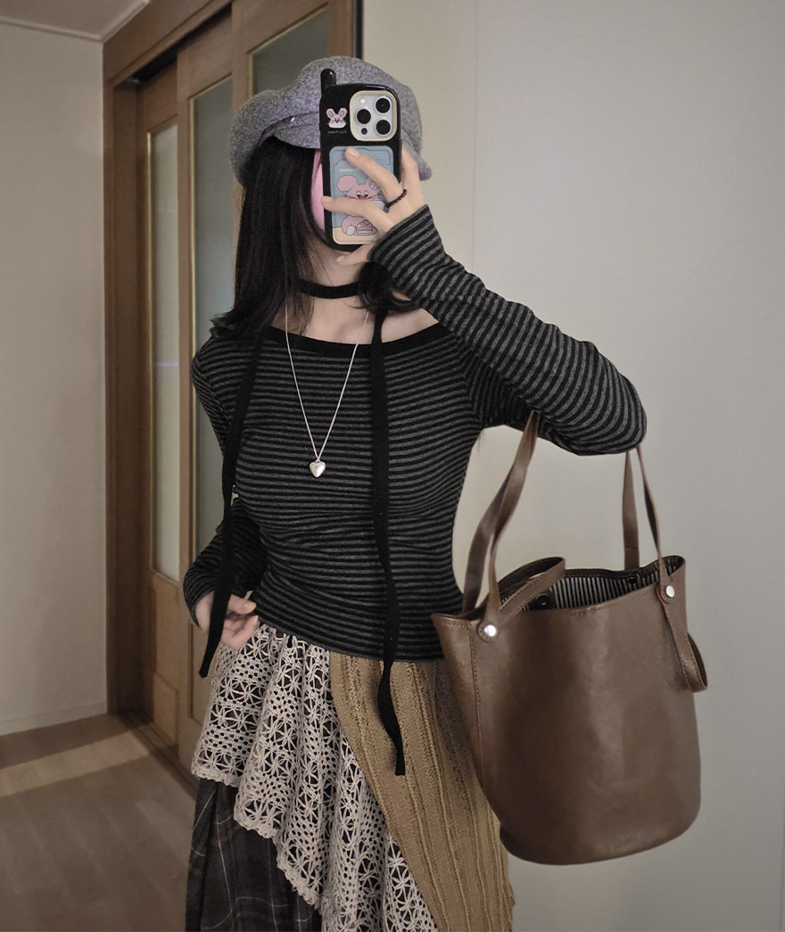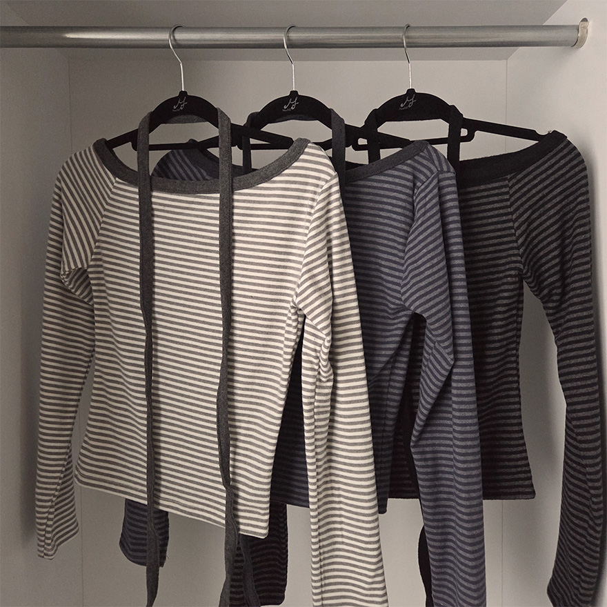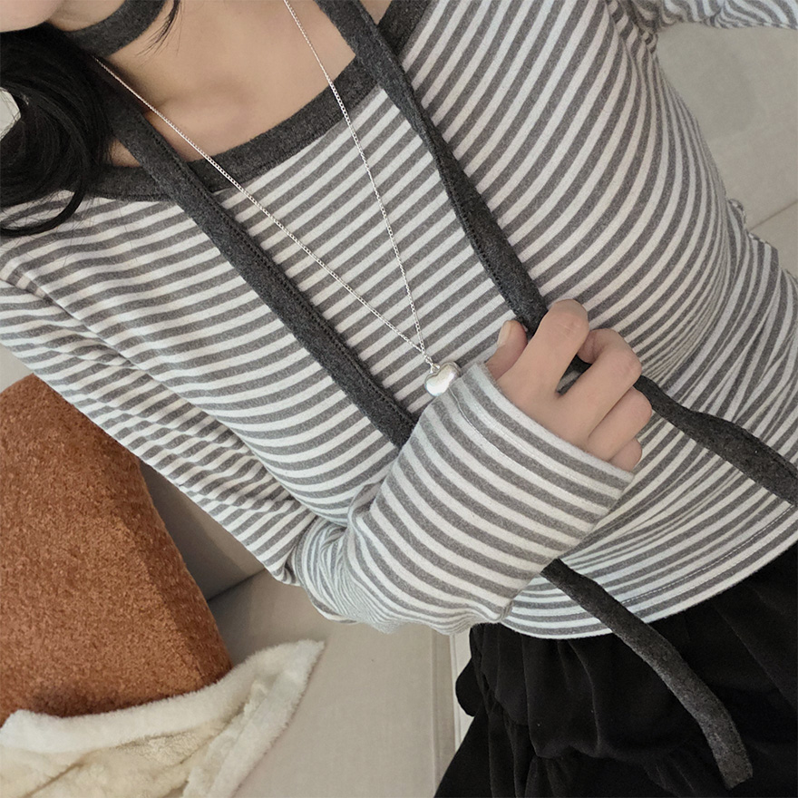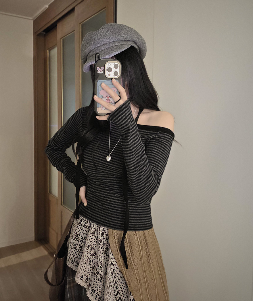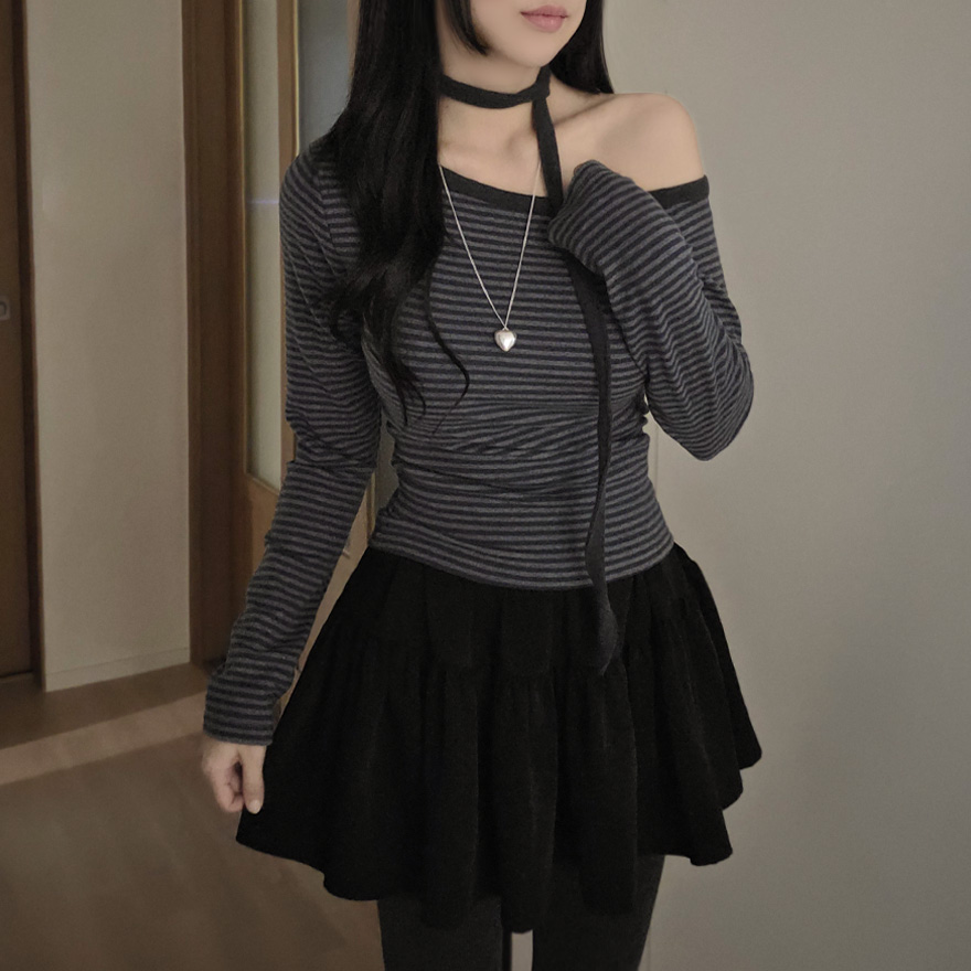 (set) 裏起毛 ボーダー オフショルダー Tシャツ
