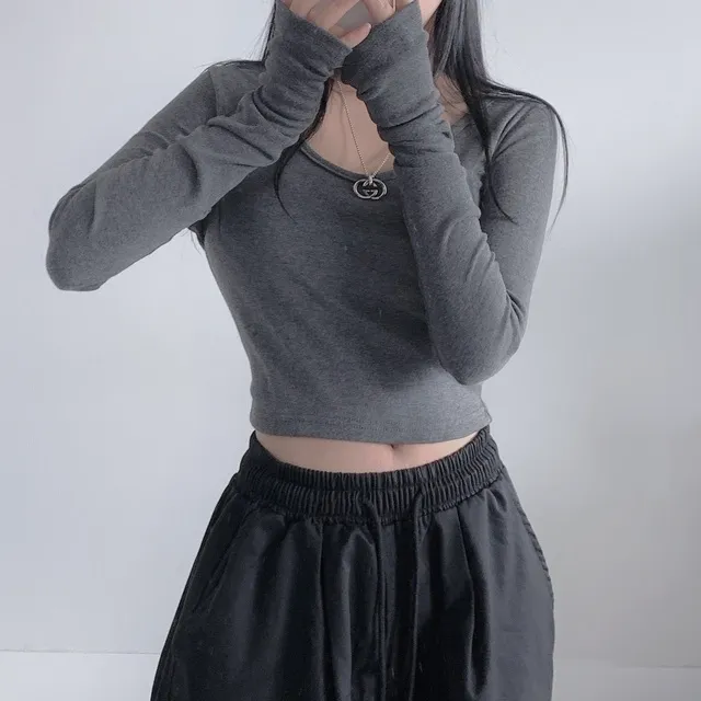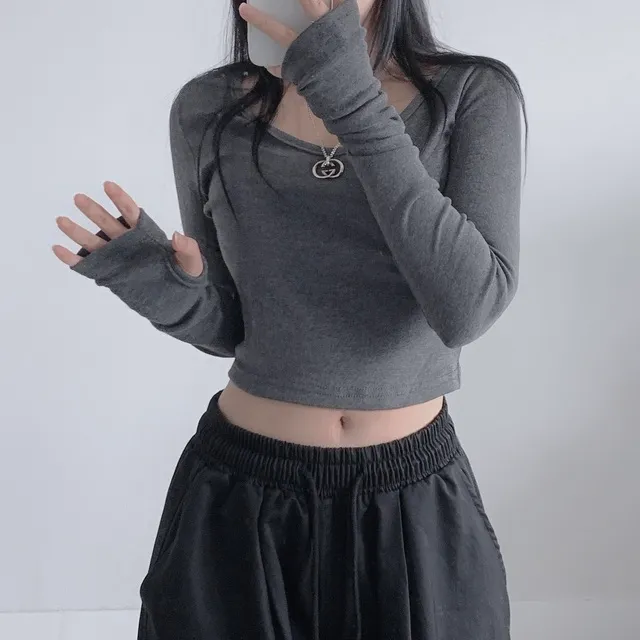 ヴィンテージUネックハンドウォーマー長袖Tシャツ