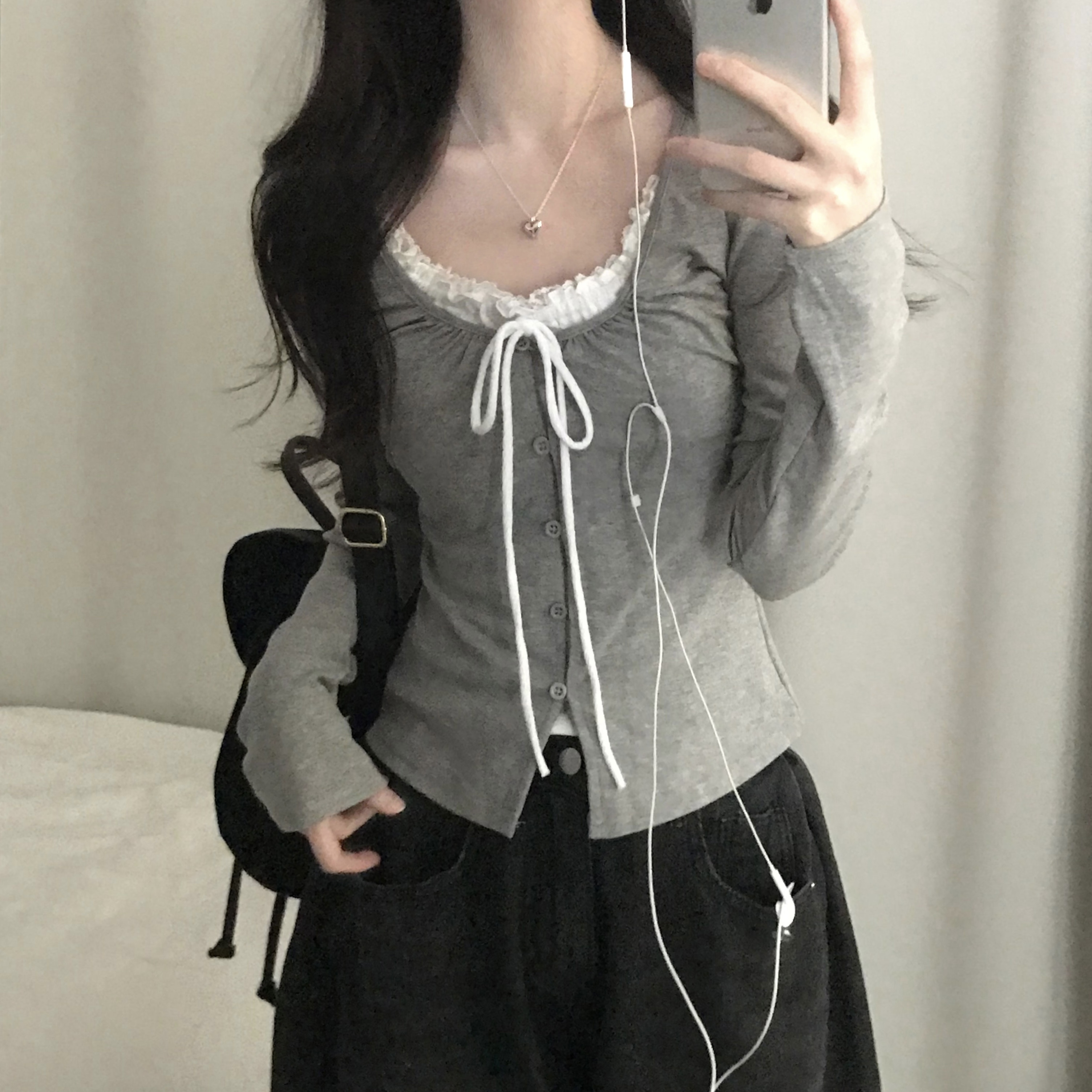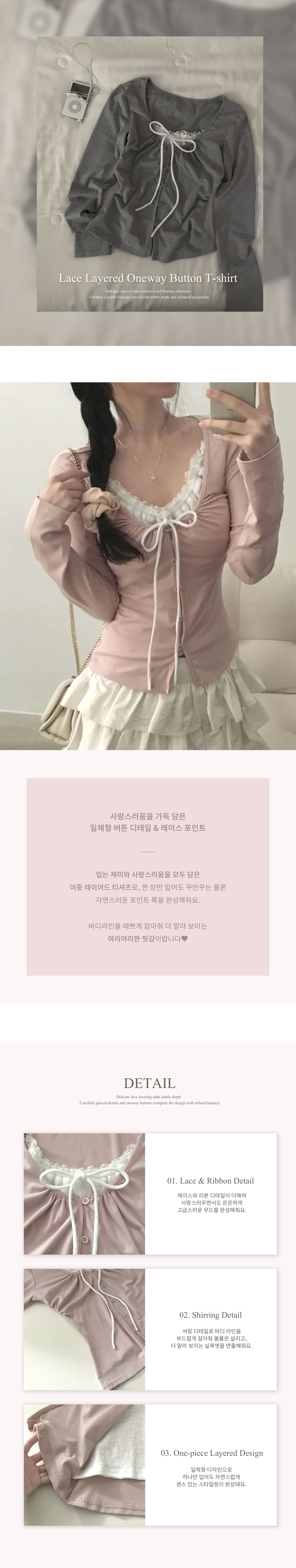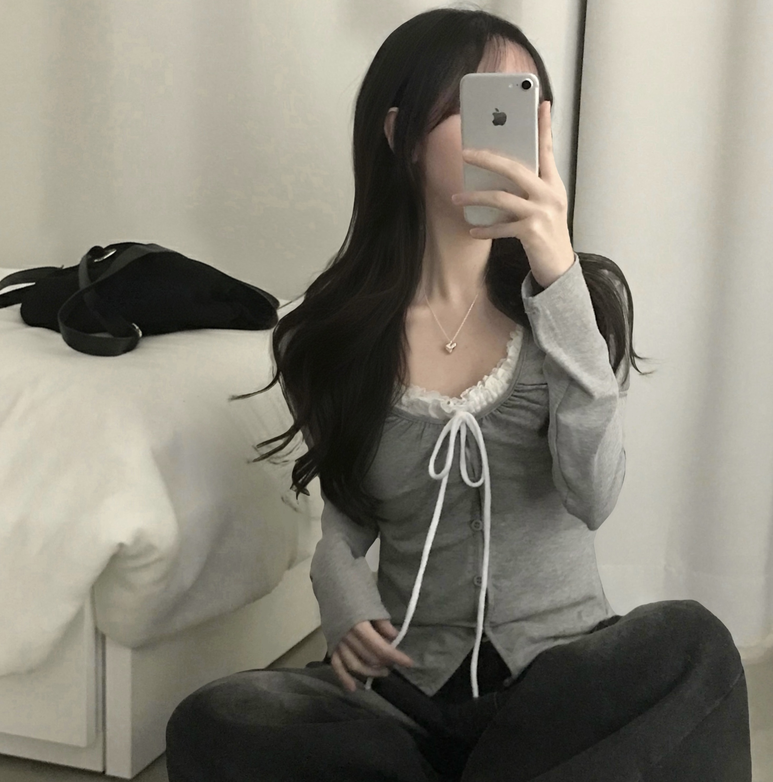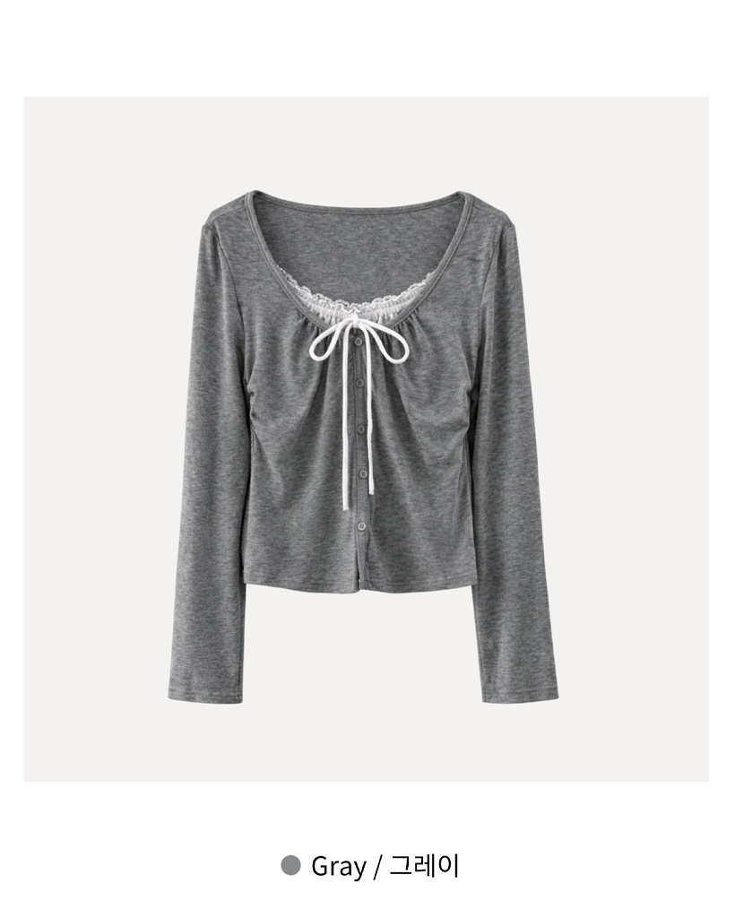 (4color) リボン レース レイヤード 長袖 Tシャツ