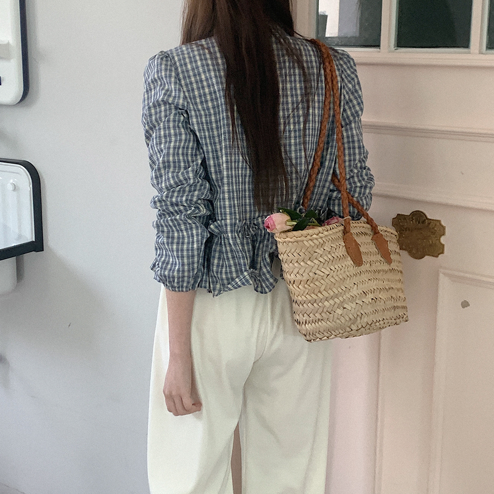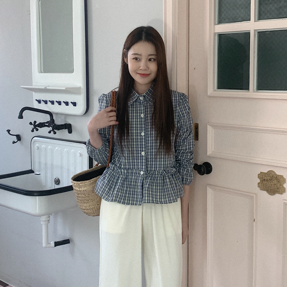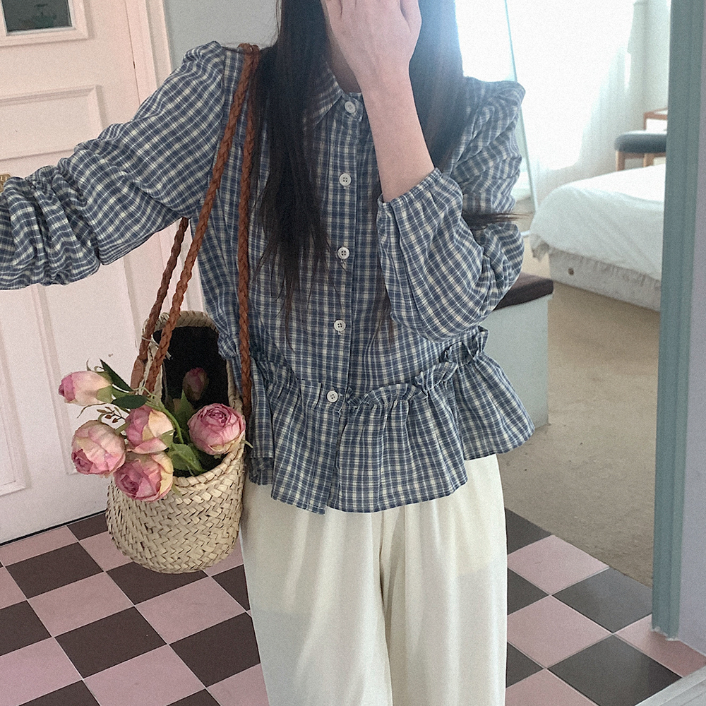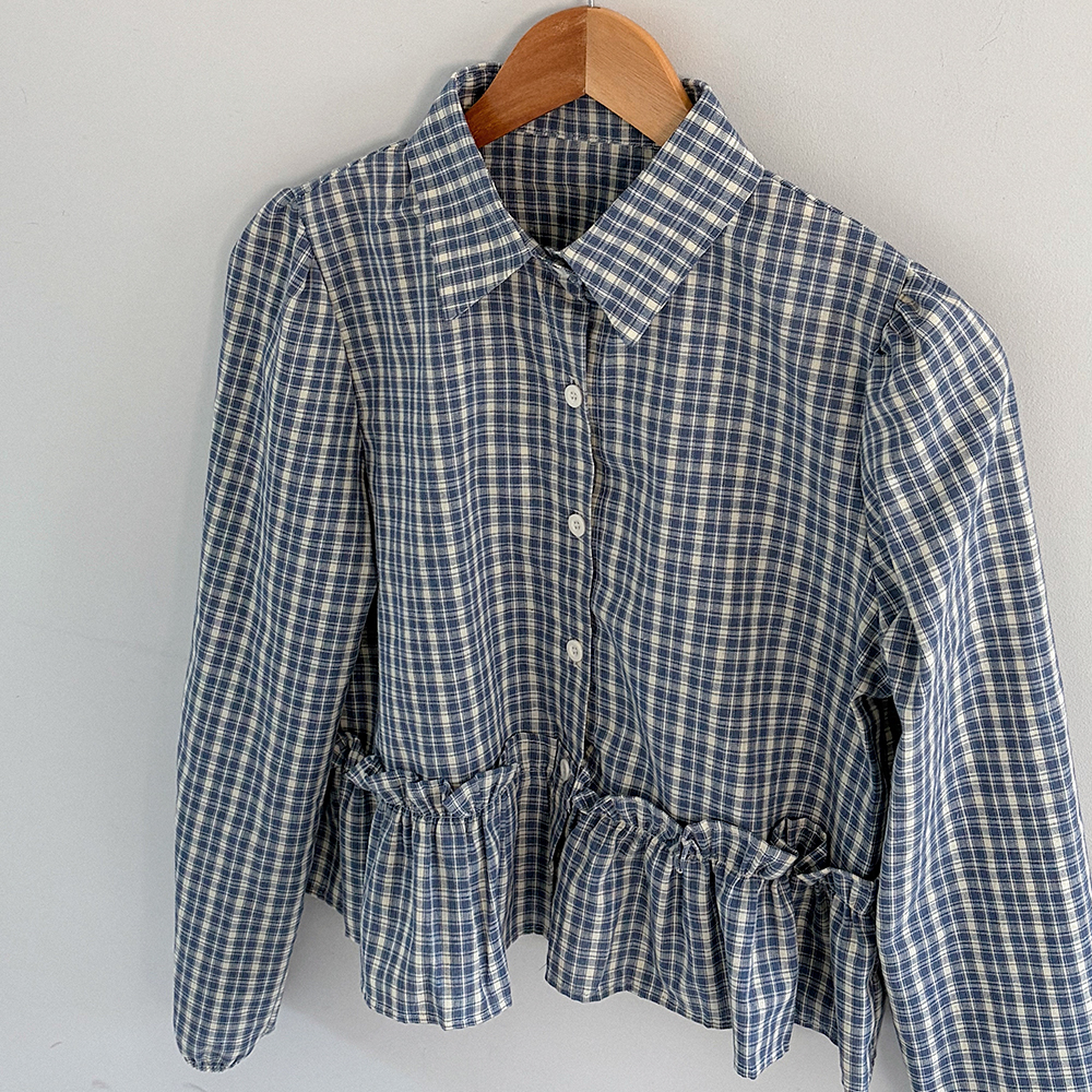 チェック柄フリルブラウス