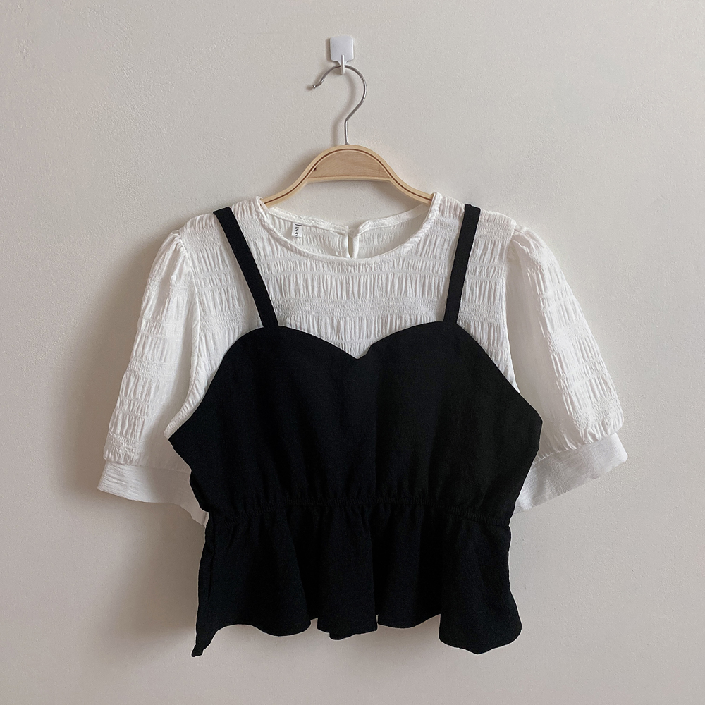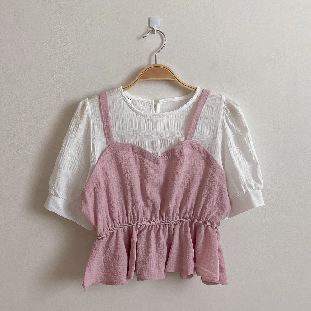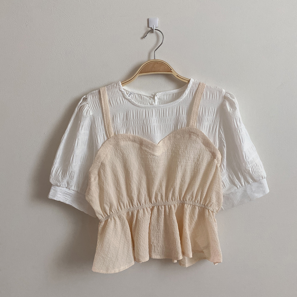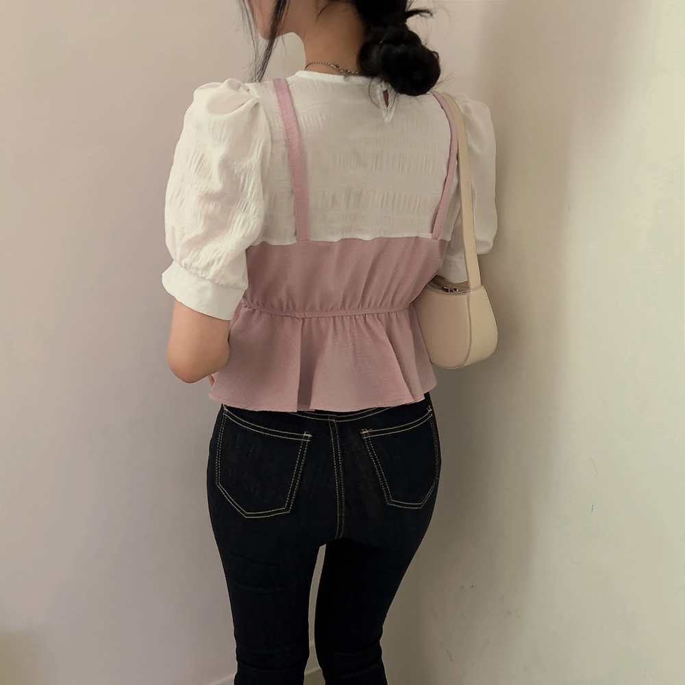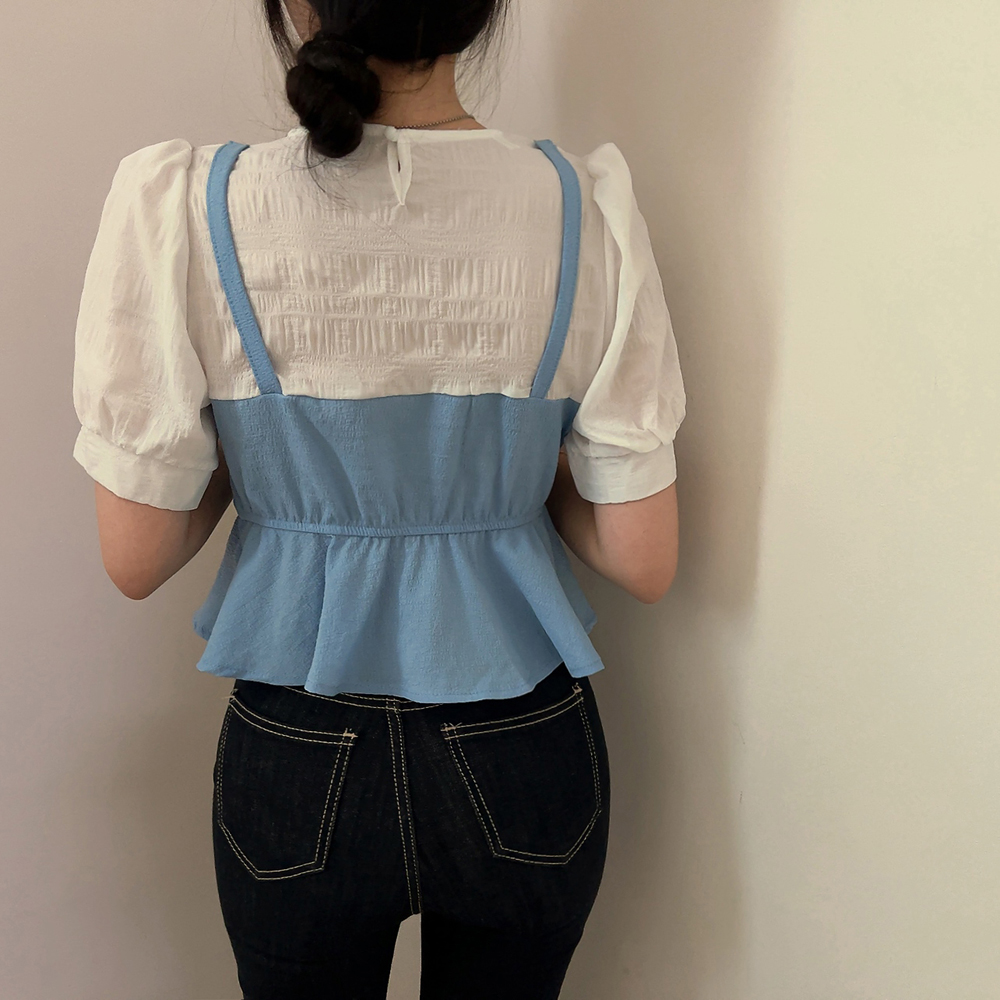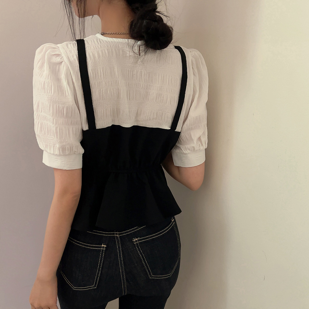ビスチェシャーリングパフ半袖ブラウス