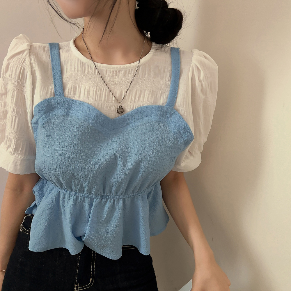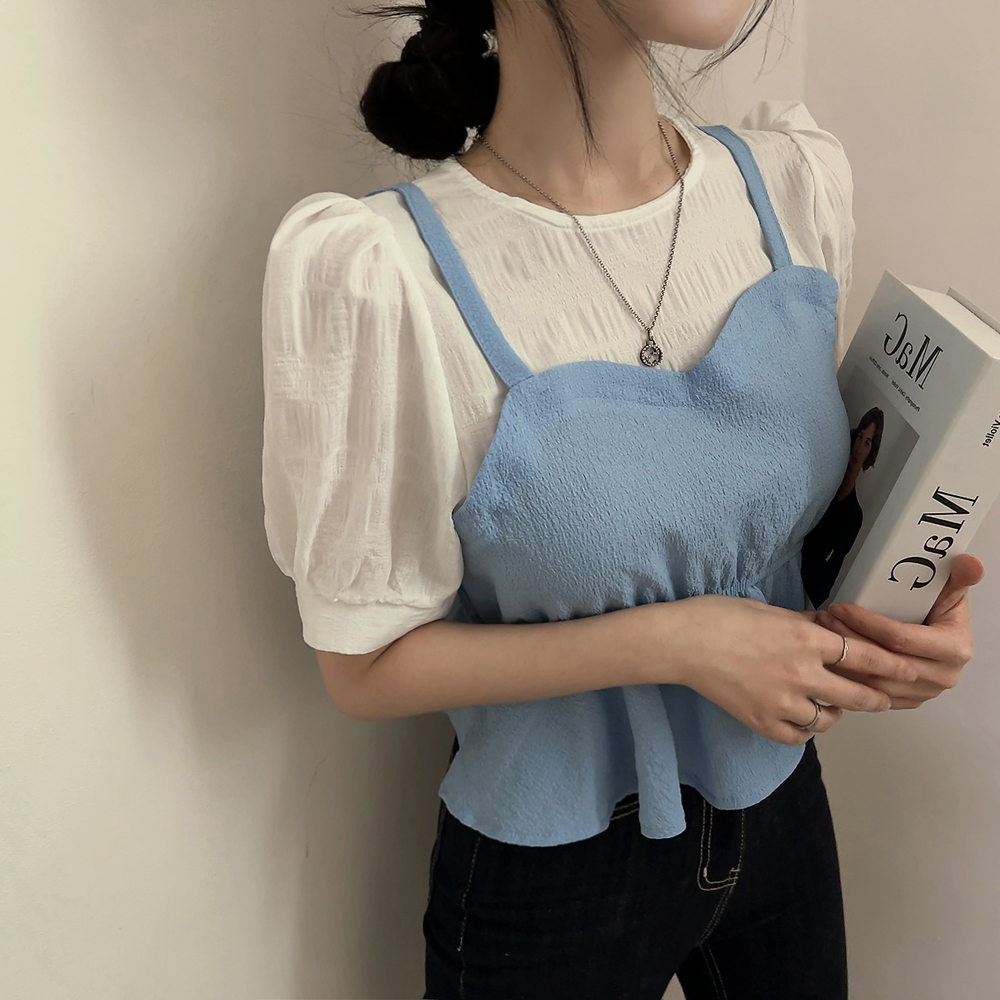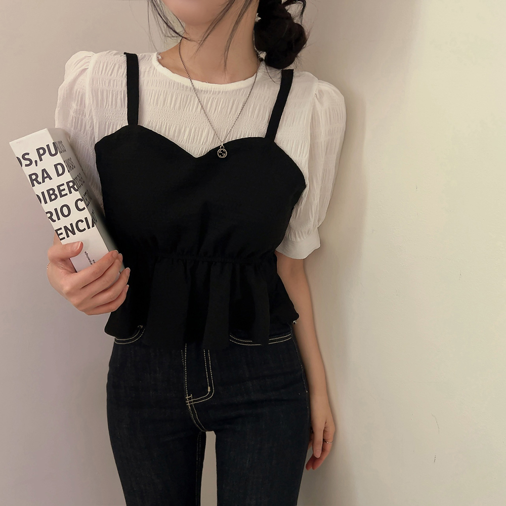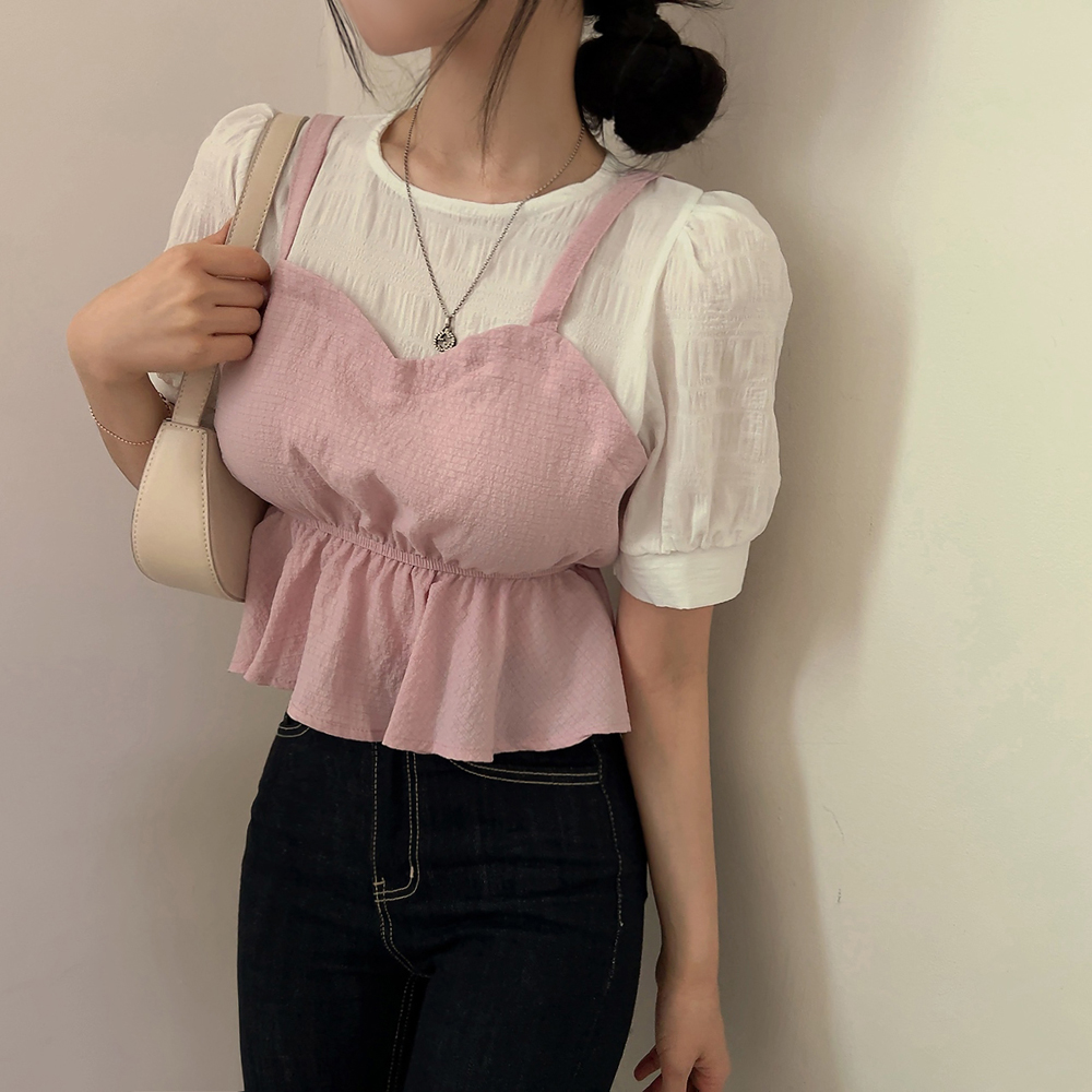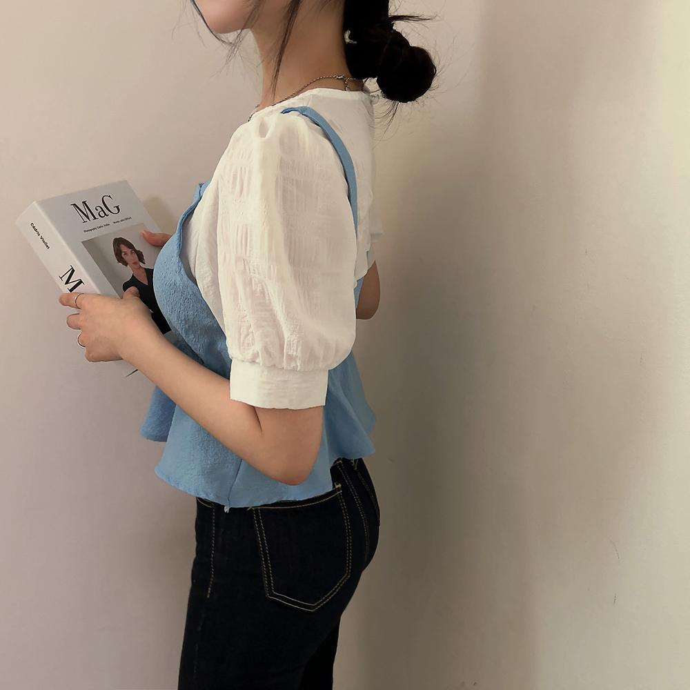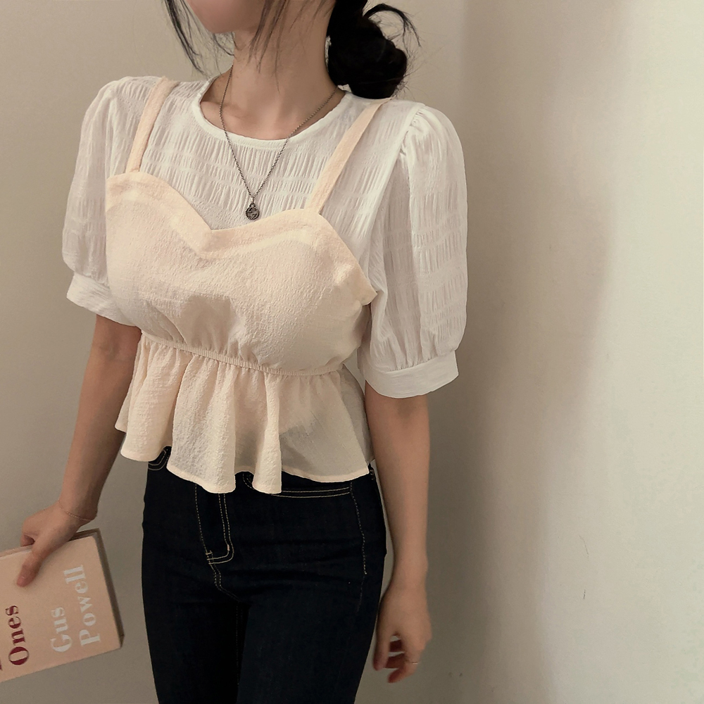 ビスチェシャーリングパフ半袖ブラウス