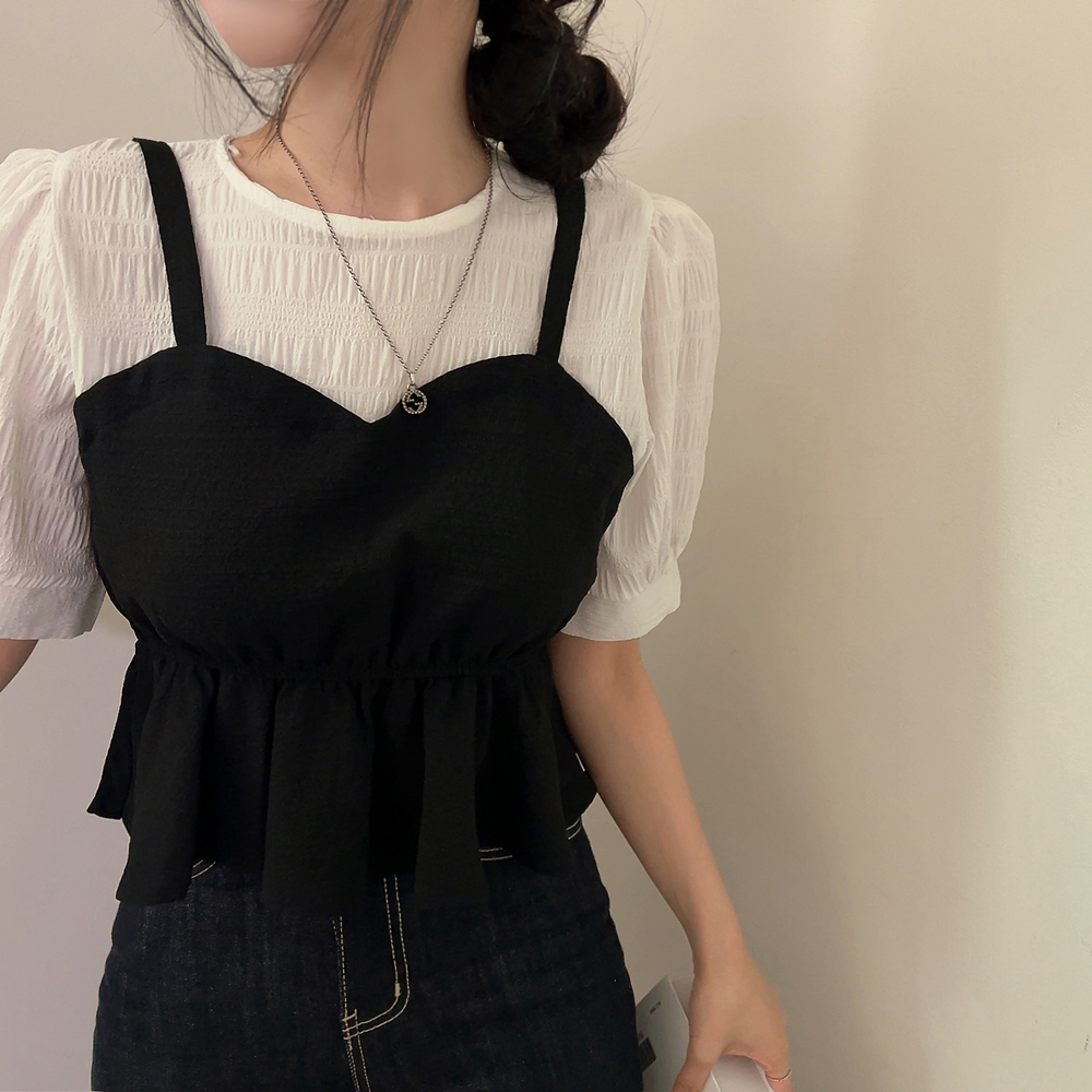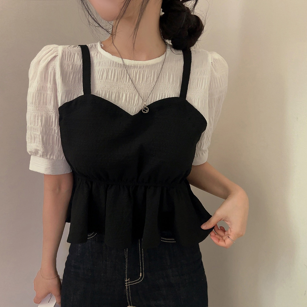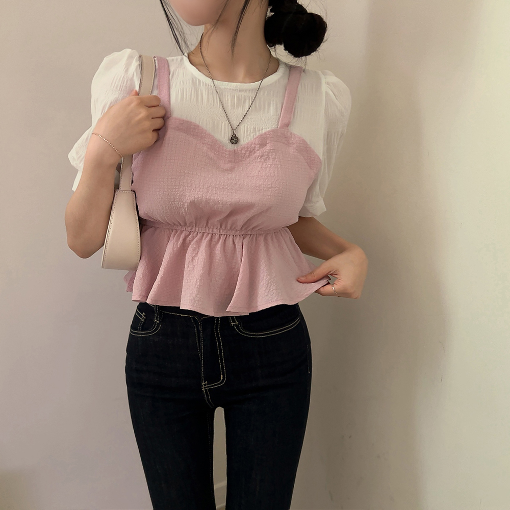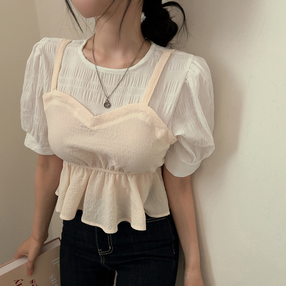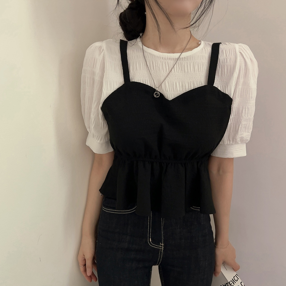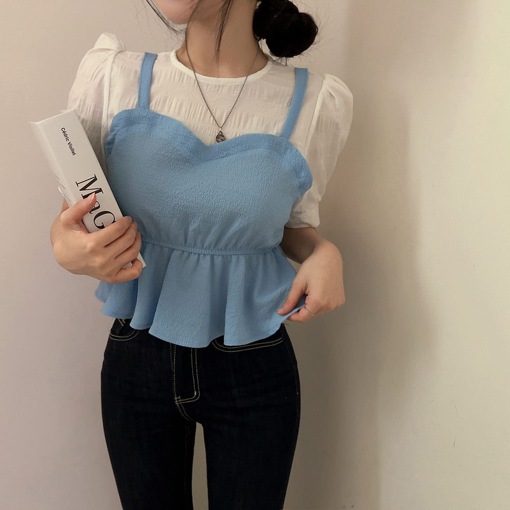 ビスチェシャーリングパフ半袖ブラウス