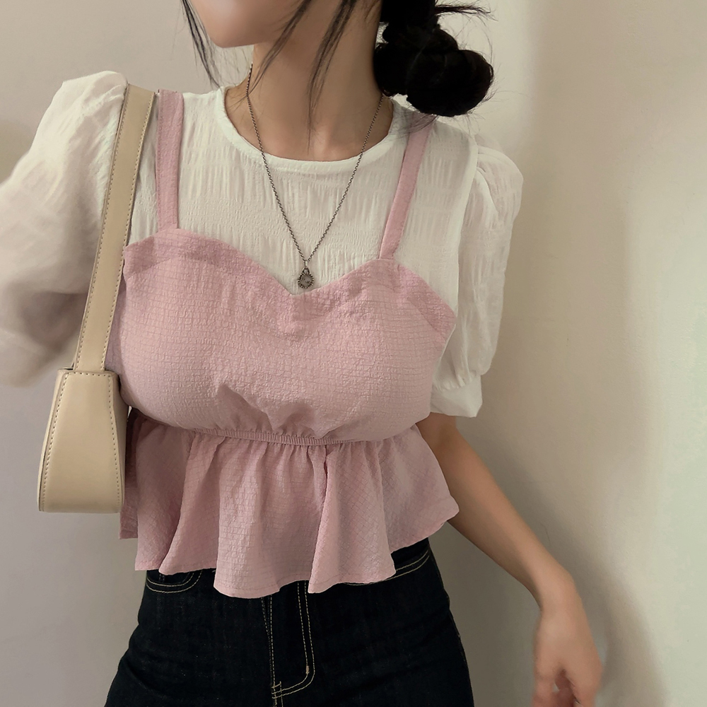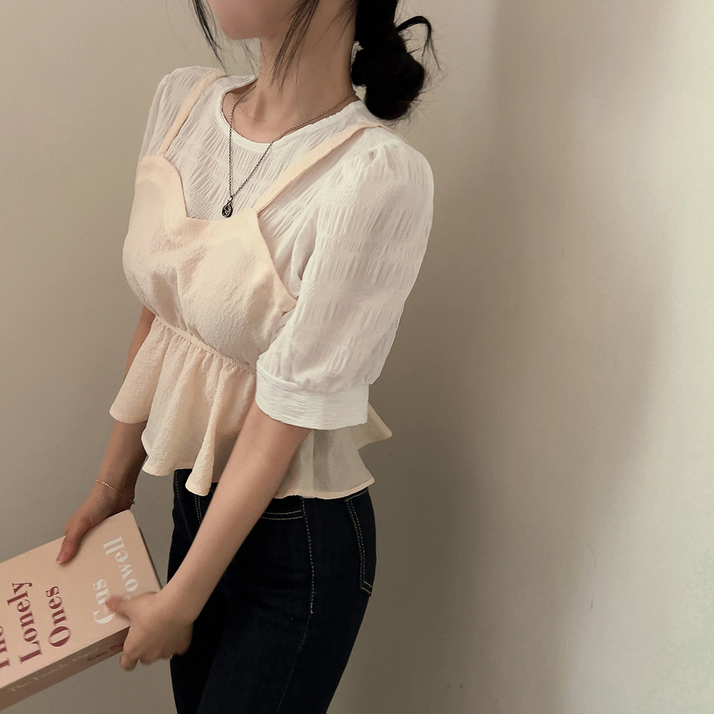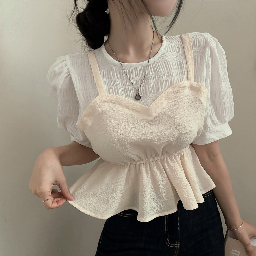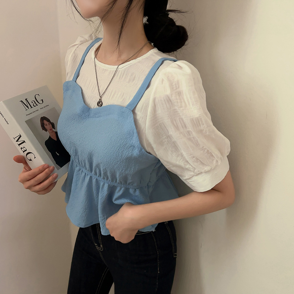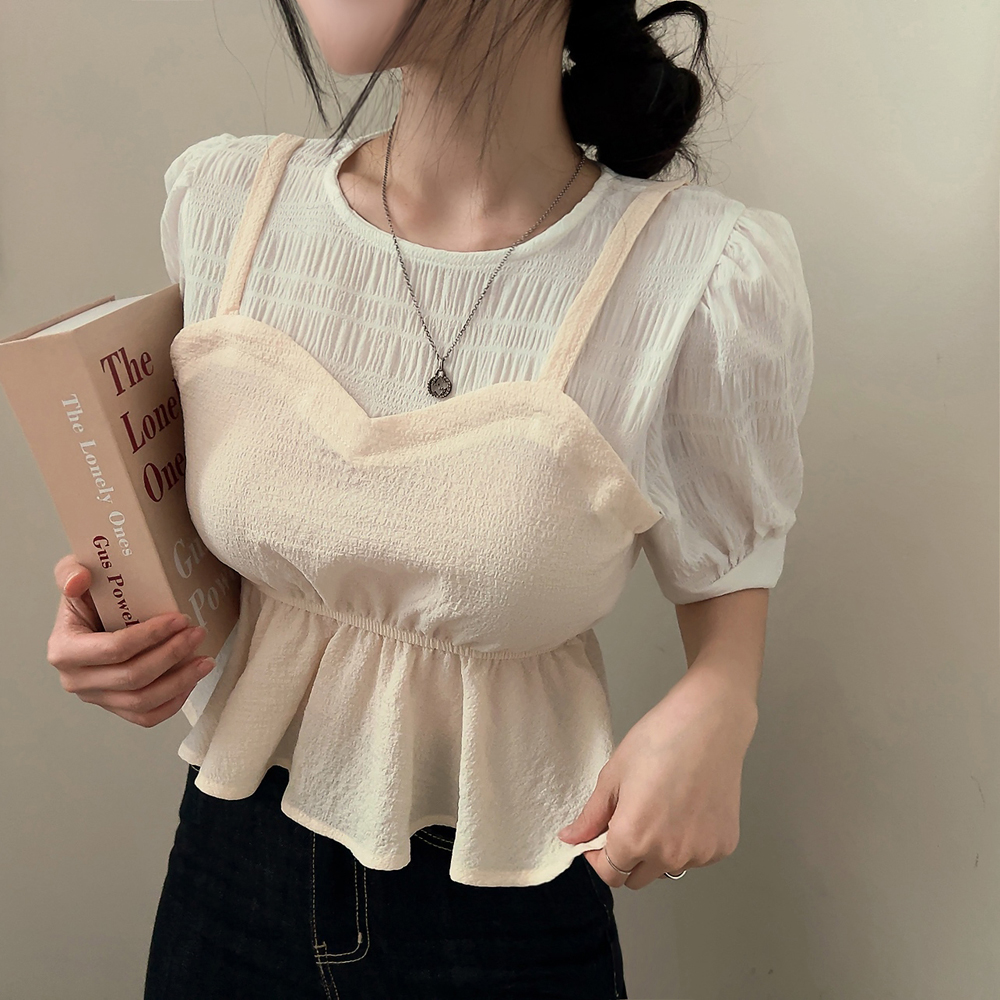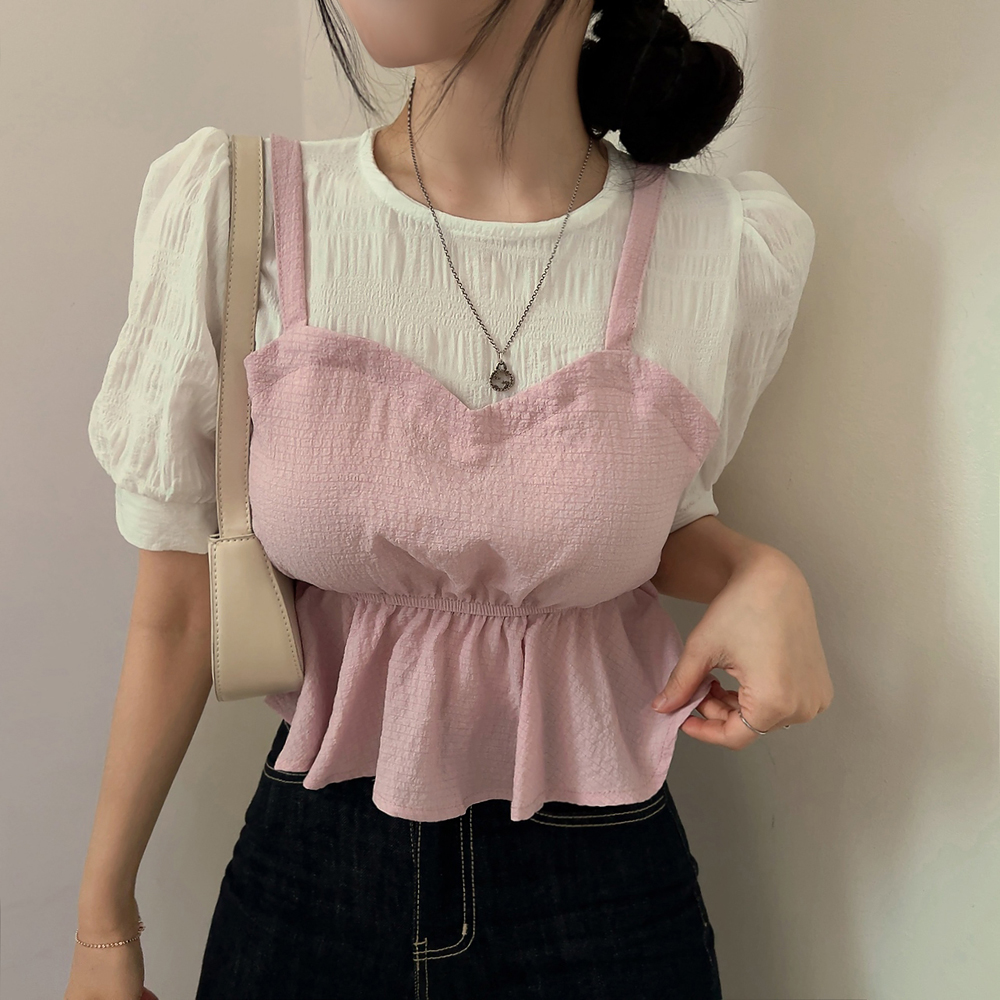 ビスチェシャーリングパフ半袖ブラウス
