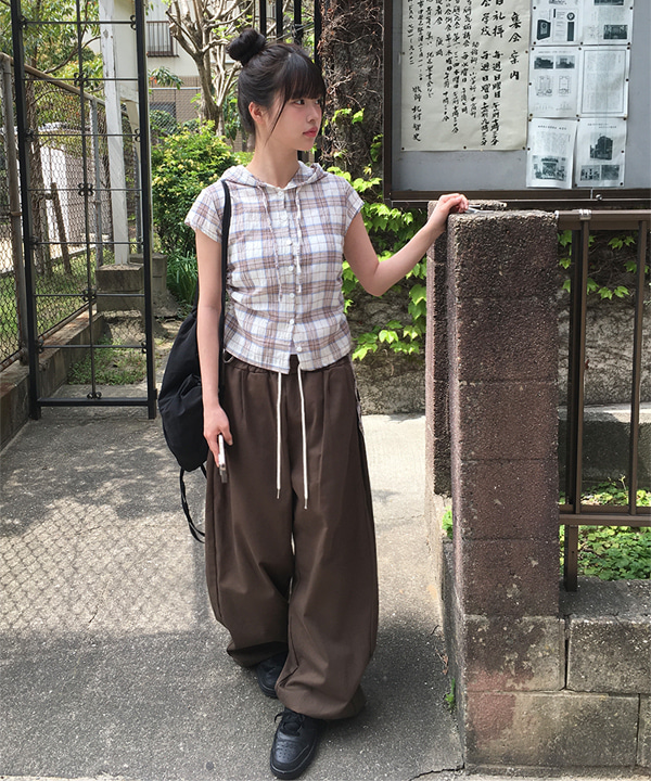 [フィット調節] バックポケット裾ボタンウエストゴムワイドパンツ (5color)