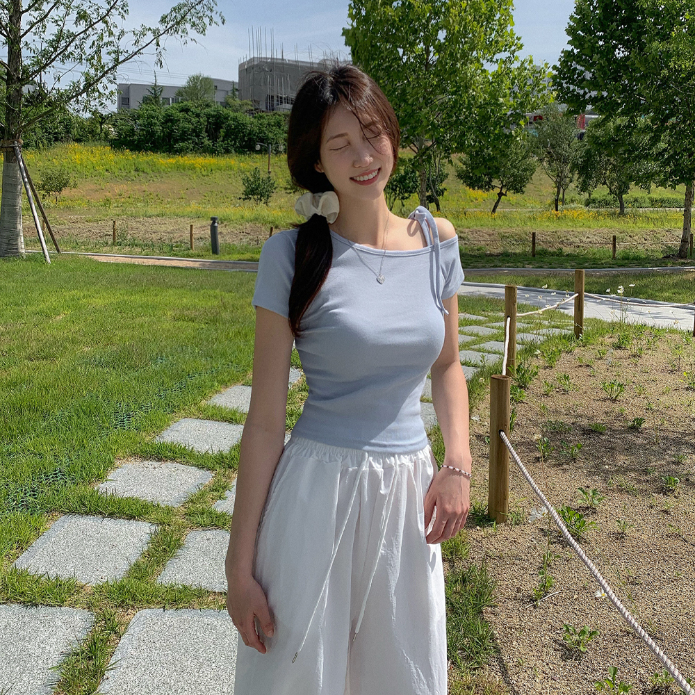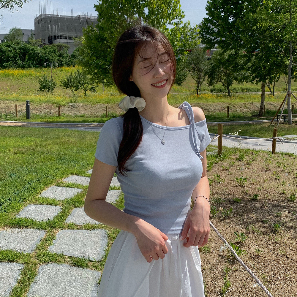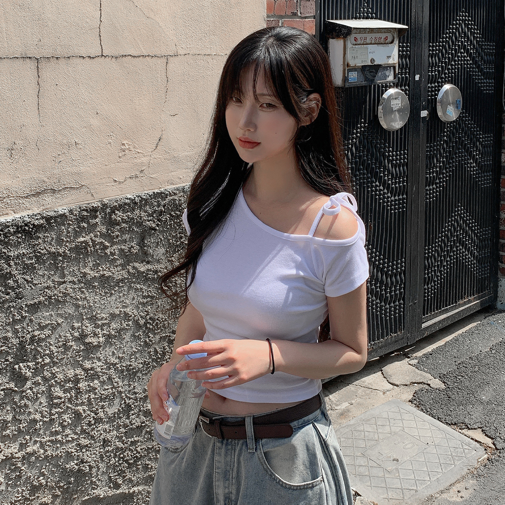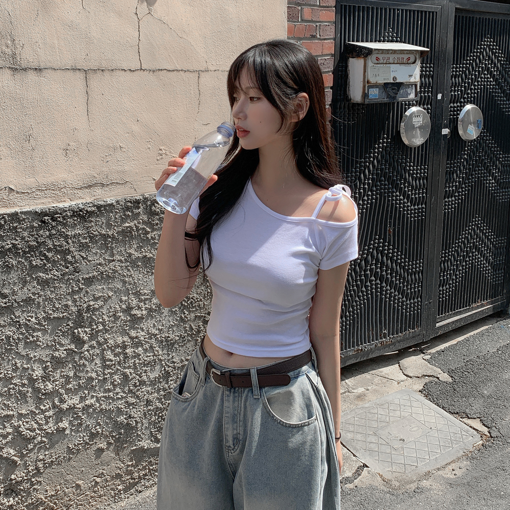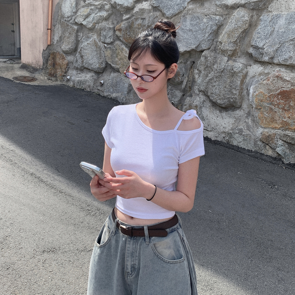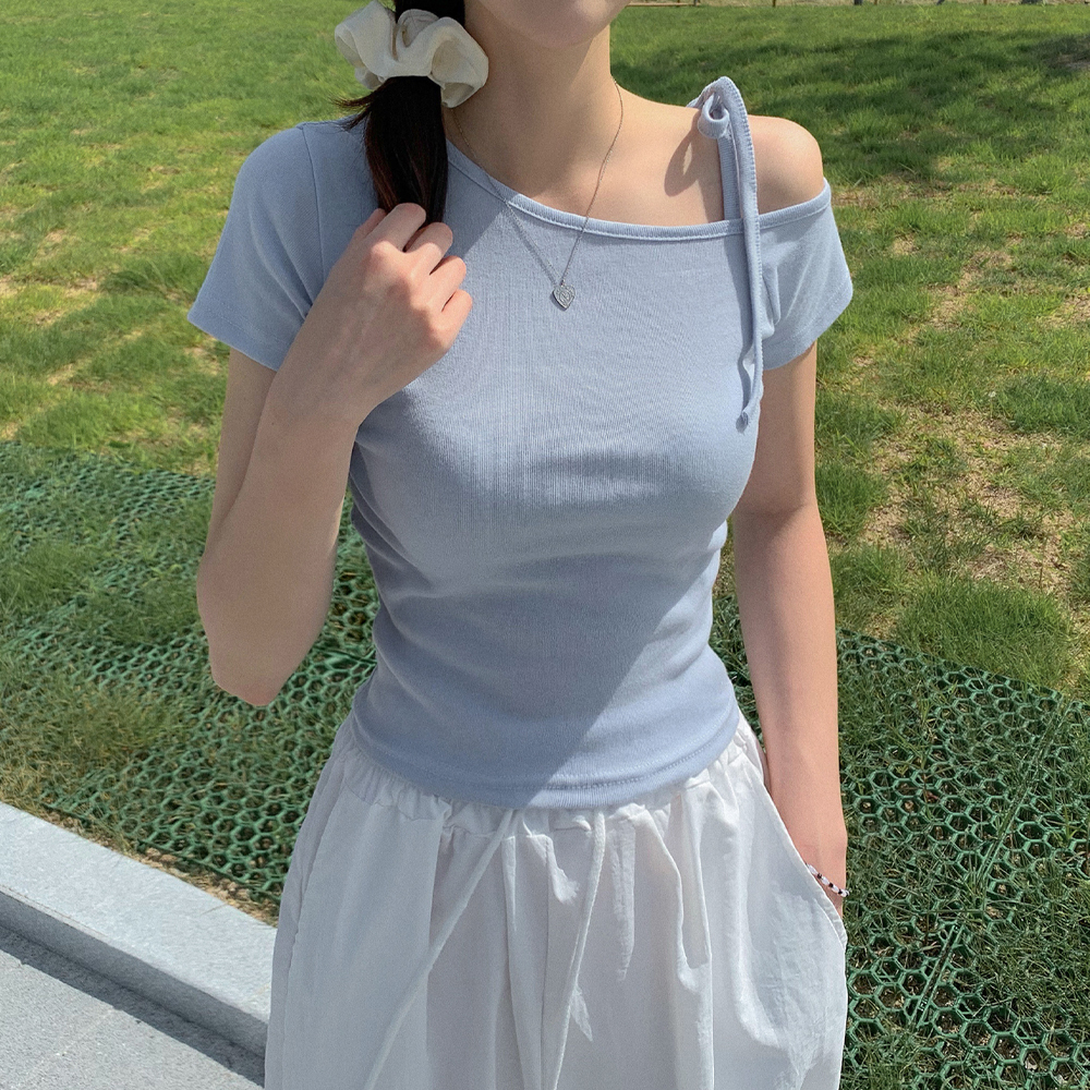 ワンショルダーリボン半袖Tシャツ