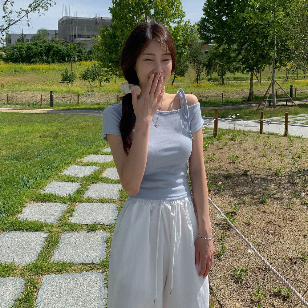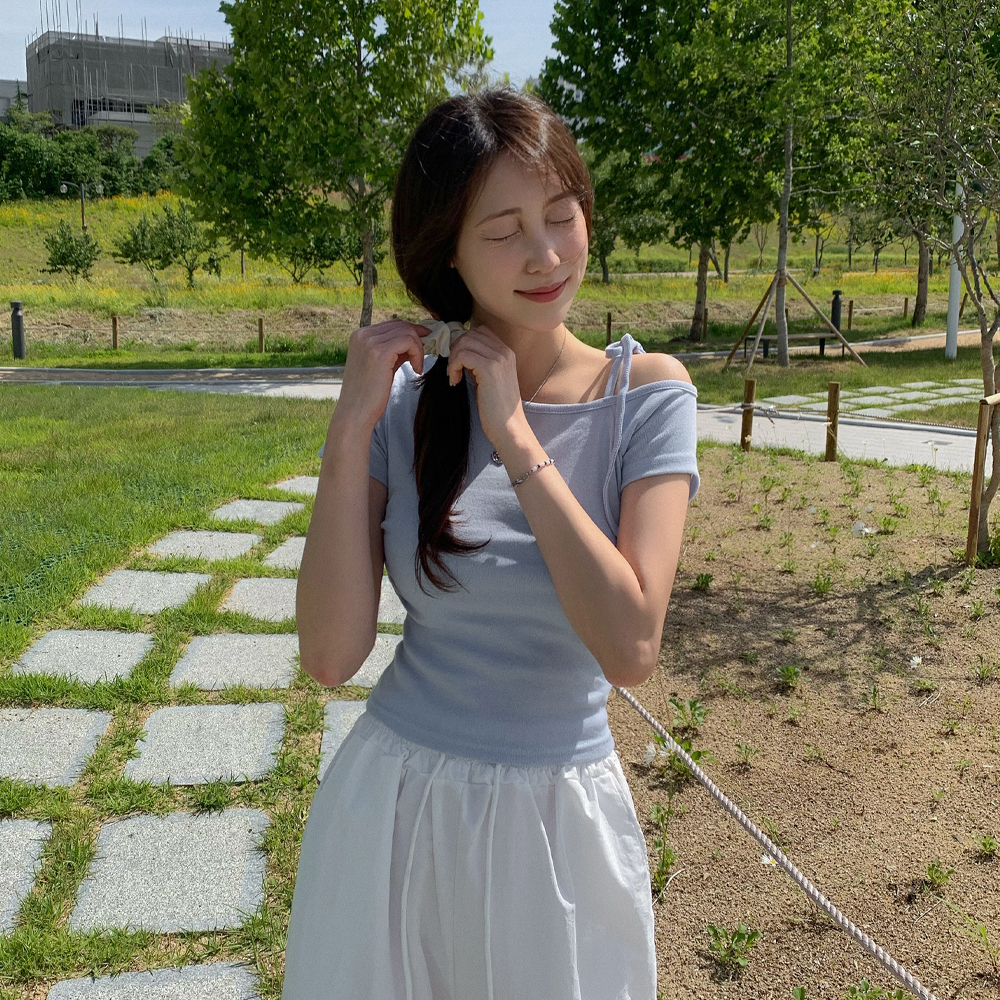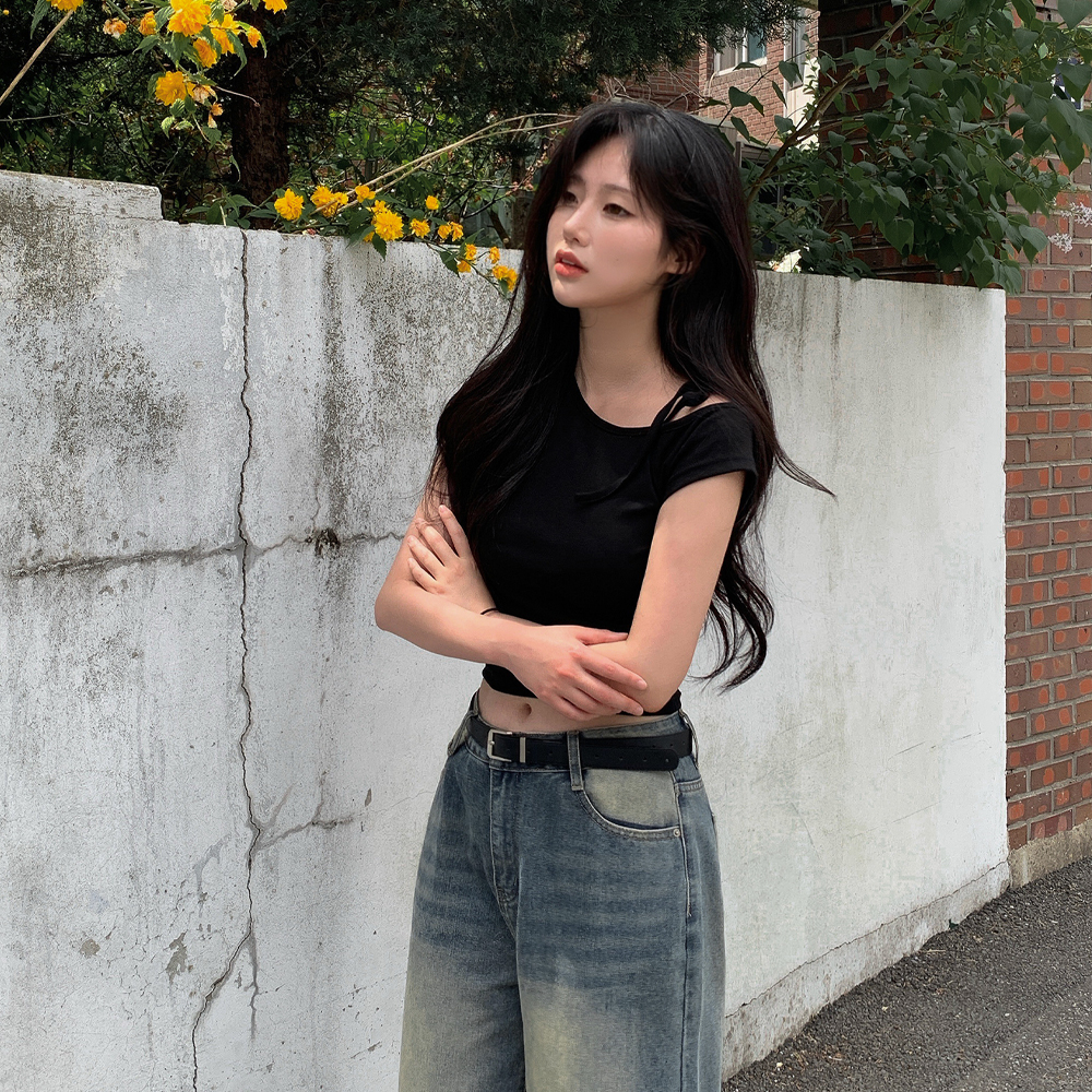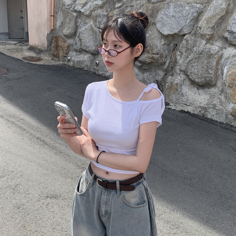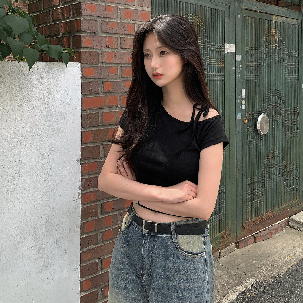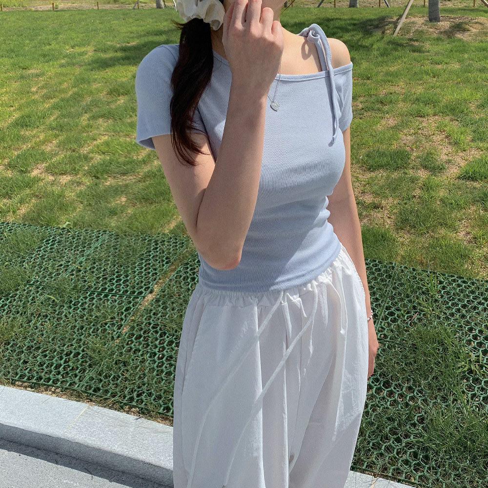 ワンショルダーリボン半袖Tシャツ