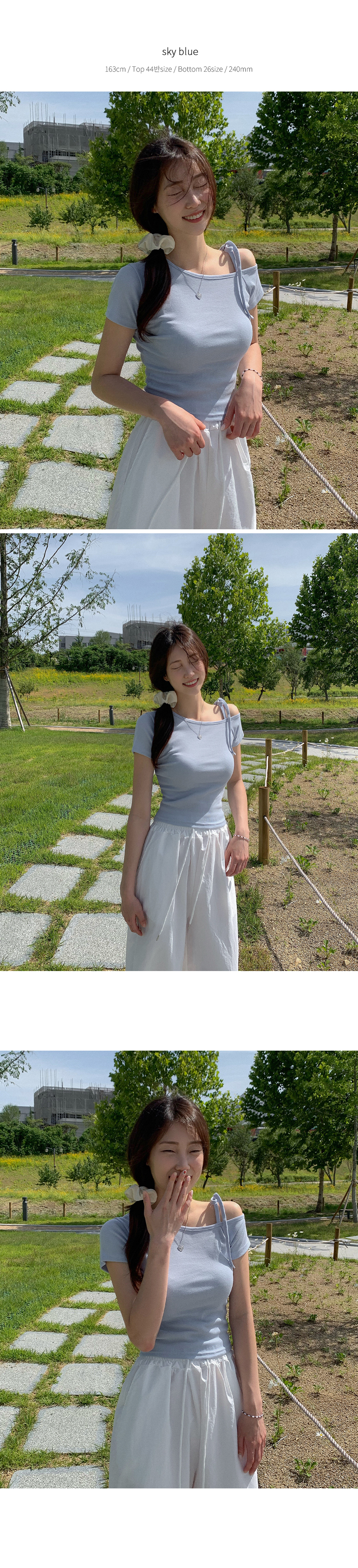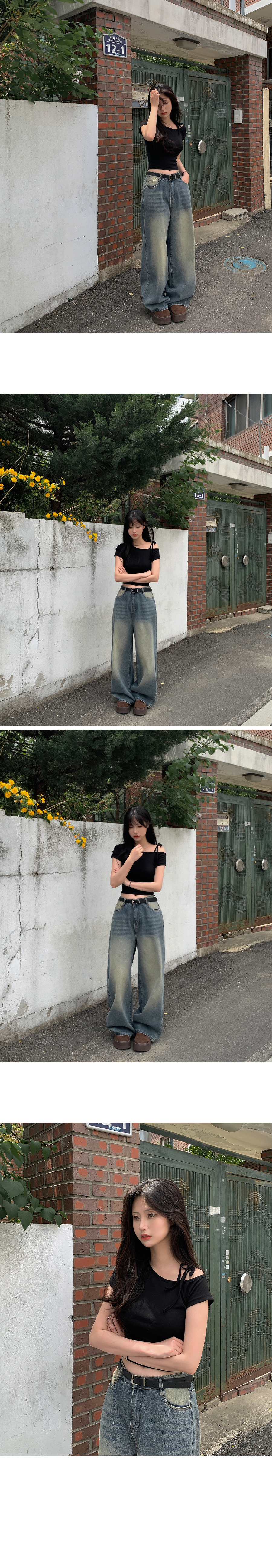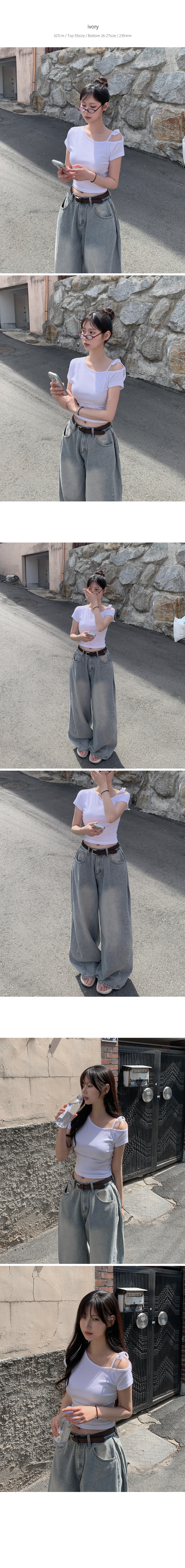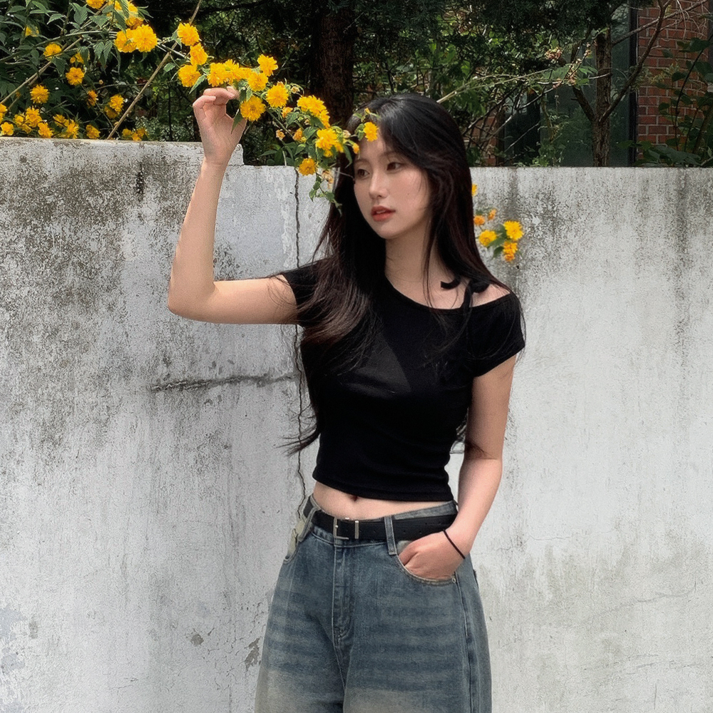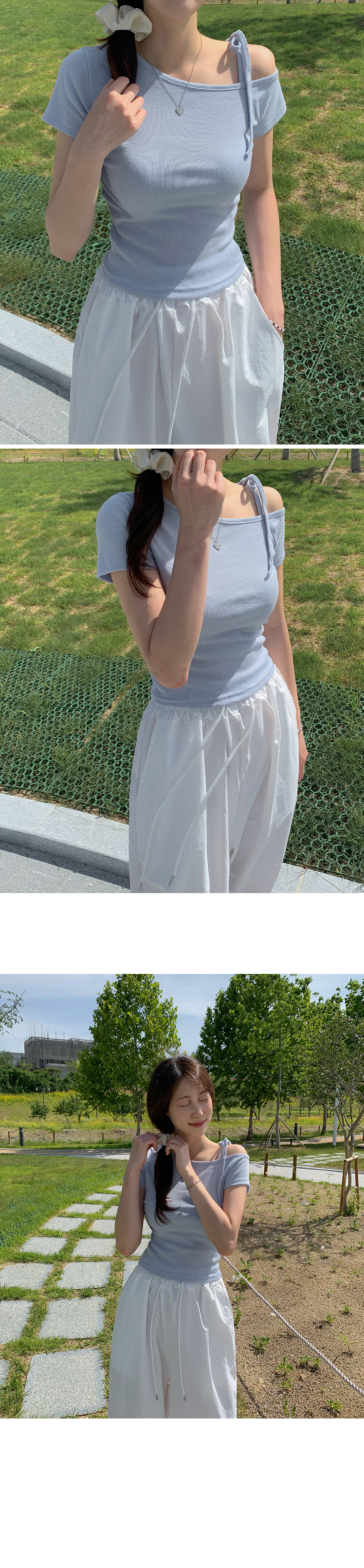ワンショルダーリボン半袖Tシャツ