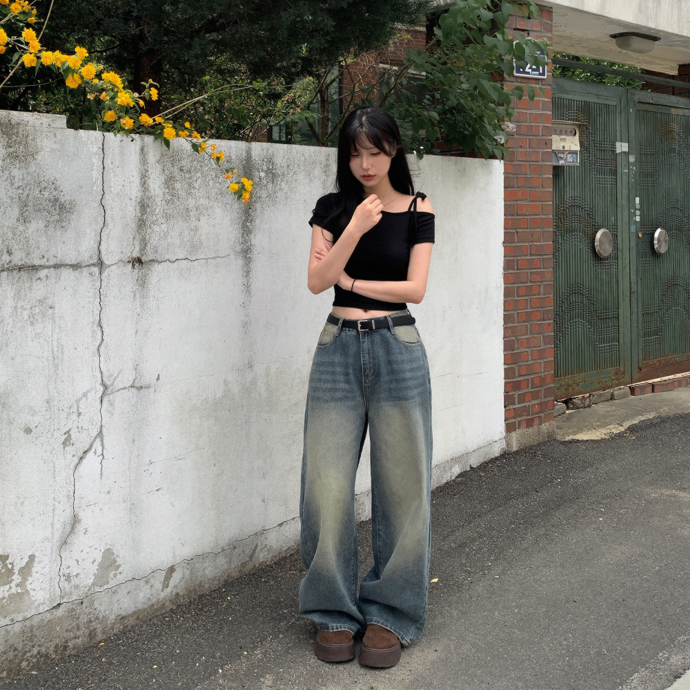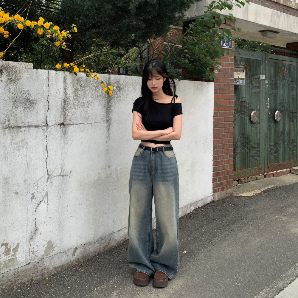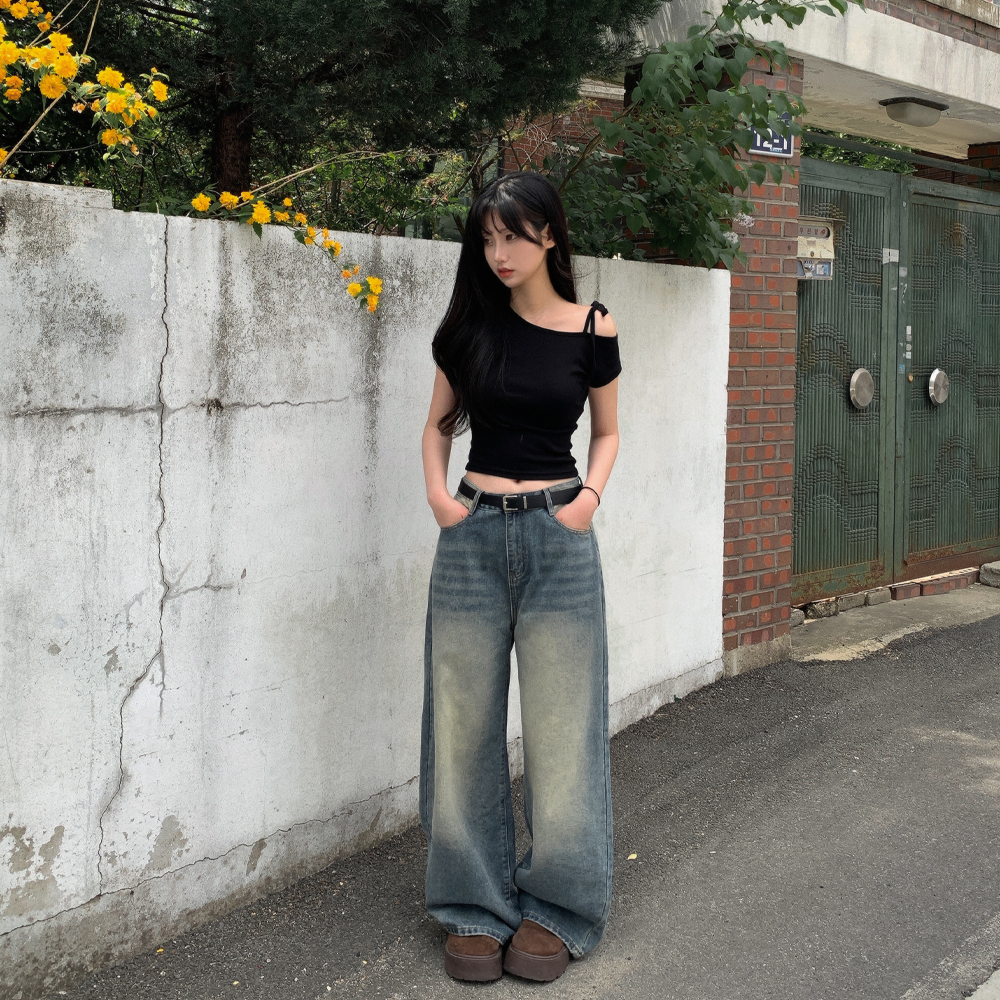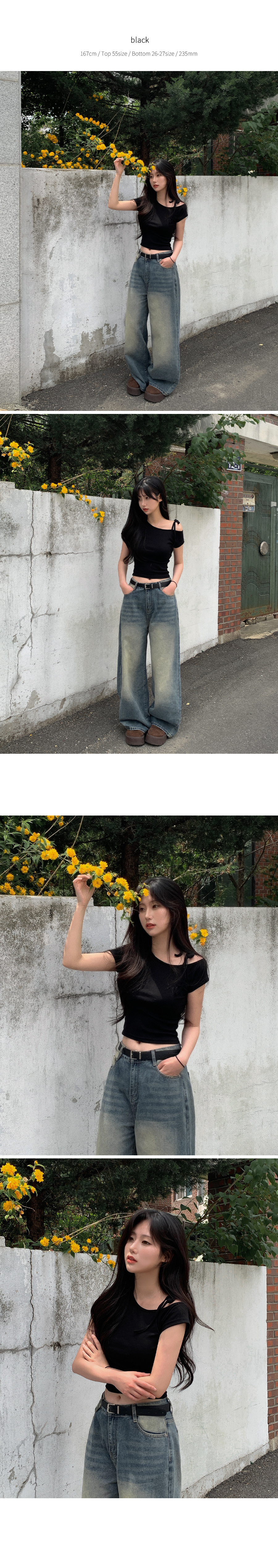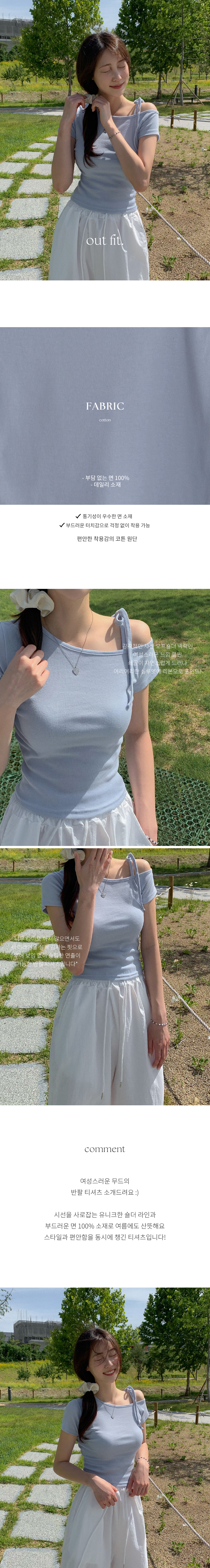 ワンショルダーリボン半袖Tシャツ