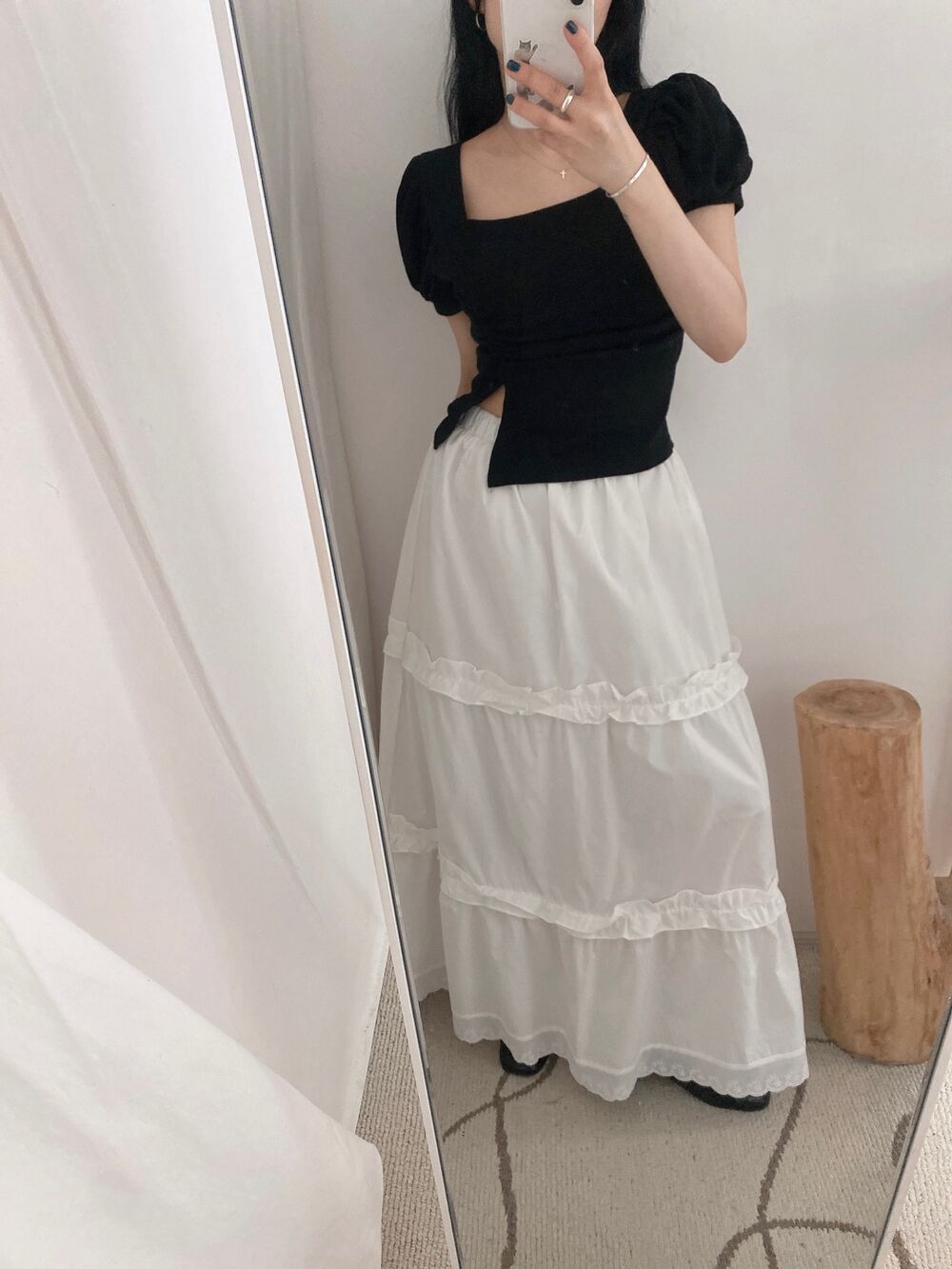 裏地付きなのでホワイトワンピースも透ける心配はありません。