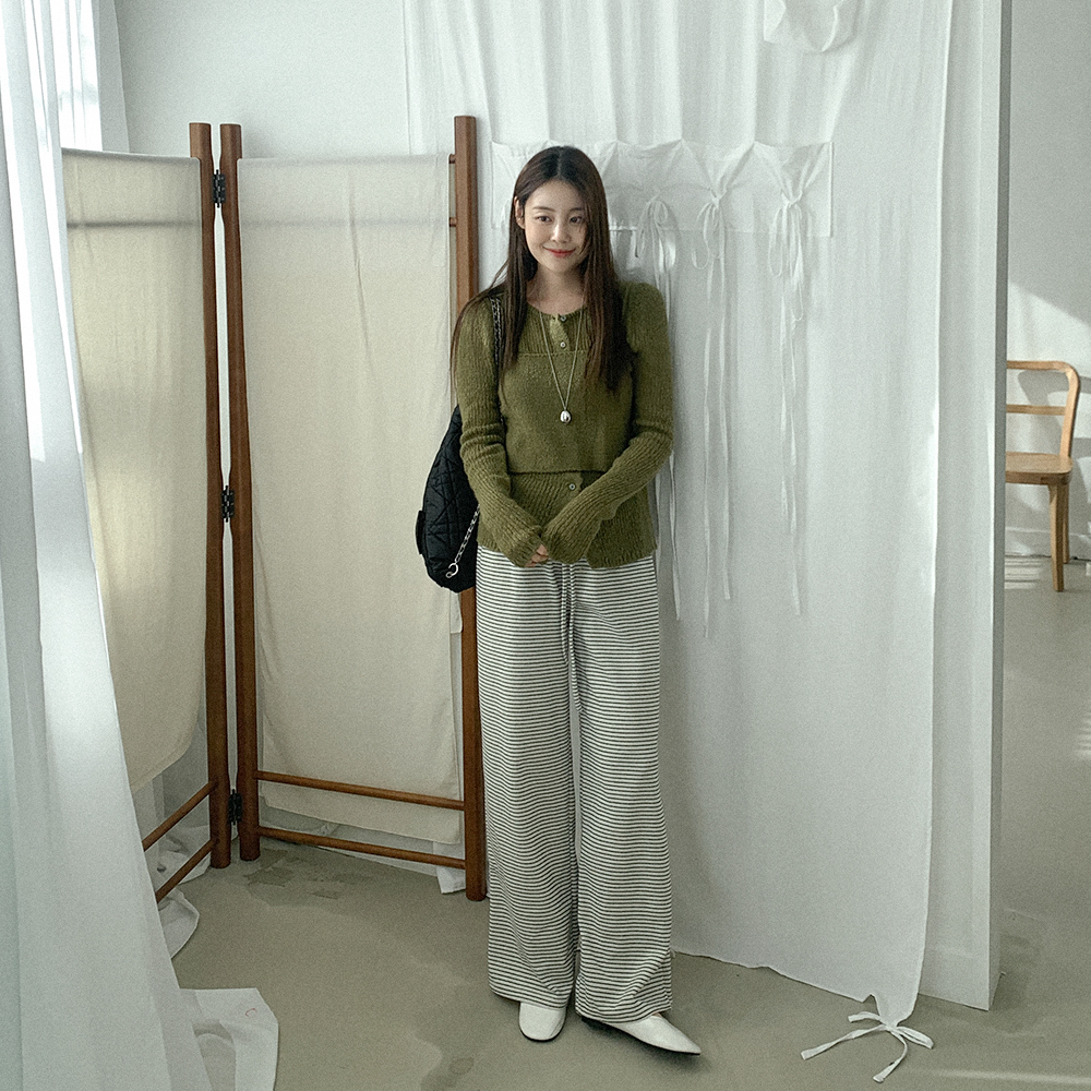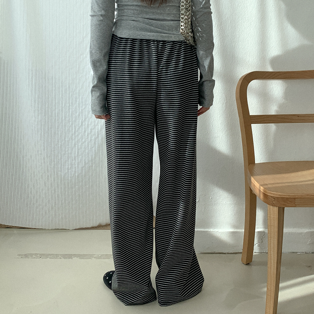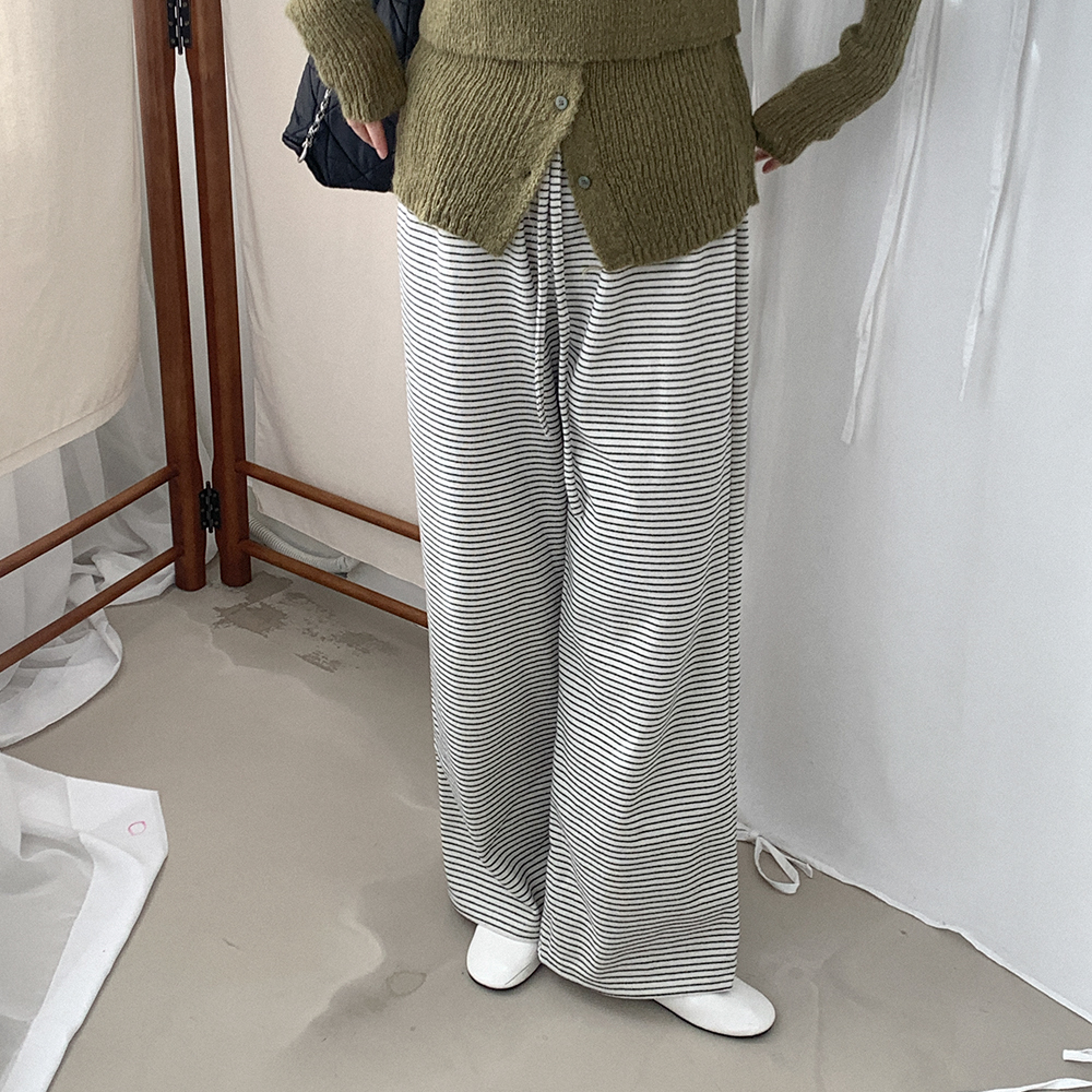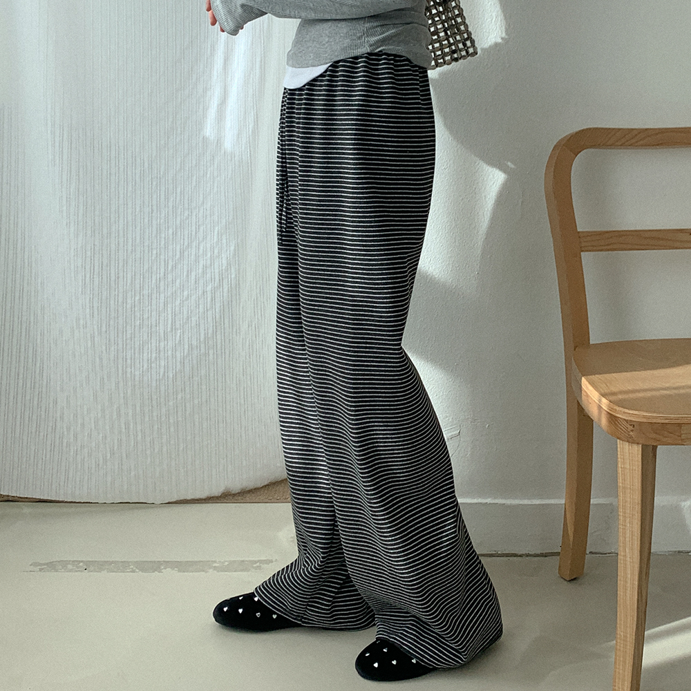 ボーダー柄ワイドウエストゴムパンツ