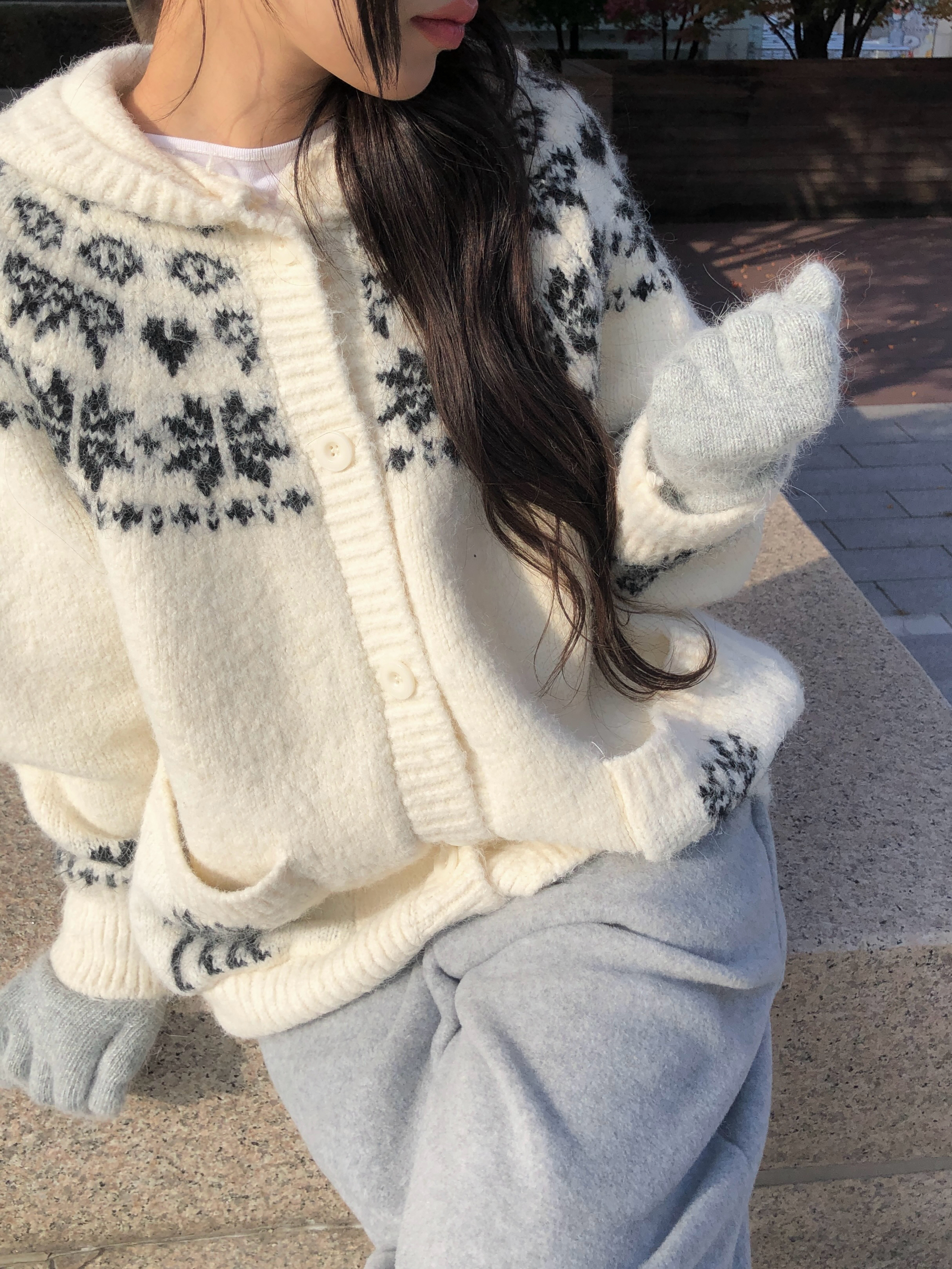 ノルディックフードニットカーディガンです。:)
