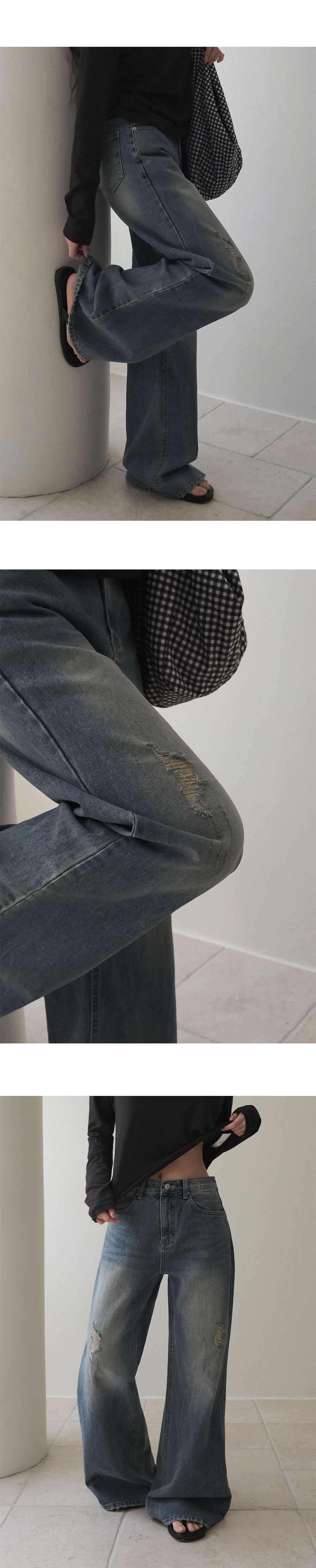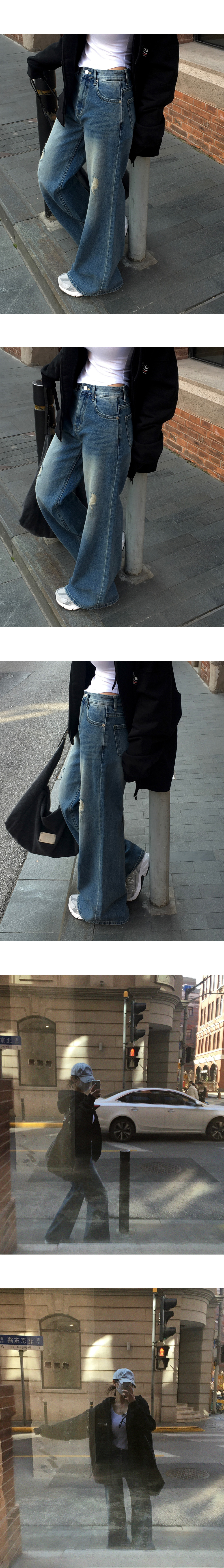 [MADE] ロキシー、ダメージセミフレアデニムパンツ