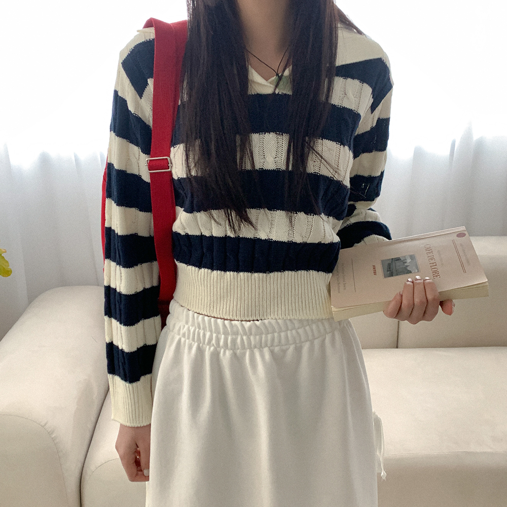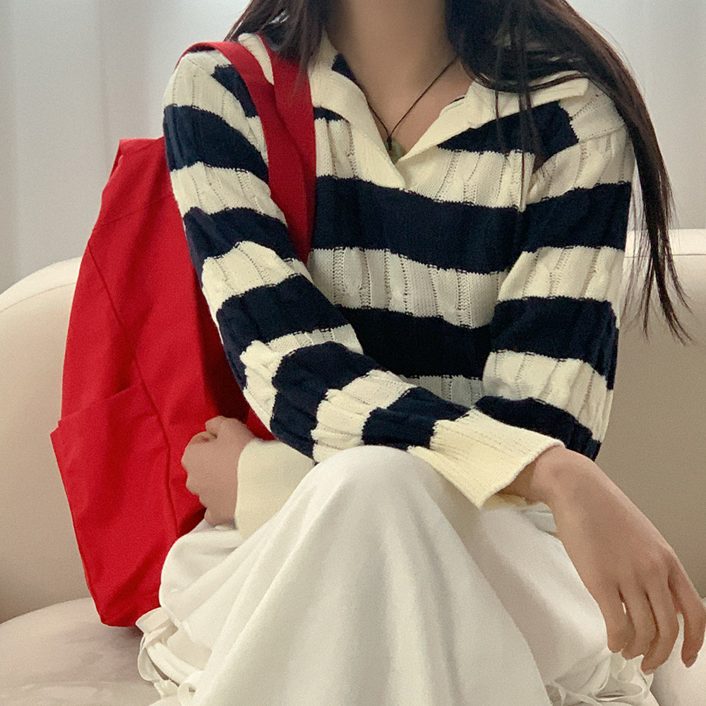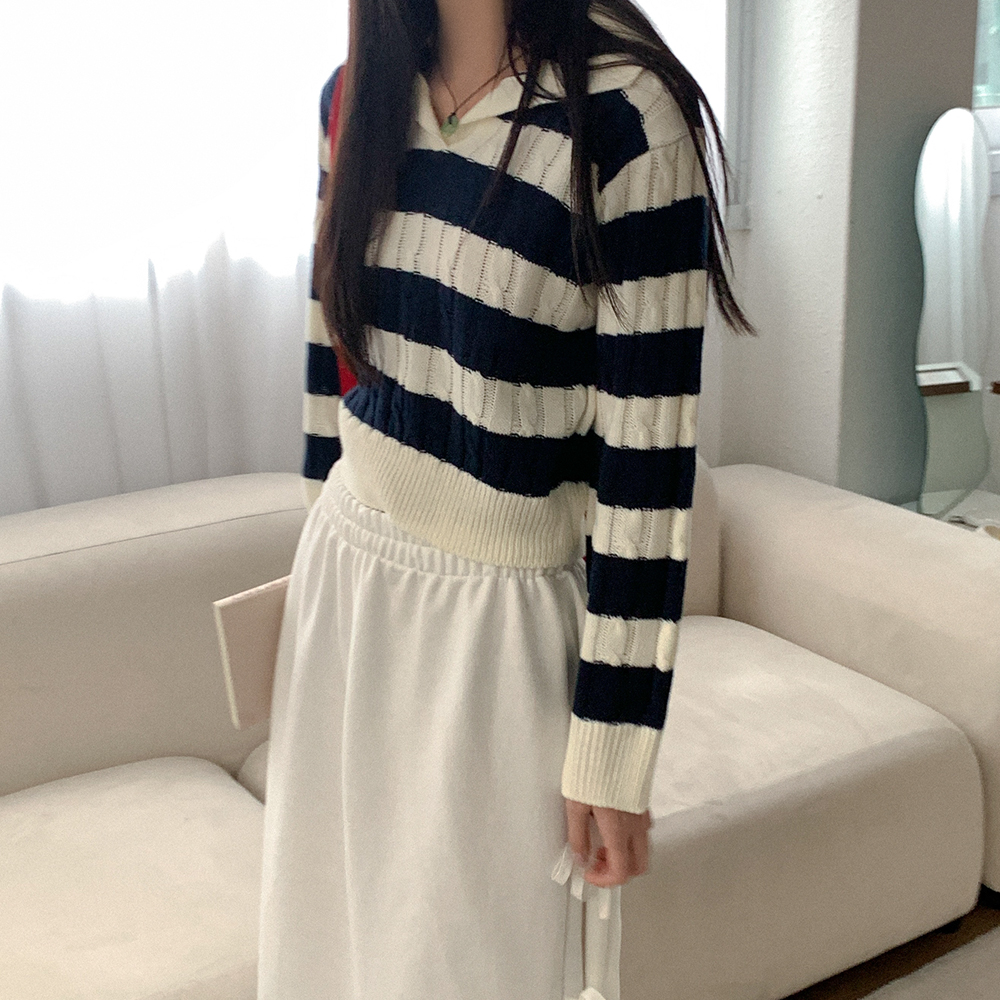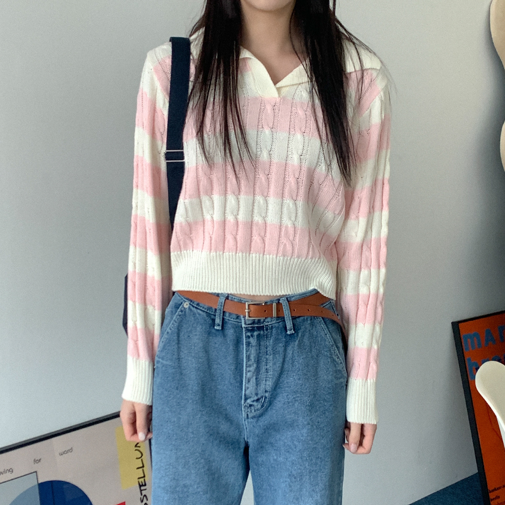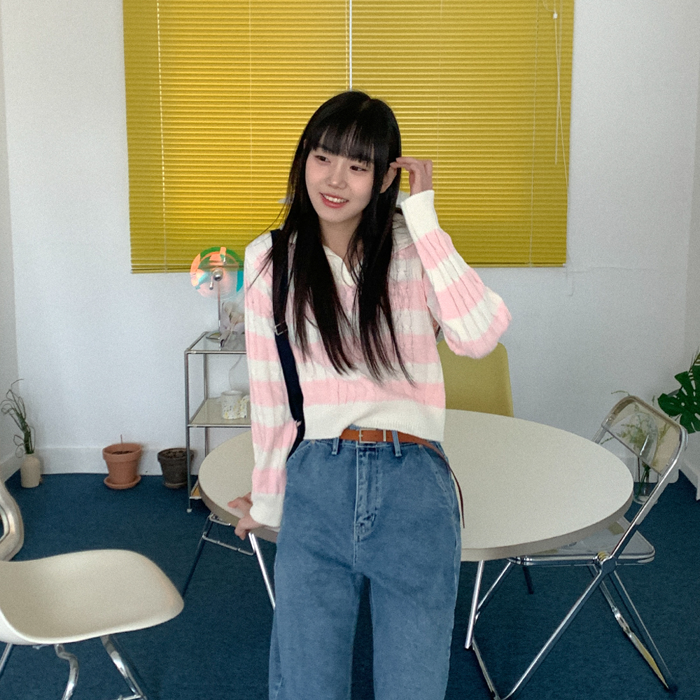 ツイストボーダーカラーニット