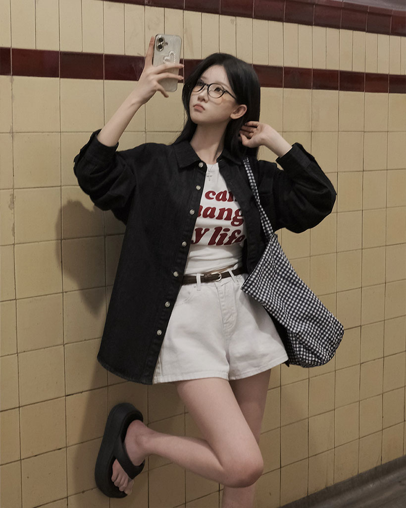 (ORIGINAL) デイズ、ルーズフィットピンタックデニムシャツ