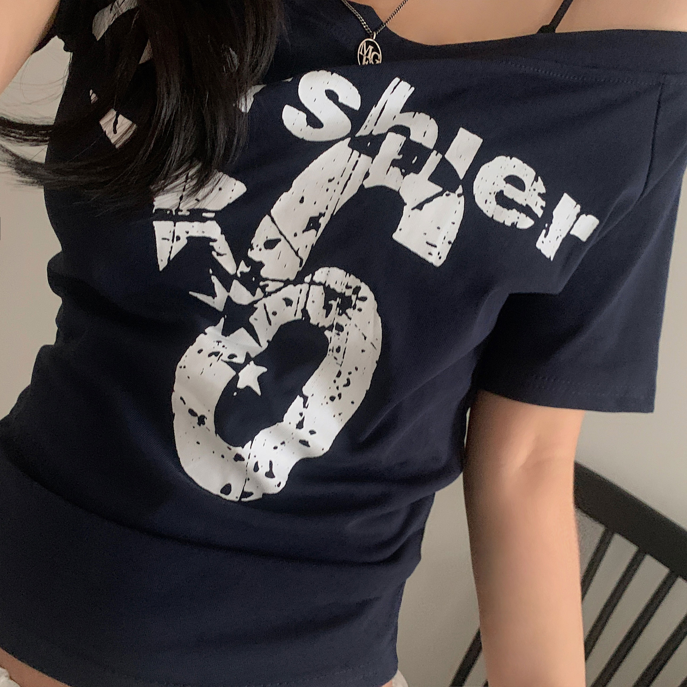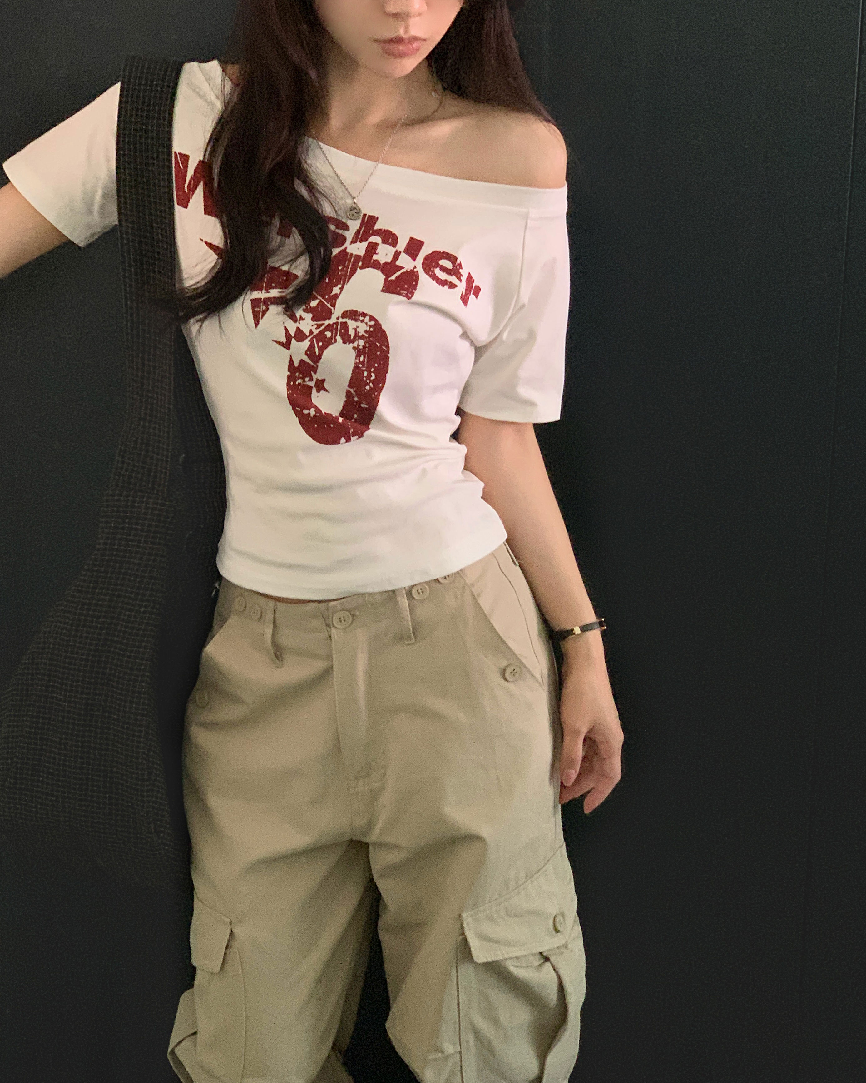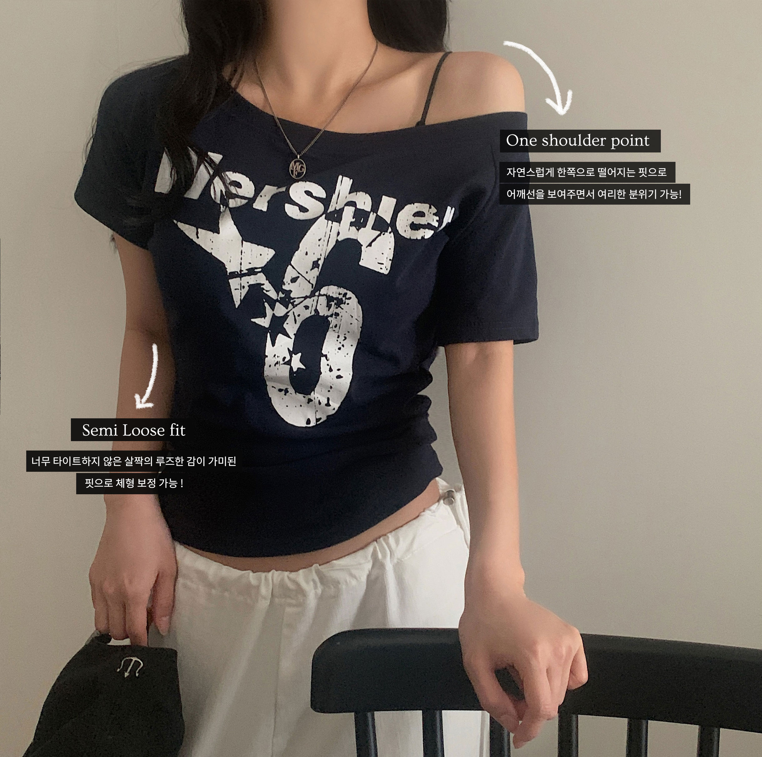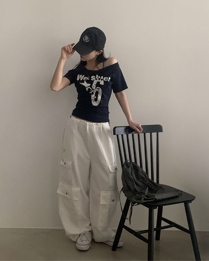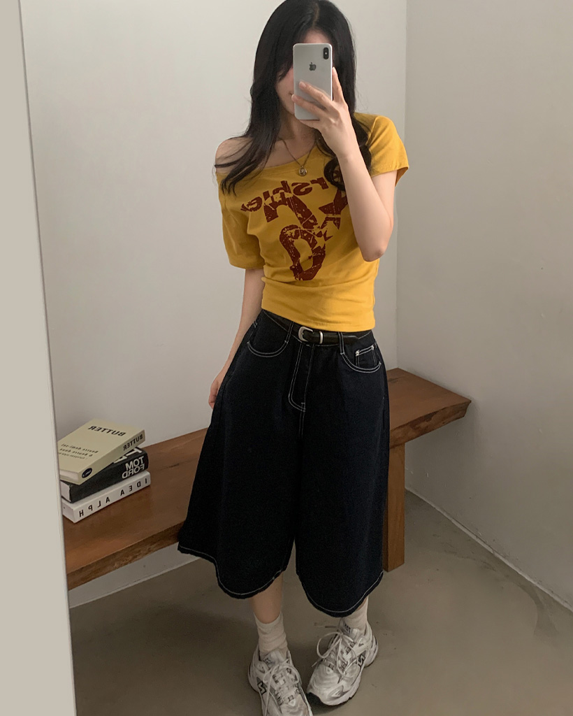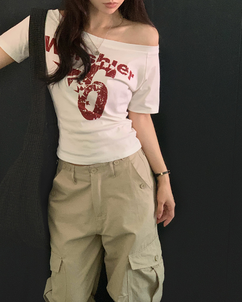 ワンショルダー半袖Tシャツ-4color