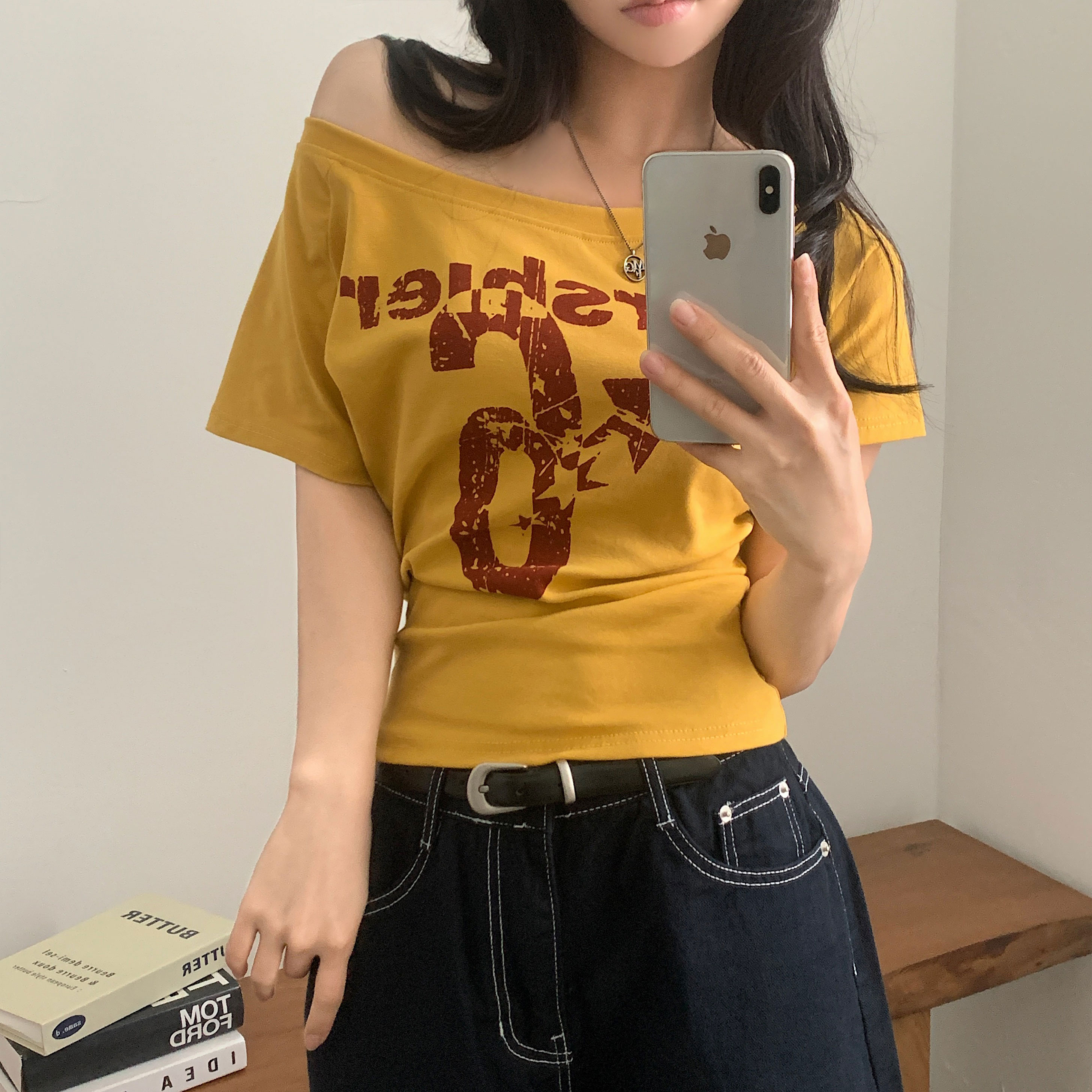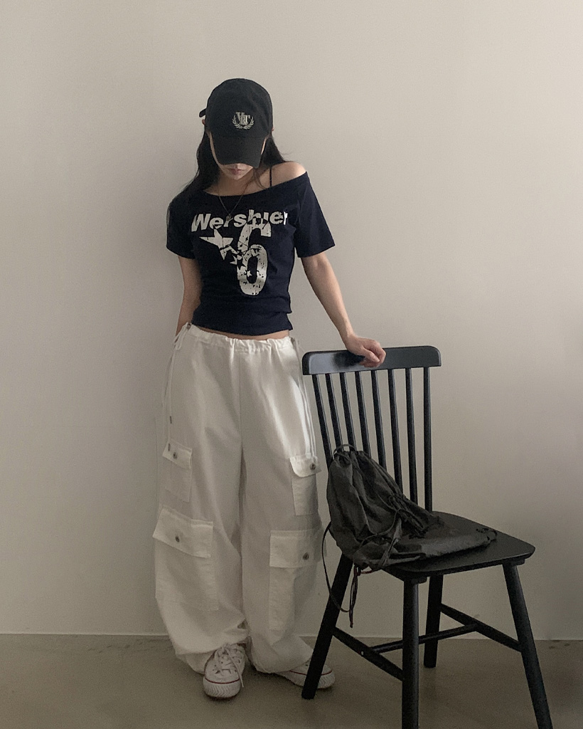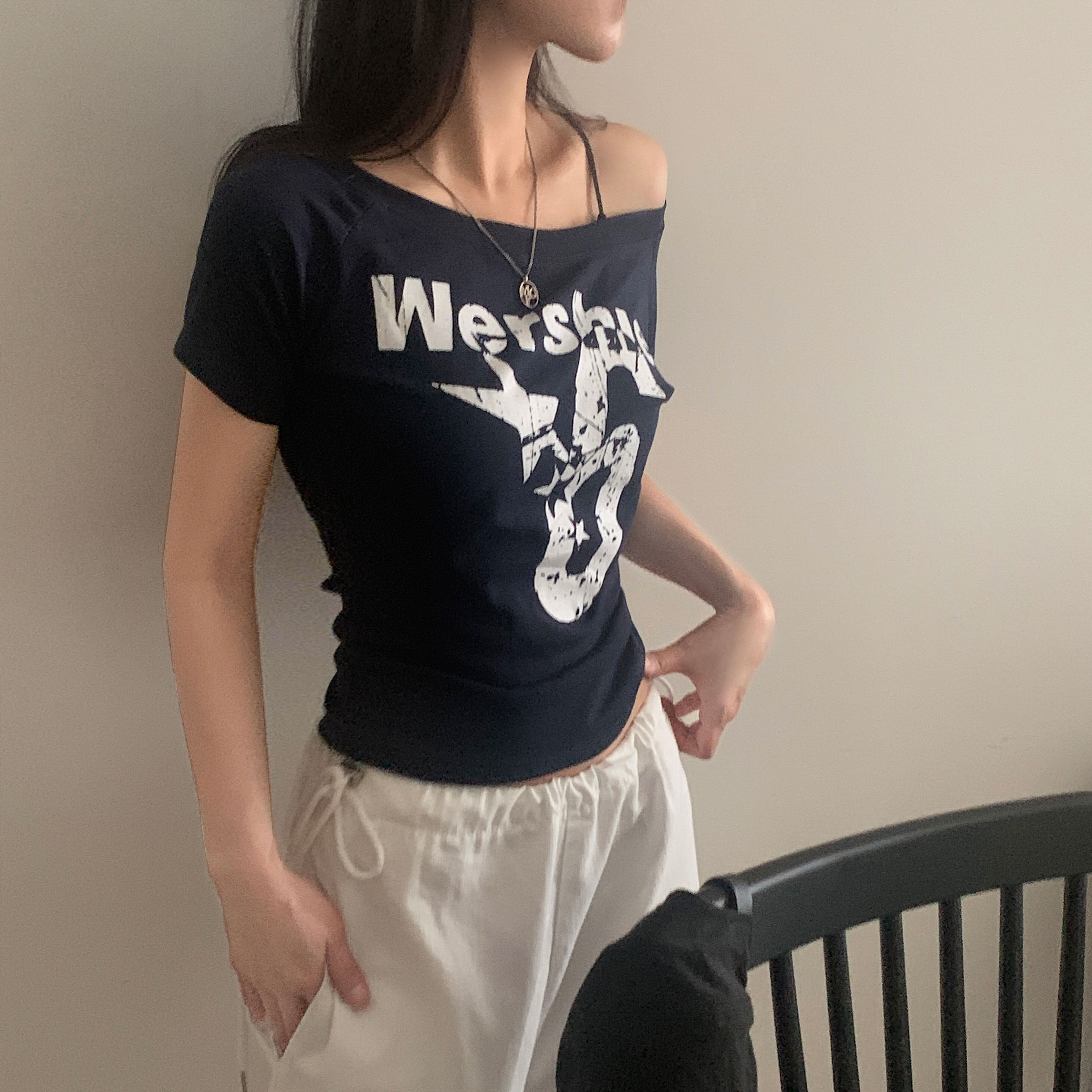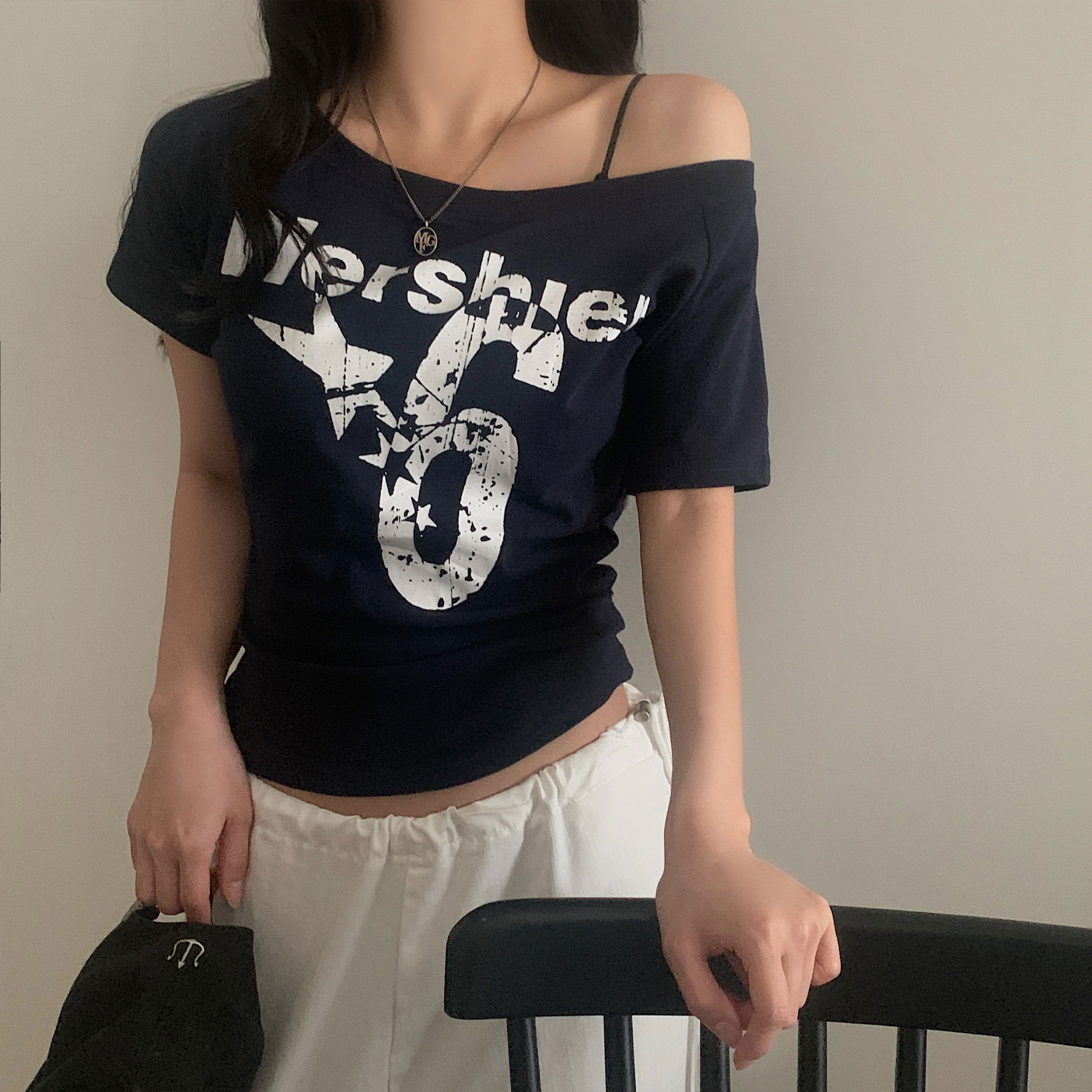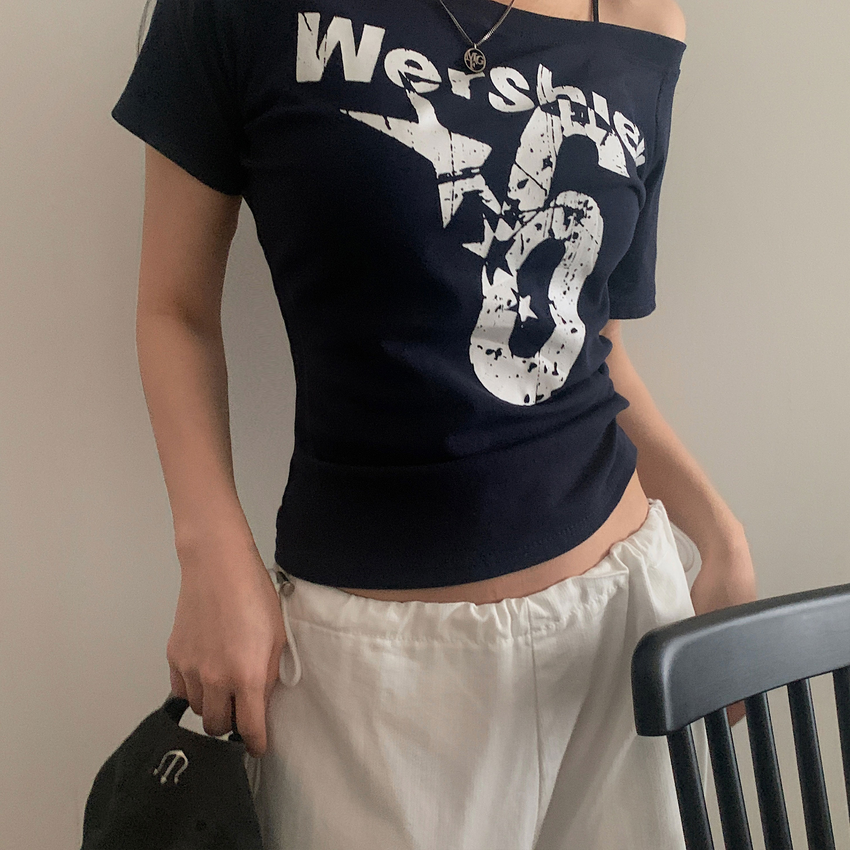 ワンショルダー半袖Tシャツ-4color